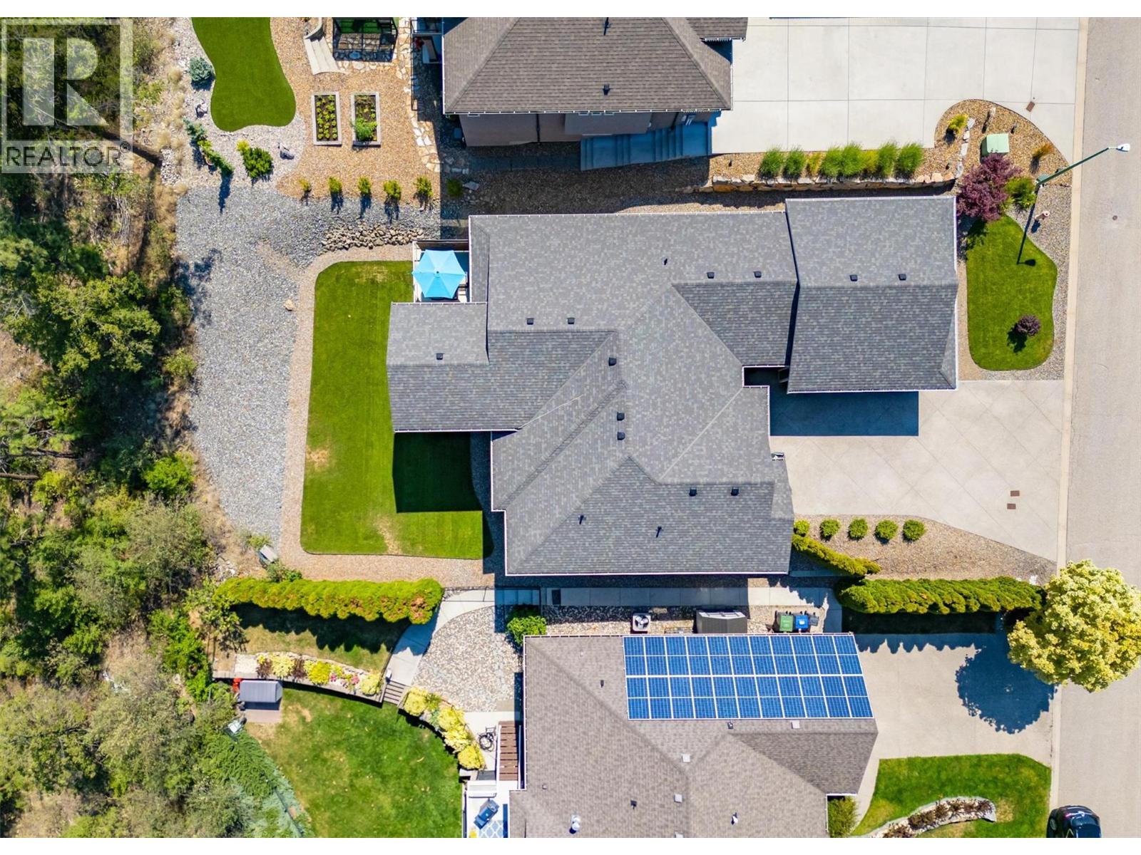 Welcome to The Ridge at Quail, one of Kelowna’s most sought-after golf course communities. This contemporary walkout rancher is perched above the 12th fairway and offers privacy, luxury and fabulous views. Expansive windows and double sliding doors allow a seamless connection to the outdoors. The half covered, half open upper deck, features Bose outdoor speakers, a tv and a gas hookup making it perfect for effortless entertaining. The main level boasts high ceilings, engineered hickory hardwood floors and thoughtful lighting throughout, with in-ceiling speakers in the living room, primary bdrm, ensuite, and lower-level bonus room. The kitchen is equipped with a gas/electric combo range. All 3 bathrooms have heated, programmable tile floors. The primary ensuite features a beautiful tile and glass walk-in shower. The lower-level walkout has abundant natural light, highlighted by picture windows and a sliding patio door that opens onto a covered deck. The lower level is ideal as a private retreat for guests with 2 additional bdrms, a full bathroom and a spacious bonus/family room. The oversized double garage accommodates 4 vehicles with room for up to 6 cars on the aggregate driveway. A full irrigation system and remote HVAC control round out the smart, efficient features of this home. Only minutes from the Kelowna Int'l Airport, UBCO and easy access to Lake Country or downtown! This is an ideal retreat for those seeking luxury living with a low-maintenance lifestyle! (id:62999)
