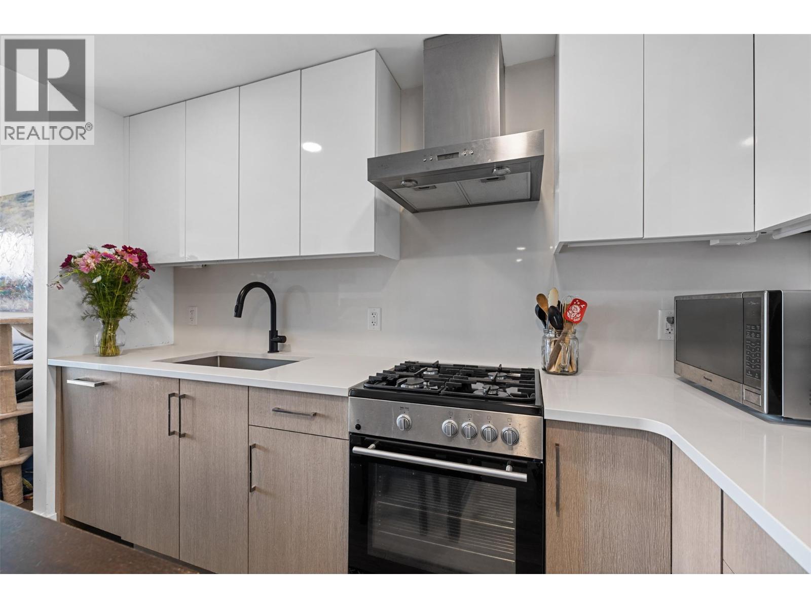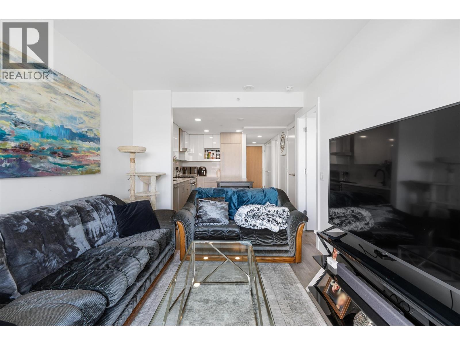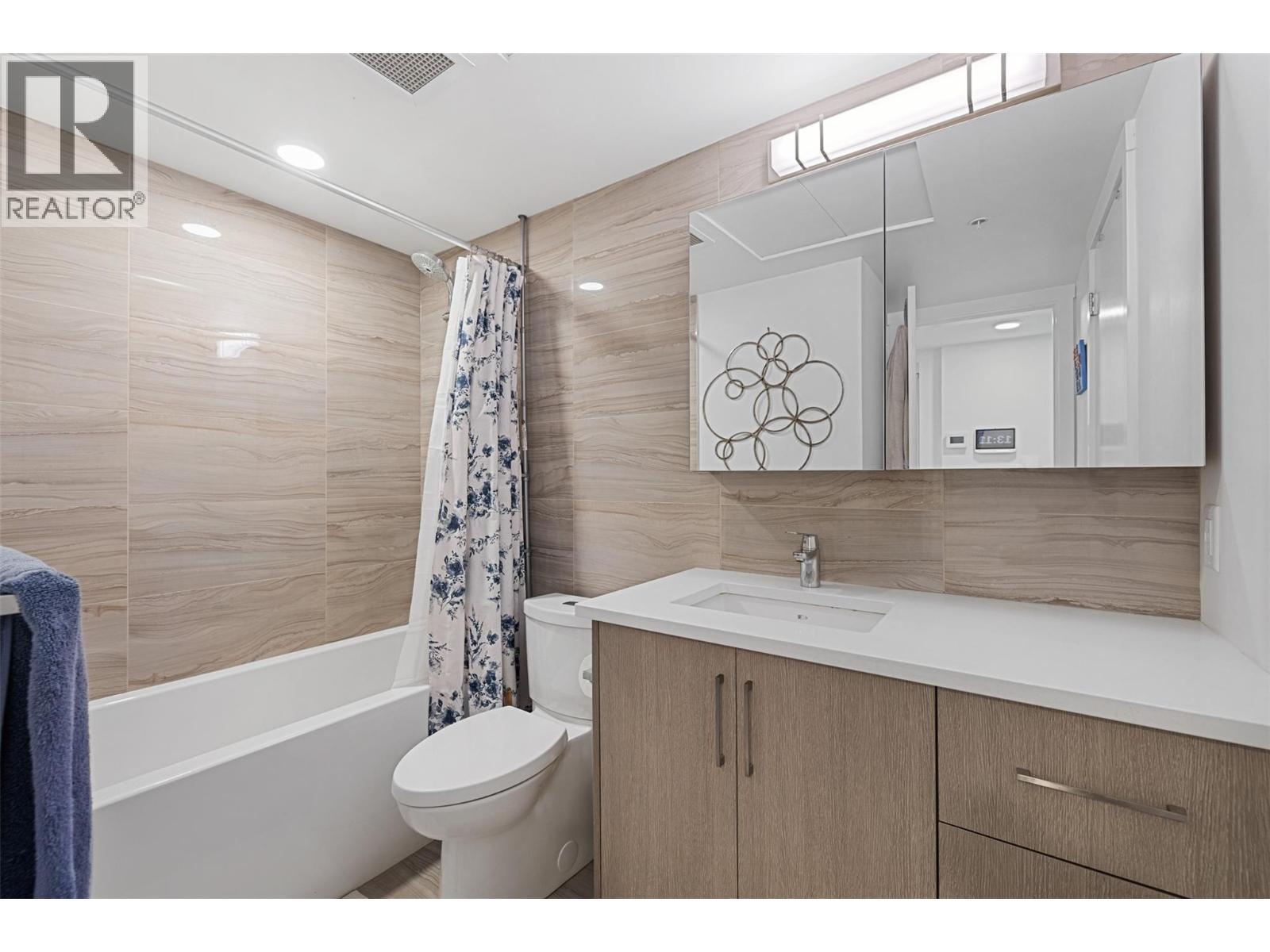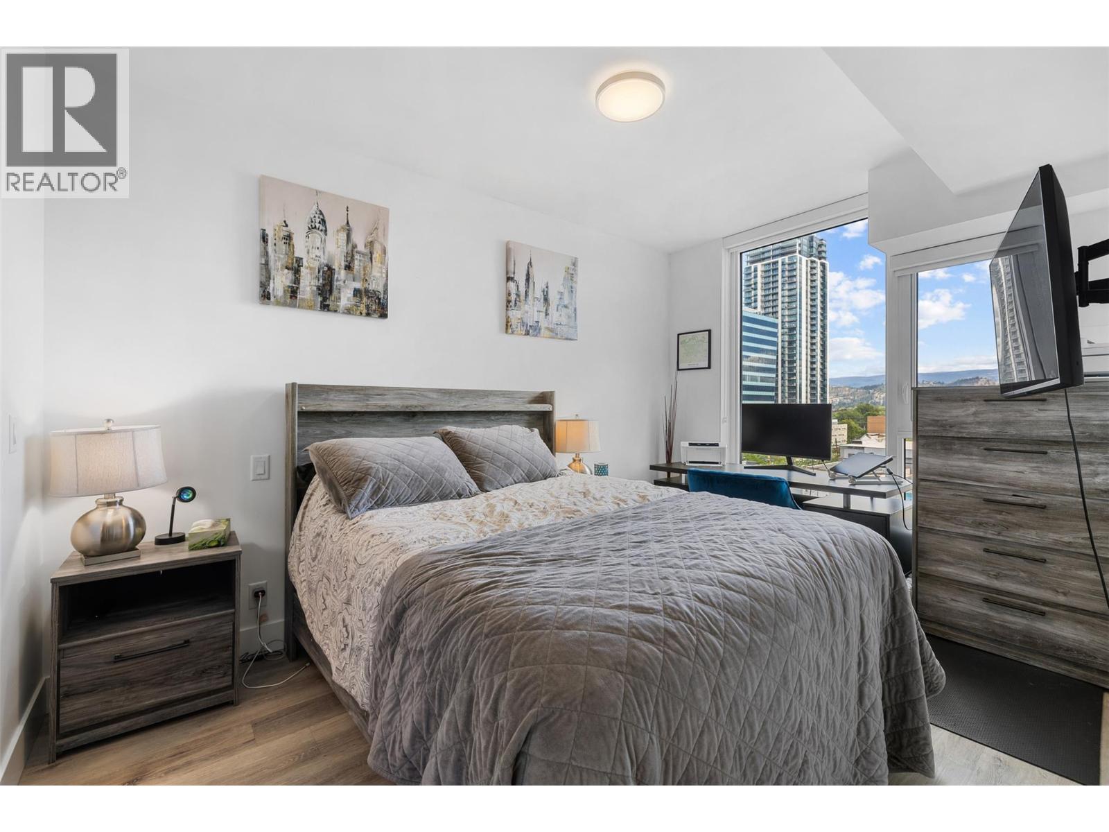 Extraordinary value at ELLA, Kelowna’s most central downtown luxury condo building. This bright East facing one bedroom and den home offers lovely city and mountain views from the 7th floor. Finishings by Award-winning interior design i3 Design Group include quartz countertops throughout the home, soft vinyl plank flooring, surround ceramic tile in the bathroom and under cabinet lighting in the kitchen. Cook gourmet meals on your gas range with quartz backsplash and enjoy the sleek and designer aesthetic of the integrated paneled refrigerator. Located on the corner of Ellis street & Lawrence Ave, this home comes with 1 parking stall in the secure parkade plus 1 secure storage locker. Electric vehicle charging stations are available for ELLA residents’ exclusive use. The building boasts a bike & pet washing station, resident bike storage & guest suite for resident’s visitors. This home offers an in-suite washer & dryer along with ample storage and closet space to make this a functional and comfortable condo. This is the perfect home for affordable downtown living or the savvy investor looking for great value. (id:62999)