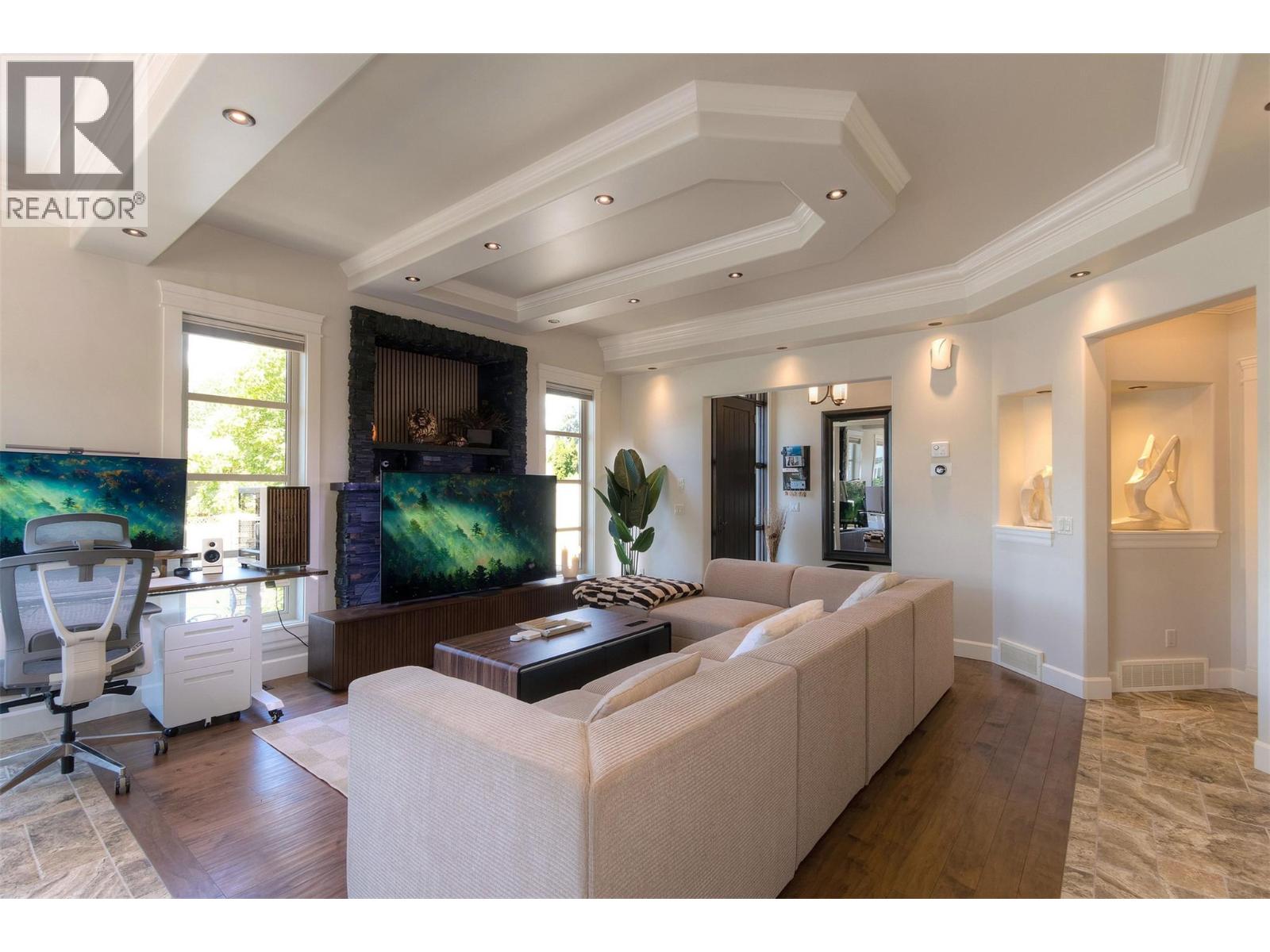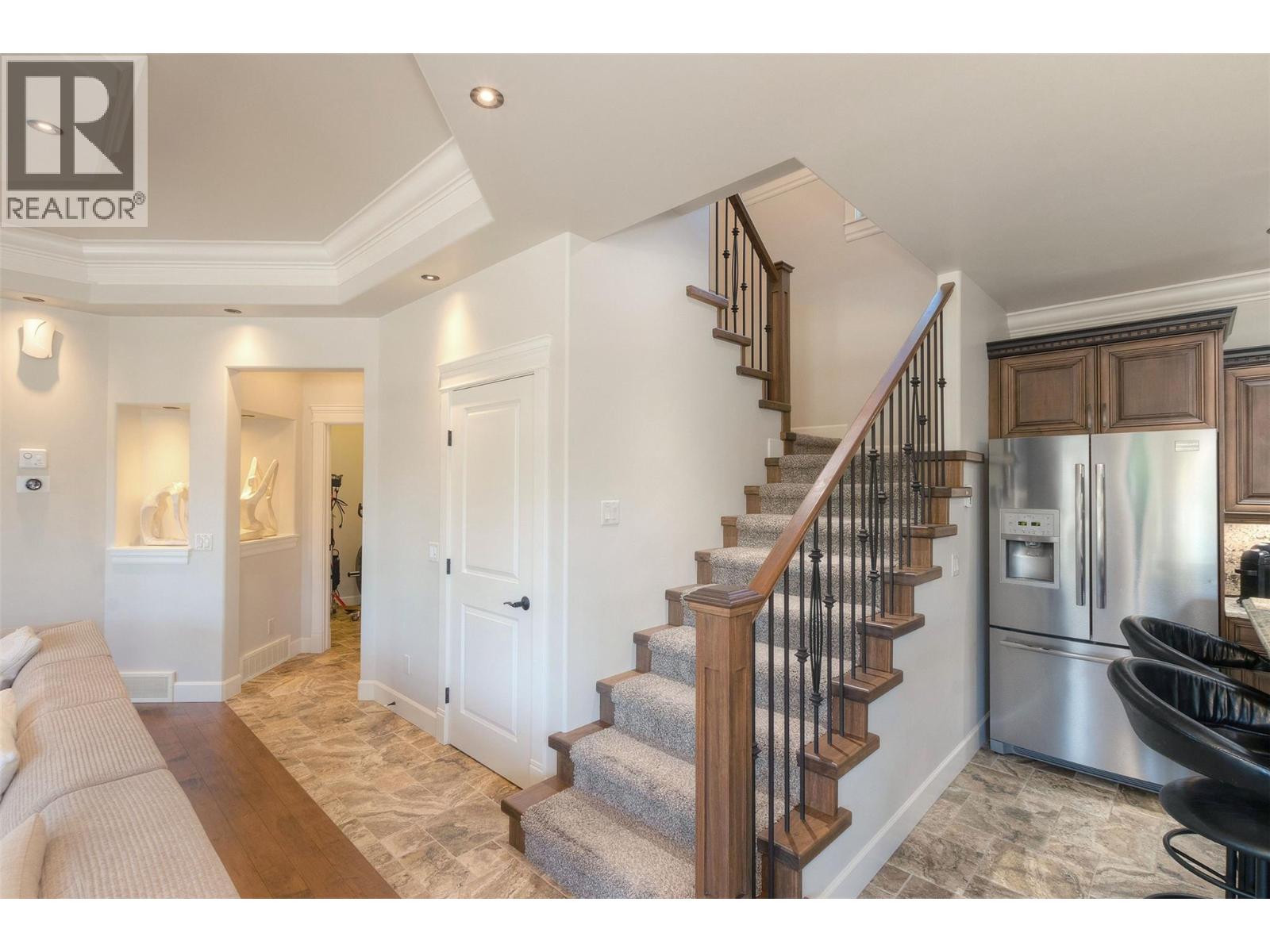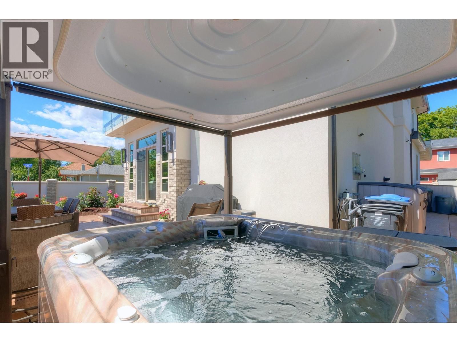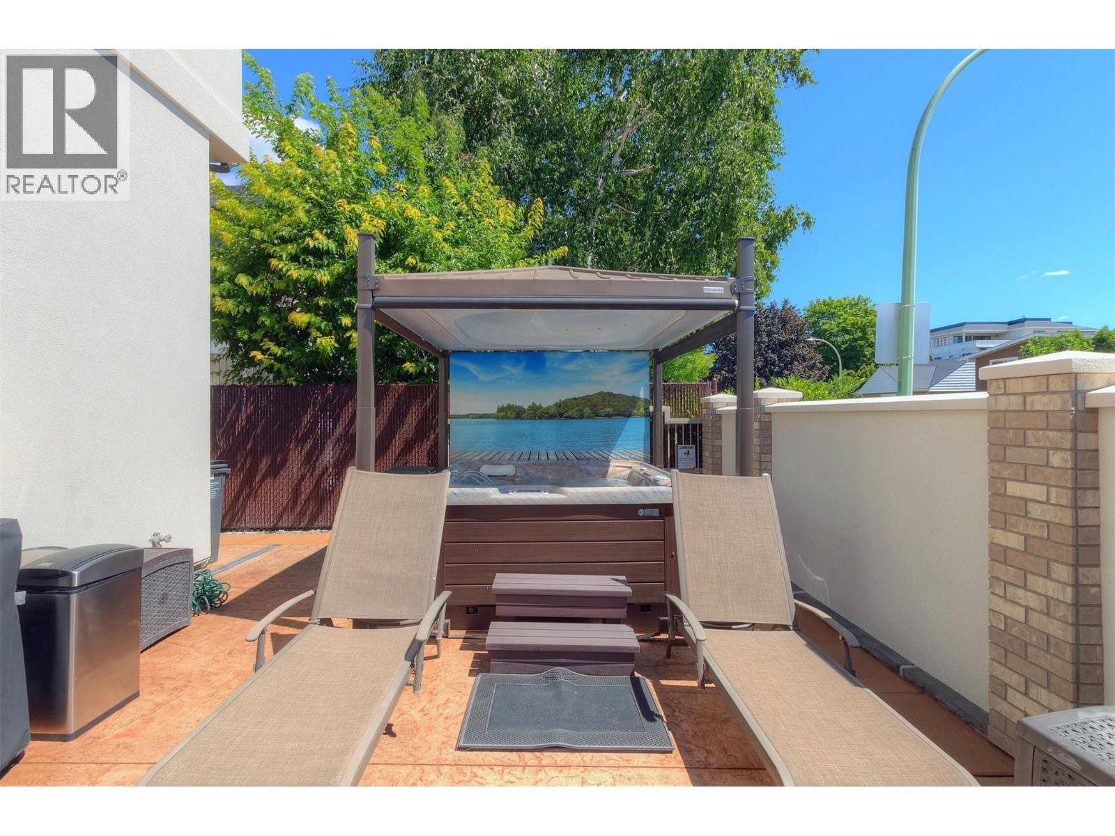 Located along the prestigious Abbott Street Corridor, this half-duplex executive home blends upscale design with an unbeatable location. Just steps from sandy beaches, scenic bike paths, boutique cafe's, acclaimed restaurants, and KGH, this walkable neighborhood embodies the best of the Okanagan lifestyle. Inside, timeless details include crown molding, tray ceilings, hardwood floors, rich wood cabinetry, and granite countertops. The open-concept main level flows seamlessly from the living room to the dining area and gourmet kitchen—complete with professional stainless-steel appliances, built-in wine cooler, and generous island for entertaining. Expansive windows bathe the home in natural light, while sliding doors open to a fenced outdoor living space with dining area, gas hookup, and hot tub—perfect for evening gatherings or a private retreat. Upstairs, the primary bedroom offers a private patio, wet bar, custom built-ins, walk-in closet, and a spa-inspired ensuite. Two additional bedrooms, each with walk-in closets and private ensuites, provide comfort and privacy for family or guests. A rare opportunity to own in one of Kelowna South’s most coveted locations, where refined living meets unmatched convenience. (id:62999)