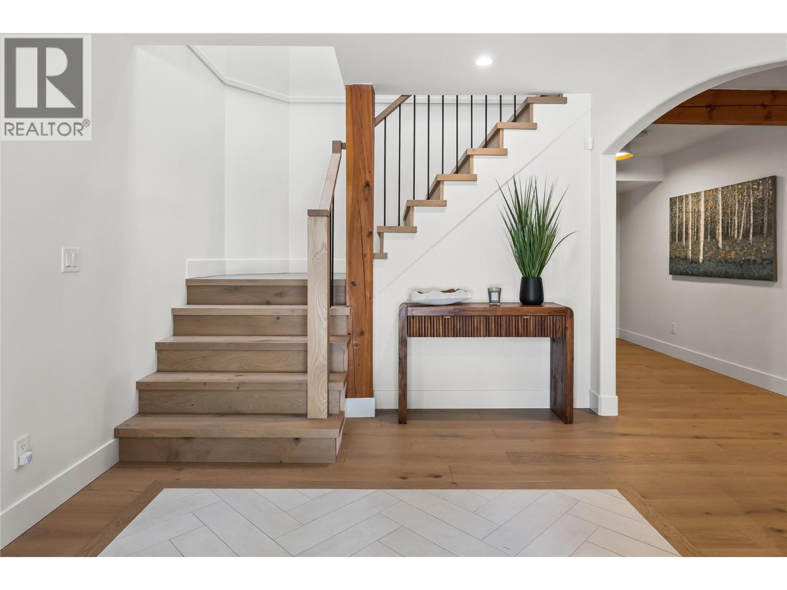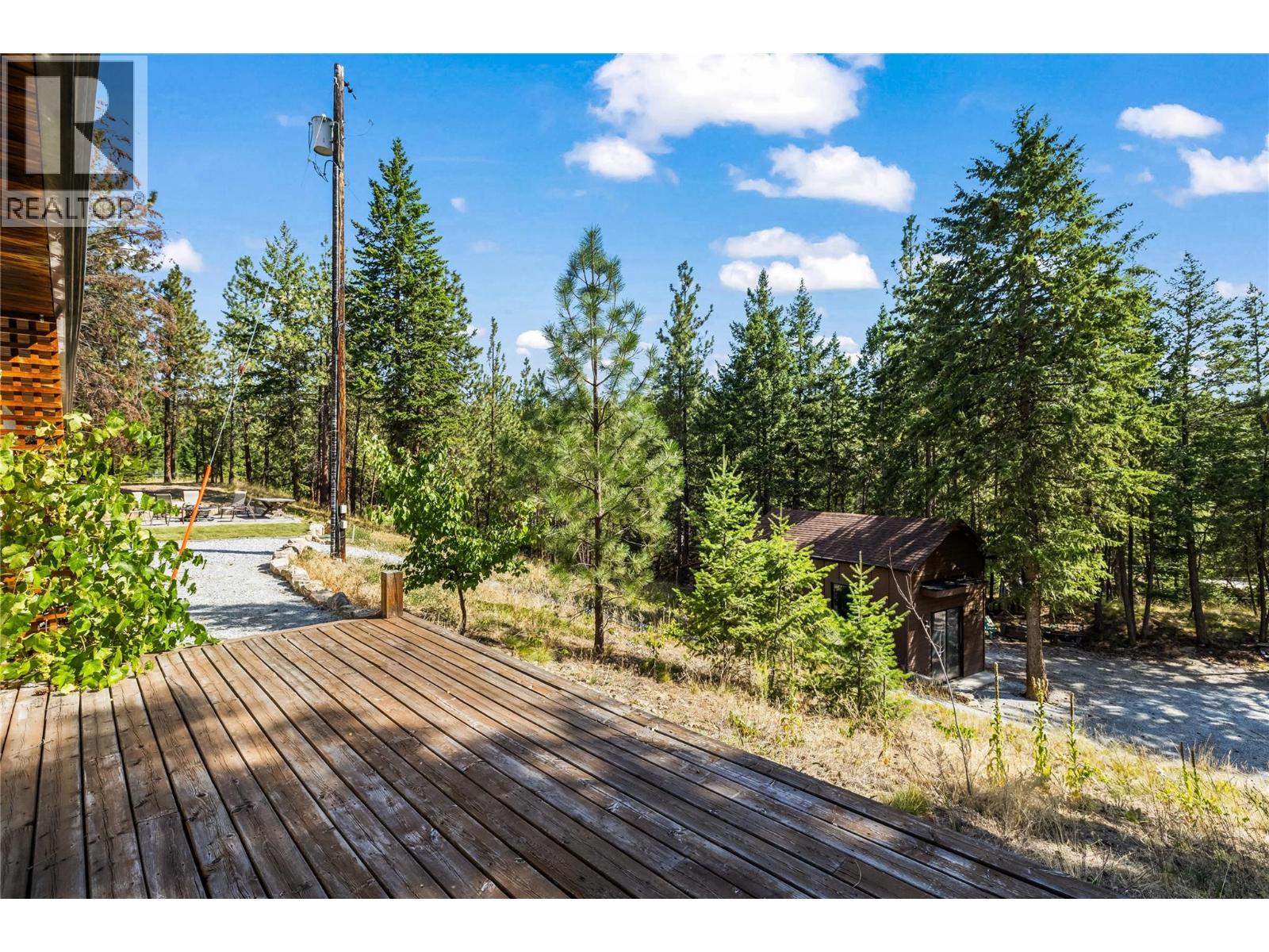 Luxury Acreage in Southeast Kelowna! This stunning 4.35-acre property offers unmatched privacy and elegance just minutes from Gallagher’s Canyon Golf Club. Meticulously renovated, this 3-bedroom + den, 3-bath home features soaring wood-vaulted ceilings, rich new hardwood floors, and a cozy gas fireplace that sets the tone for warmth and sophistication. The gourmet kitchen is a chef’s dream, complete with updated appliances, ample counter space, a breakfast bar, and an adjoining servery with a second fridge and generous cabinetry. The thoughtful design continues with a spacious mudroom, convenient laundry room, and abundant storage, including a huge crawlspace. Unwind in the sauna, enjoy the bright reading nook surrounded by windows, or utilize the loft for extra guests or creative space. The luxurious primary suite boasts a spa-like ensuite with a soaker tub and standalone shower. Outdoors, enjoy forest and mountain views, a gated driveway, an attached 3-car garage, a detached shop, and ample parking. This property is a rare opportunity to embrace both elegance and tranquility. (id:62999)