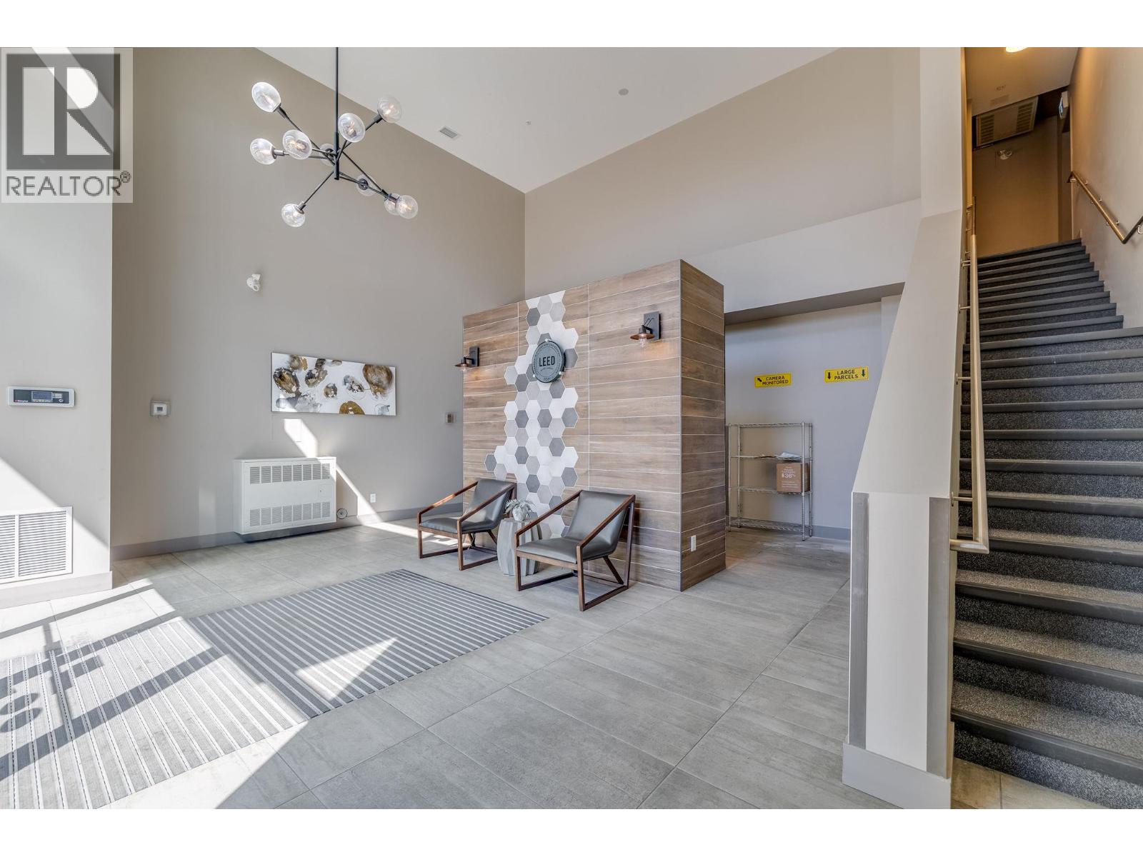 Welcome to this stunning 2-bedroom, 2-bath corner unit perfectly situated beside Rowcliffe Park in the heart of Kelowna. Designed with comfort and style in mind, this home offers a bright, open layout with oversized windows that flood the space with natural light. The living room seamlessly connects to the spacious kitchen, featuring sleek two-toned cabinetry, quartz countertops, a generous breakfast bar, and stainless steel appliances. Step outside to enjoy your own expansive outdoor living area, ideal for entertaining or simply taking in the beautiful mountain views. Inside, the primary bedroom provides plenty of closet space and a luxurious five-piece ensuite, while the second bedroom enjoys private access to a well-appointed bathroom with a walk-in shower, making it perfect for guests or family. Set within a vibrant 5-acre community, residents enjoy access to a dog park, walking track, and community gardens, all while being just a short walk or bike ride from beaches, shops, restaurants, and everything downtown Kelowna has to offer. One parking spaces are included, and pets are welcome, with no height restrictions for dogs. This home is the perfect blend of modern design, convenient location, and outdoor lifestyle. (id:62999)