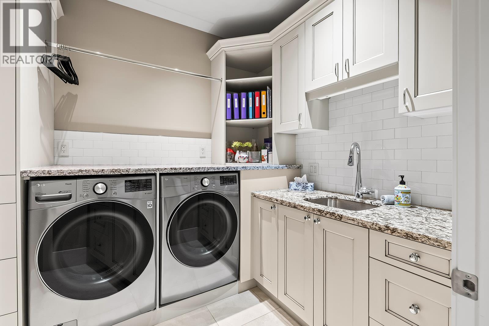 Welcome to luxury living on highly desirable Abbott Street! Combining timeless elegance with modern functionality, a spacious layout and impeccable finishes throughout. The grand double-storey foyer, embraces you with under-floor heated tile, soaring vaulted ceilings, and an abundance of natural light. An elevator, enhances accessibility and convenience. The ground level is perfect for guests or multi-generational living, featuring a private suite with kitchenette, sitting room and garden courtyard access, ideal for in-laws or Airbnb. An office, home theatre, laundry, and pool bathroom round out this level. The main floor chef’s kitchen with premium appliances and pantry, a great room with gas fireplace, two bedrooms with a shared bathroom, powder room, dining area, and a full wet bar with a dishwasher, wine and beverage fridges is an entertainer’s dream. Step outside to a stunning lounge and dining area with gas fireplace, TV, phantom screens, and hot tub. The top floor is an indulgent primary retreat with a spa-inspired marble bathroom, dressing room with laundry, private sitting area with fireplace, and a serene sun deck. Enjoy your secluded oasis with a UV pool, auto cover, and ample lounging space. A heated triple garage with additional storage completes this exquisite home. This freehold, bare land strata with private beach access has a low monthly strata $30 covering insurance for the common road. Ideally located near Pandosy Village, KGH, and the lake. (id:62999)