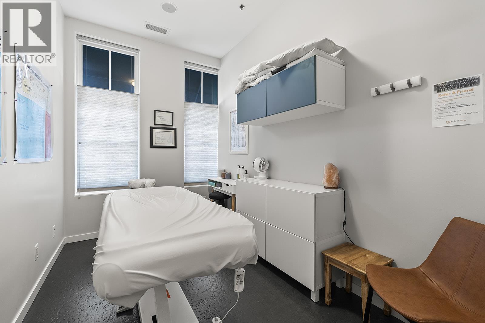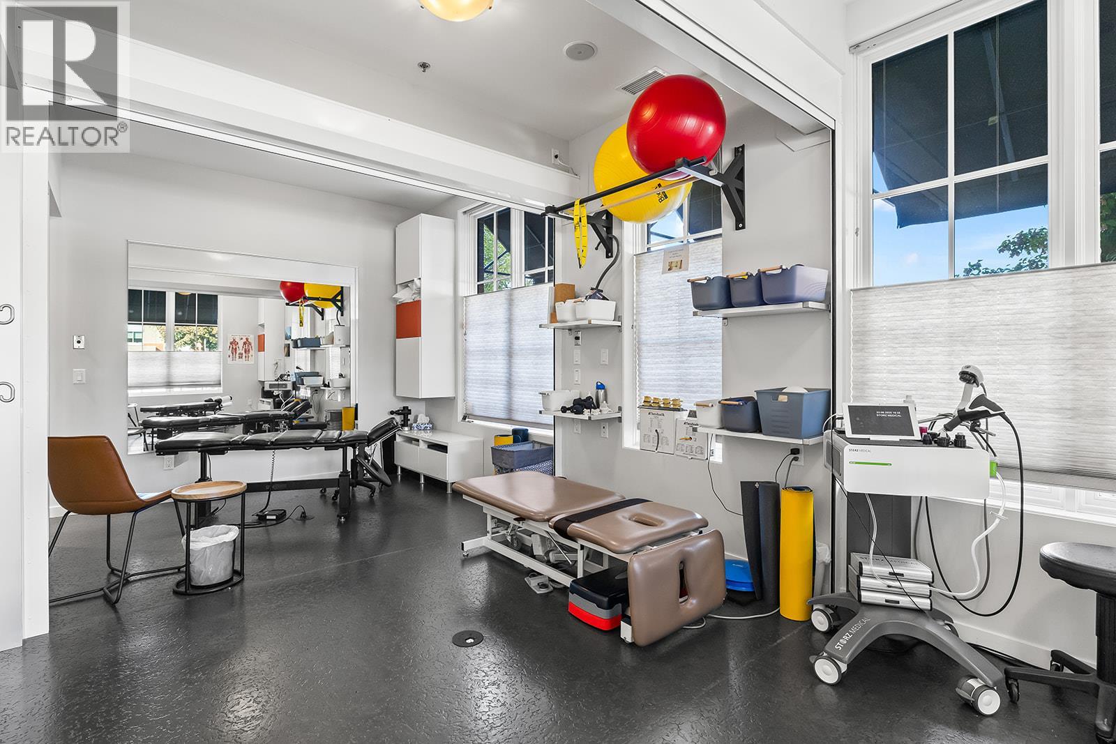 Established multi-disciplinary patient-focused health clinic for sale in Kelowna’s sought-after Pandosy Village neighbourhood. Active Living has been serving as a staple in the community since 2008 with chiropractic, physiotherapy, massage, and acupuncture services. This well led clinic features 8 treatment rooms, 2 office spaces, flexible space for group therapies, in-house laundry, a large loyal patient base with high retention due to quality of practice standards. Hit the ground running with equipment and assets including; 2 Summas Class IV lasers, Storz Shockwave, 3 RMT tables, 2 Chiro Tables, a Chiroteck table, Graston tool sets, exercise equipment and diagnostic equipment plus high end office furnishings. Scheduling and billing software (Janeapp), computer and POS sale system, database, are included. There is room to expand services and operating hours in the existing treatment space. Opportunity to scale performance with solid workplace culture and systems in place for a new owner. This is a rare chance to acquire a reputable practice to grow through referrals, marketing, and complementary service expansion. Information package can be shared with a signed NDA. Share purchase. [Please do not attend location without prior discussion]. (id:62999)
