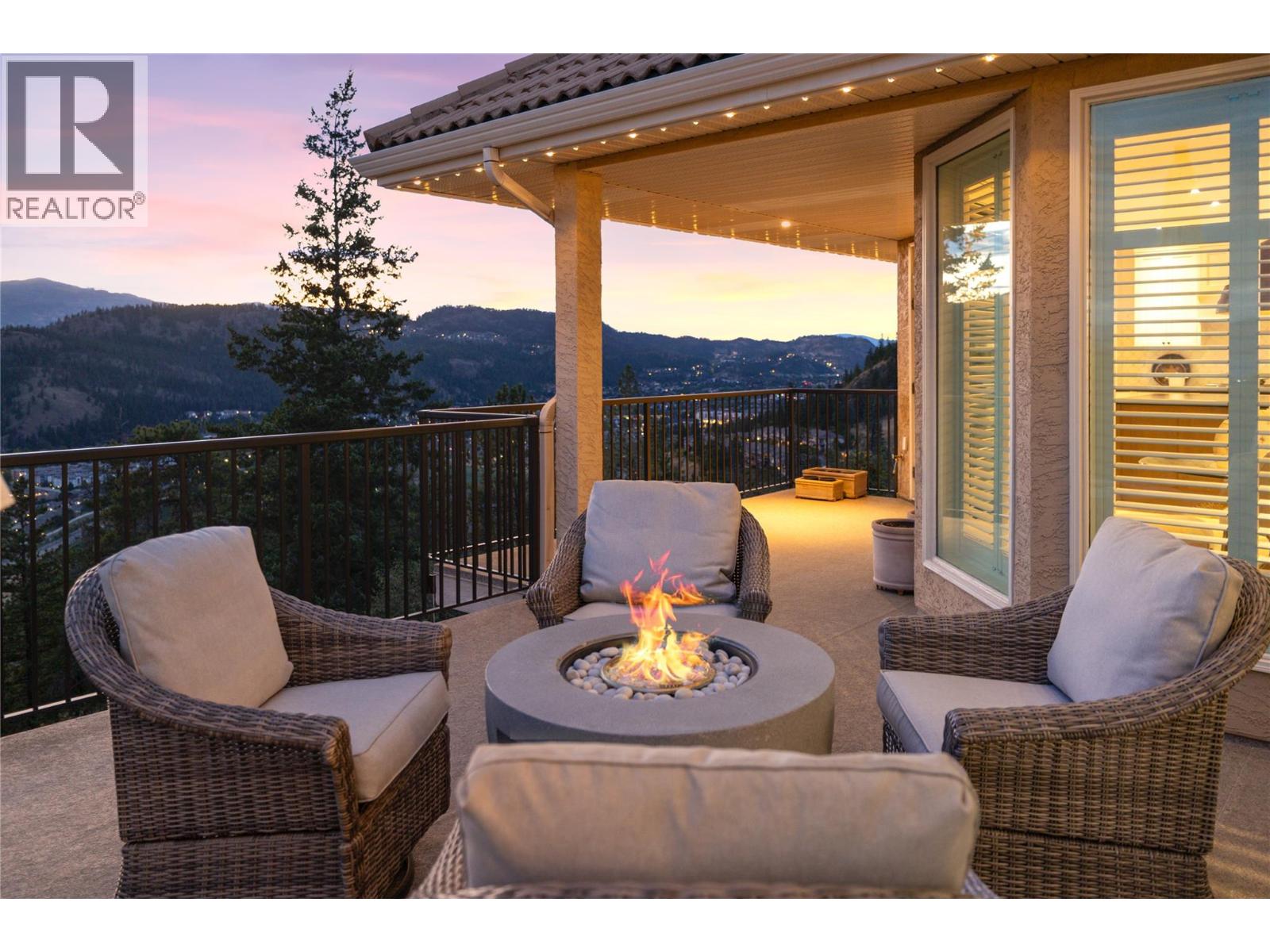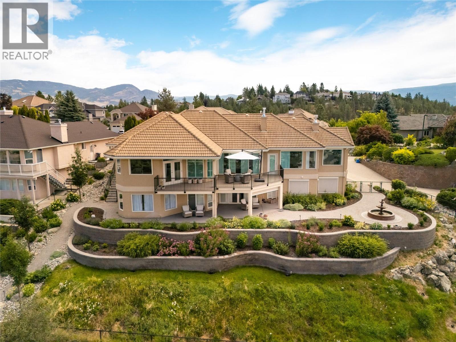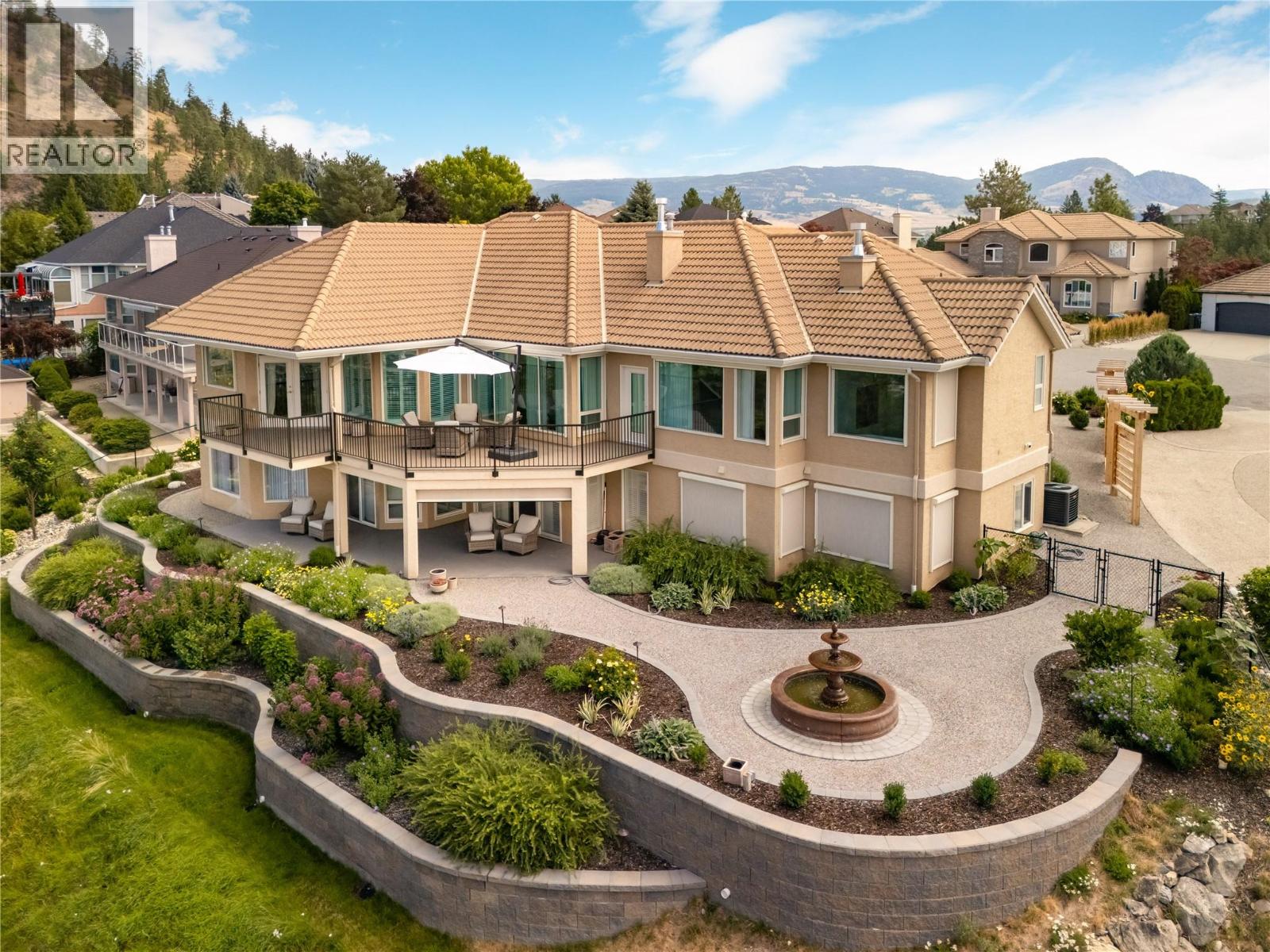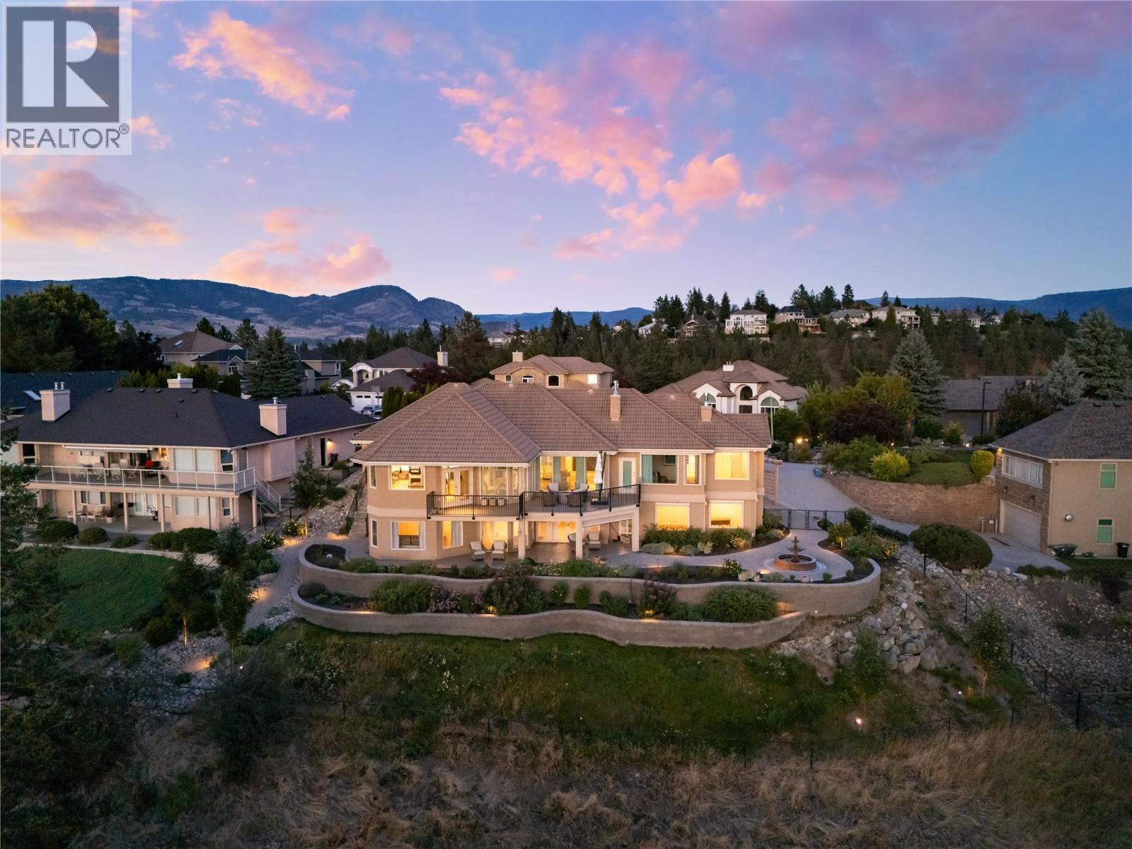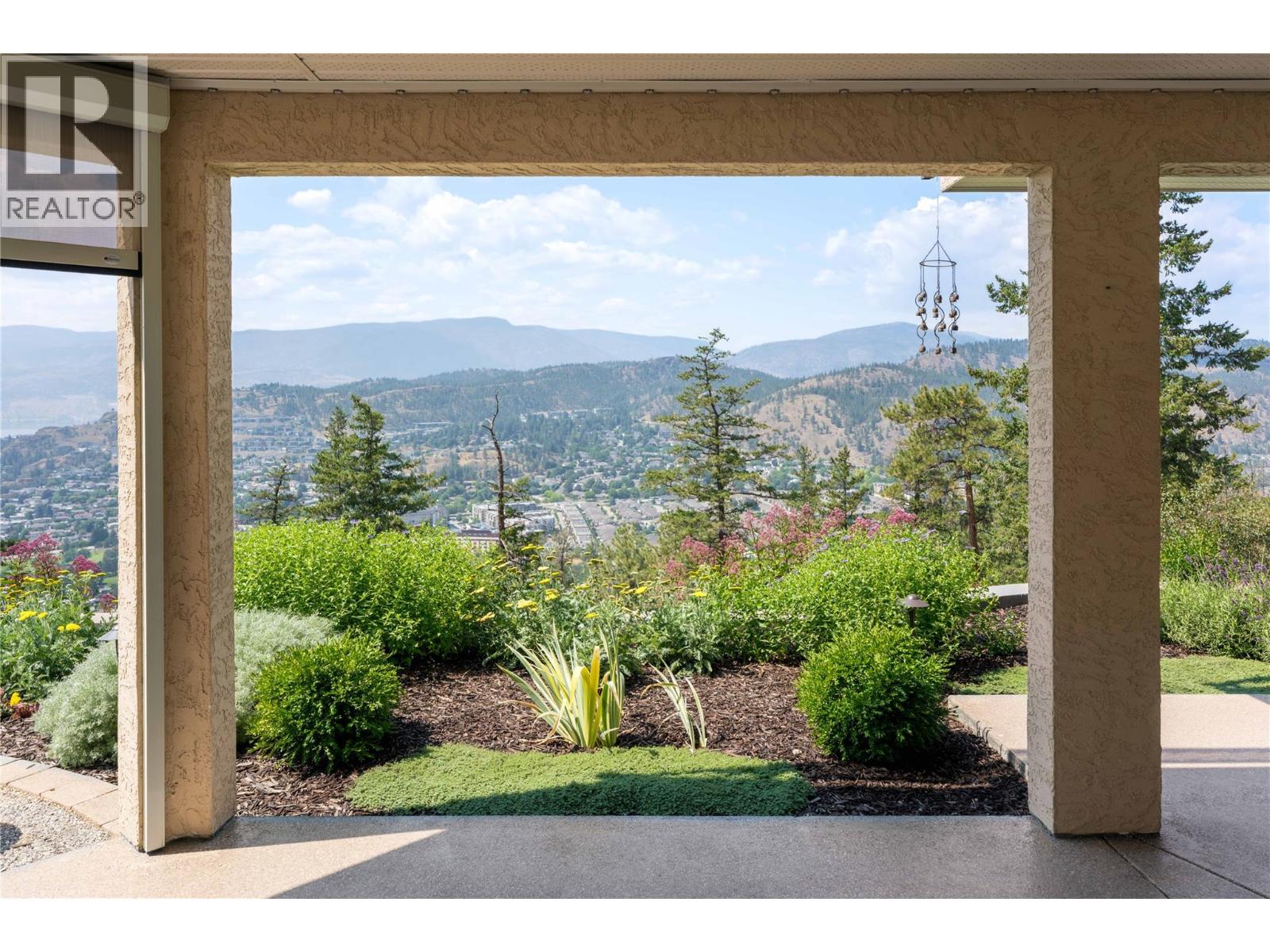 Welcome to 2150 Breckenridge, a residence where breathtaking views & refined living come together in perfect harmony. Set on a quiet cul-de-sac, this 4-bed + den, 3-bath home captures sweeping panoramas of Okanagan Lake, city lights & rolling hills. From sunrise coffee on the terrace to evenings framed by dazzling sunsets, every moment here is designed around the view. The timeless stucco exterior, triple garage & professionally landscaped grounds create an impressive first impression, while inside, expansive windows & hardwood floors bring light & warmth throughout. The custom 3-tone kitchen is both stylish & functional with True Wood cabinetry, new Trail appliances, pull-outs & an oversized island, flowing seamlessly into the formal dining room with wood beam accents. The primary retreat is a sanctuary with a private deck, two-sided fireplace, spa ensuite with handmade tile, soaker tub with views & a custom walk-in closet with natural light. The versatile lower level offers a fitness room, three bedrooms, walk-out access to the garden & additional entertaining space. Outdoors, enjoy multiple patios, a water feature, exterior sun screens, new Duradek decking, full irrigation, retaining walls & custom Allure exterior lighting. Every system has been thoughtfully updated, from new mechanicals to epoxy garage floors with mezzanine storage. Meticulously maintained & move-in ready, this home represents the best of Kelowna living. (id:62999)