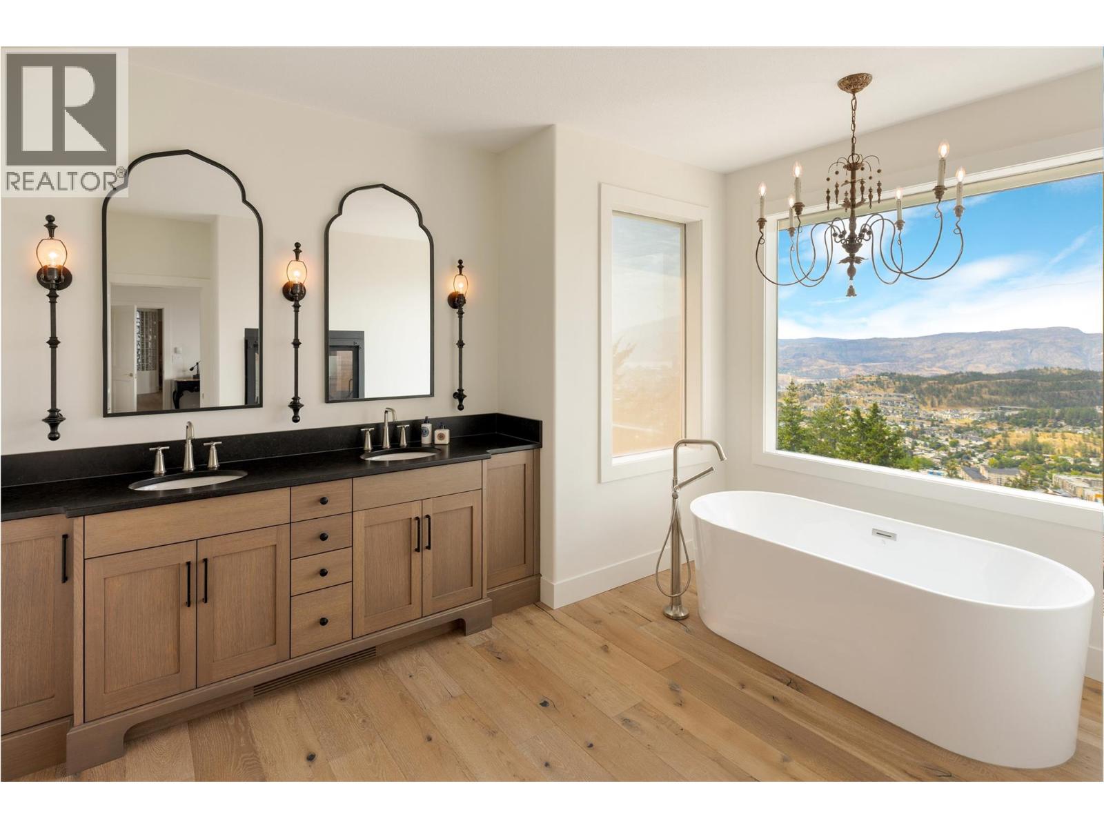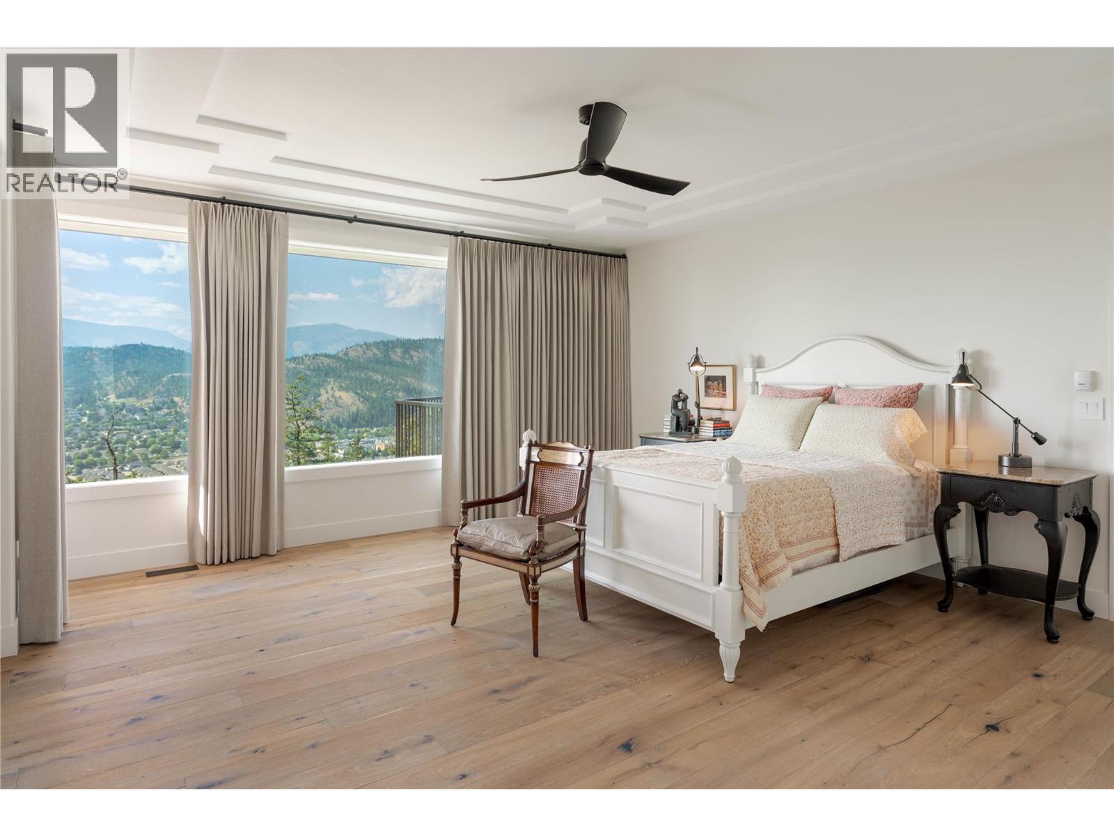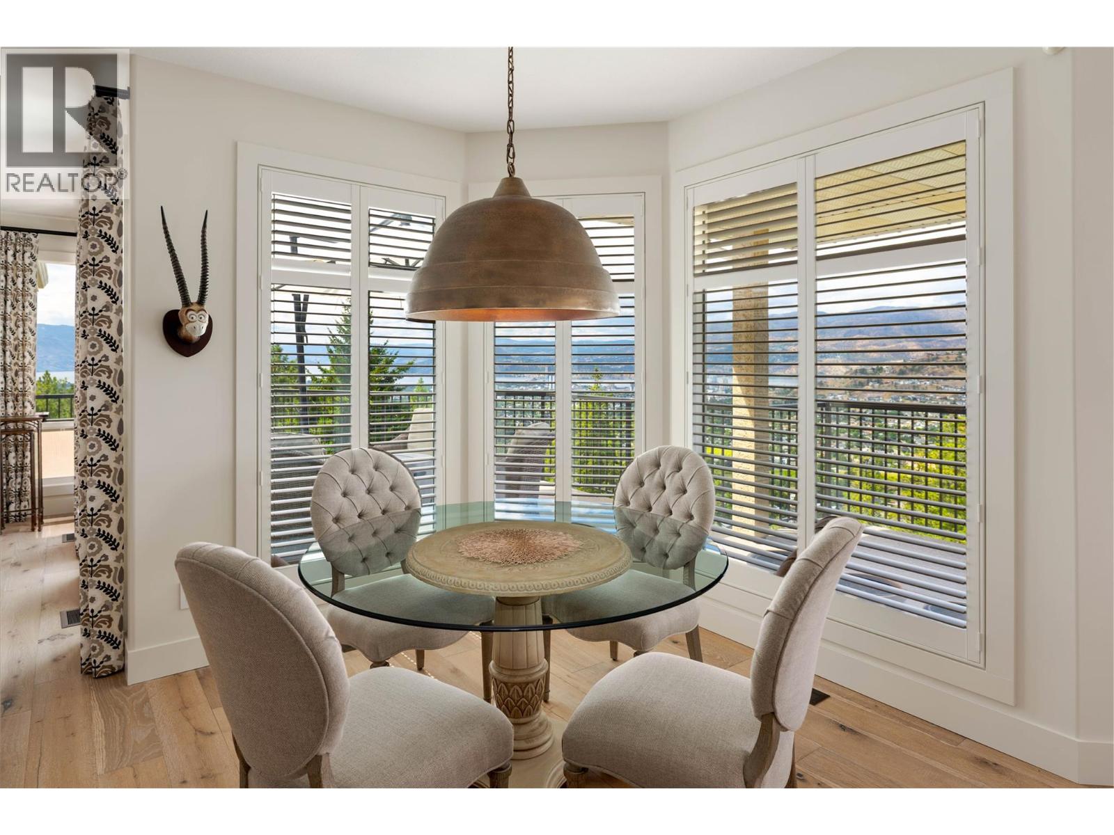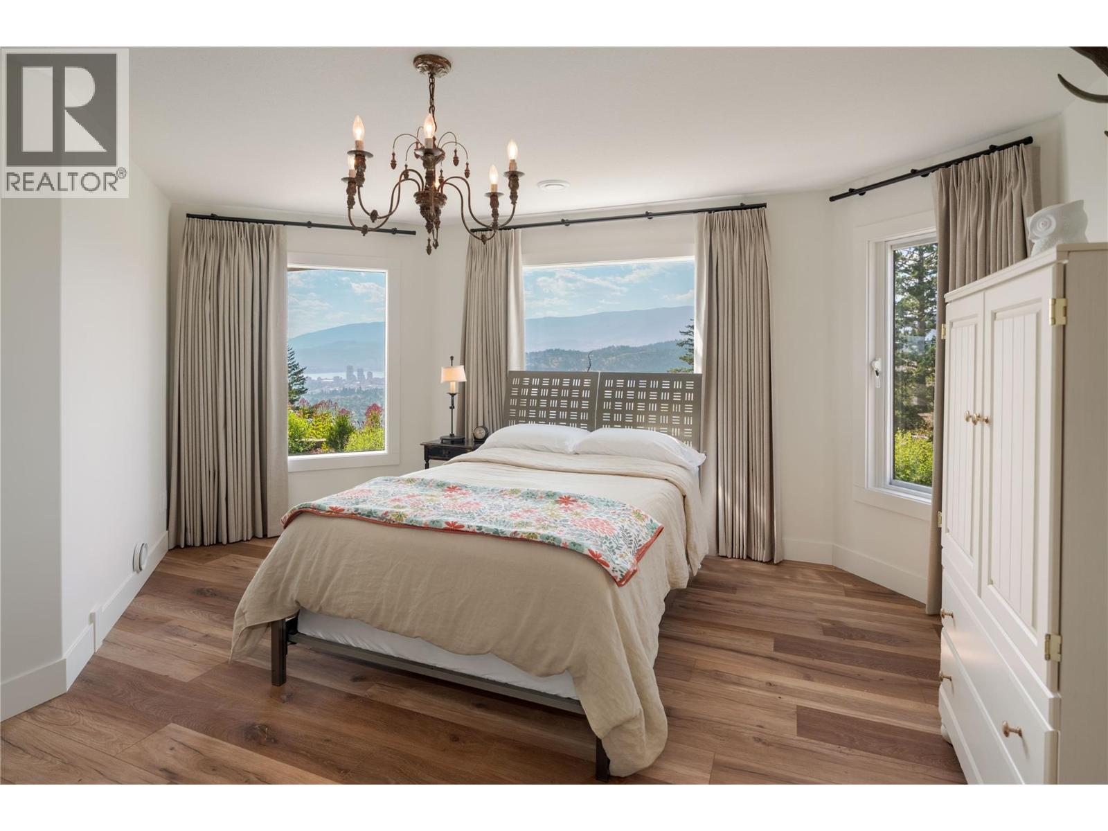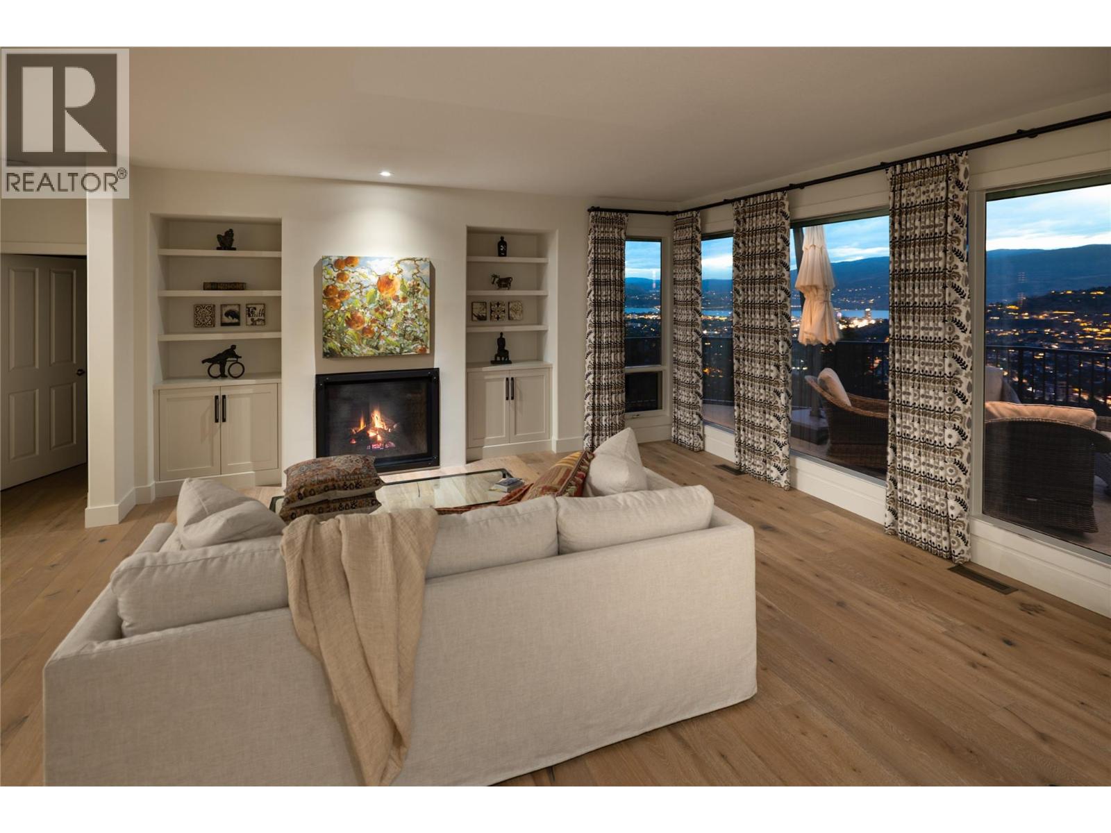 Welcome to 2150 Breckenridge, a residence where breathtaking views & refined living come together in perfect harmony. Set on a quiet cul-de-sac, this 4-bed + den, 3-bath home captures sweeping panoramas of Okanagan Lake, city lights & rolling hills. From sunrise coffee on the terrace to evenings framed by dazzling sunsets, every moment here is designed around the view. The timeless stucco exterior, triple garage & professionally landscaped grounds create an impressive first impression, while inside, expansive windows & hardwood floors bring light & warmth throughout. The custom 3-tone kitchen is both stylish & functional with True Wood cabinetry, new Trail appliances, pull-outs & an oversized island, flowing seamlessly into the formal dining room with wood beam accents. The primary retreat is a sanctuary with a private deck, two-sided fireplace, spa ensuite with handmade tile, soaker tub with views & a custom walk-in closet with natural light. The versatile lower level offers a fitness room, three bedrooms, walk-out access to the garden & additional entertaining space. Outdoors, enjoy multiple patios, a water feature, exterior sun screens, new Duradek decking, full irrigation, retaining walls & custom Allure exterior lighting. Every system has been thoughtfully updated, from new mechanicals to epoxy garage floors with mezzanine storage. Meticulously maintained & move-in ready, this home represents the best of Kelowna living. (id:62999)