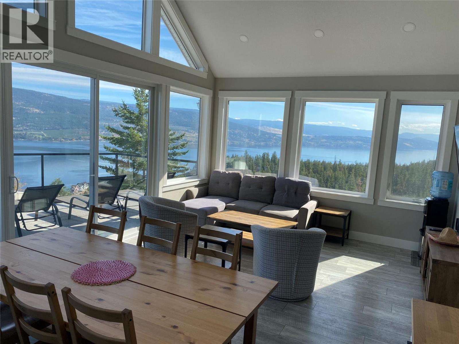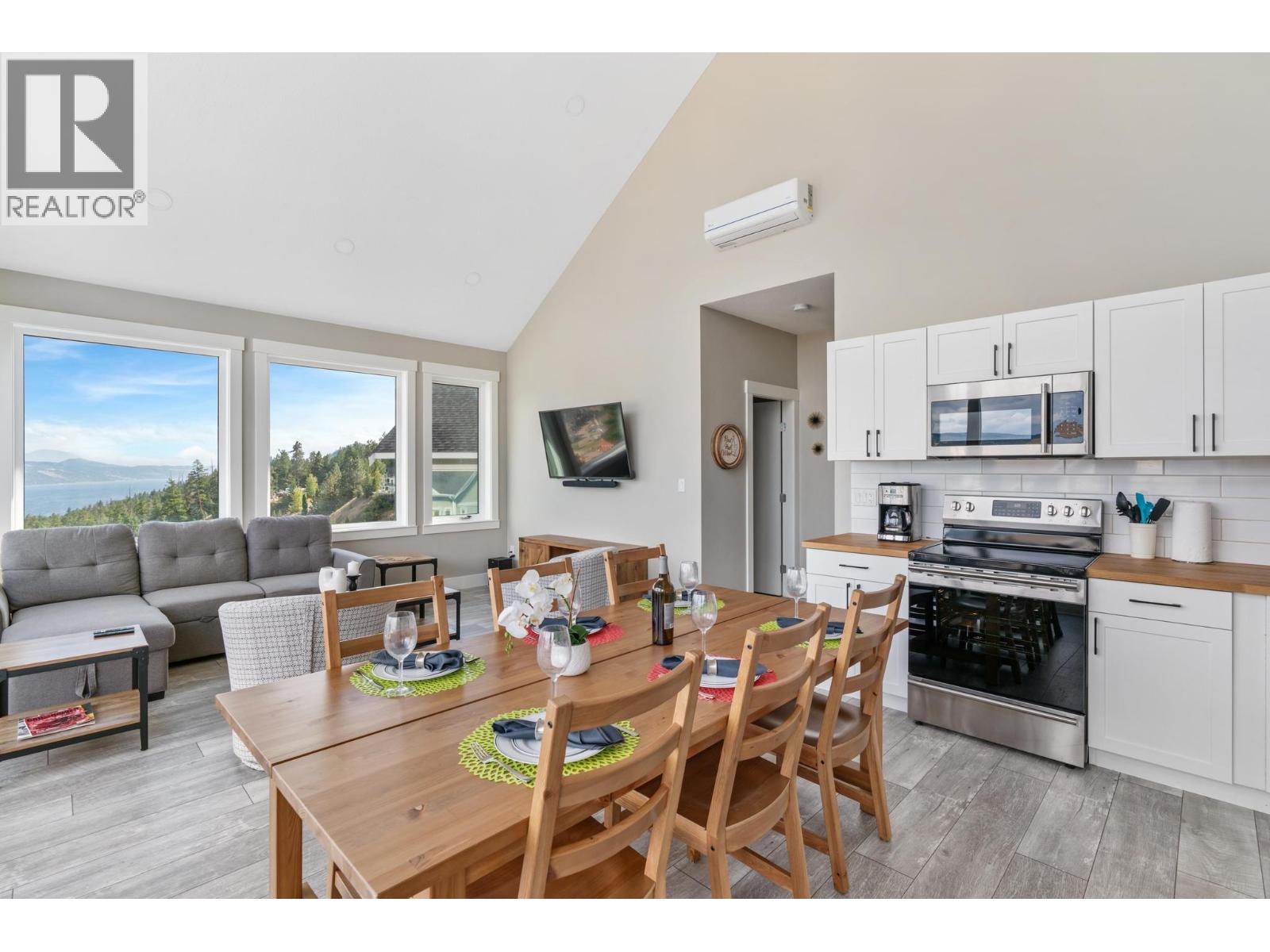 Panoramic lake views, high vaulted ceilings with 2 walls of windows create a bright and spacious feel at this beautiful property. The lower level includes a 3 piece bath with walk in shower and the primary bedroom with its own private lakeview patio. The upper level hosts 2 generous sized bedrooms, a full 4 piece bath, laundry, and a beautiful white kitchen with loads of storage, overlooking the huge Lakeview deck at the rear of the home. This home not only has a tandem double garage complete with a new 4 seater golf cart, but it also has 2 extra spots on the driveway AND an additional 3 parking spots at the rear of the home. This fabulous home comes completely turn-key, from the furnishings down to the pots and pans. La Casa resort has NO Speculation Tax and is allowed short term rentals, either through the on-site management or on your own. The resort has 2 swimming pools, 3 hot tubs, a boat launch, beach, mini golf course, tennis and pickleball courts, fire pits, dog beach and much much more. (id:62999)