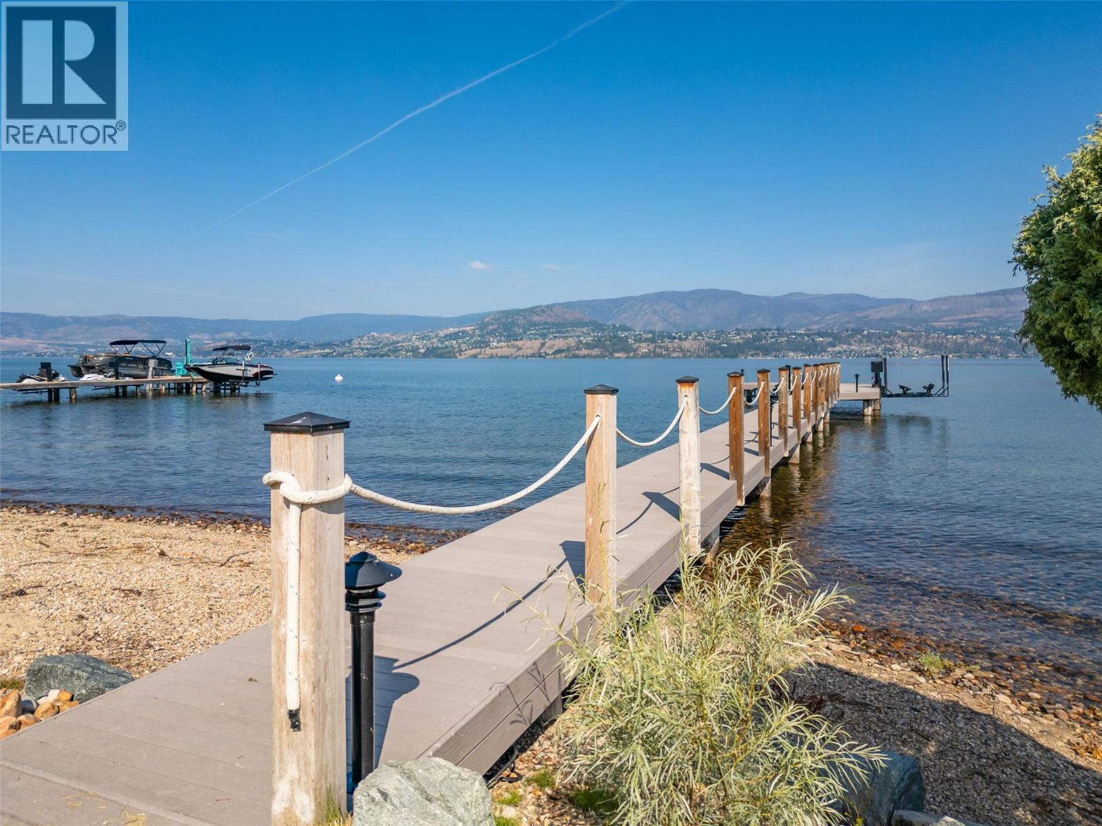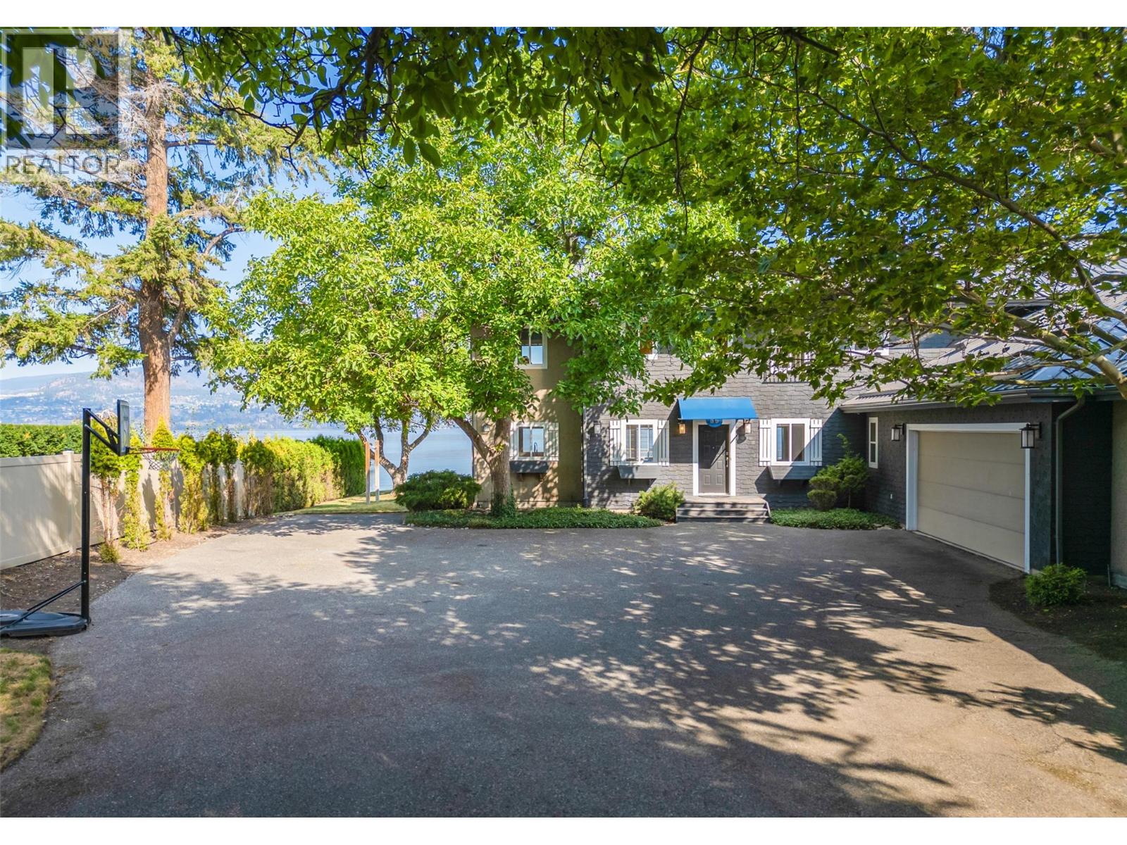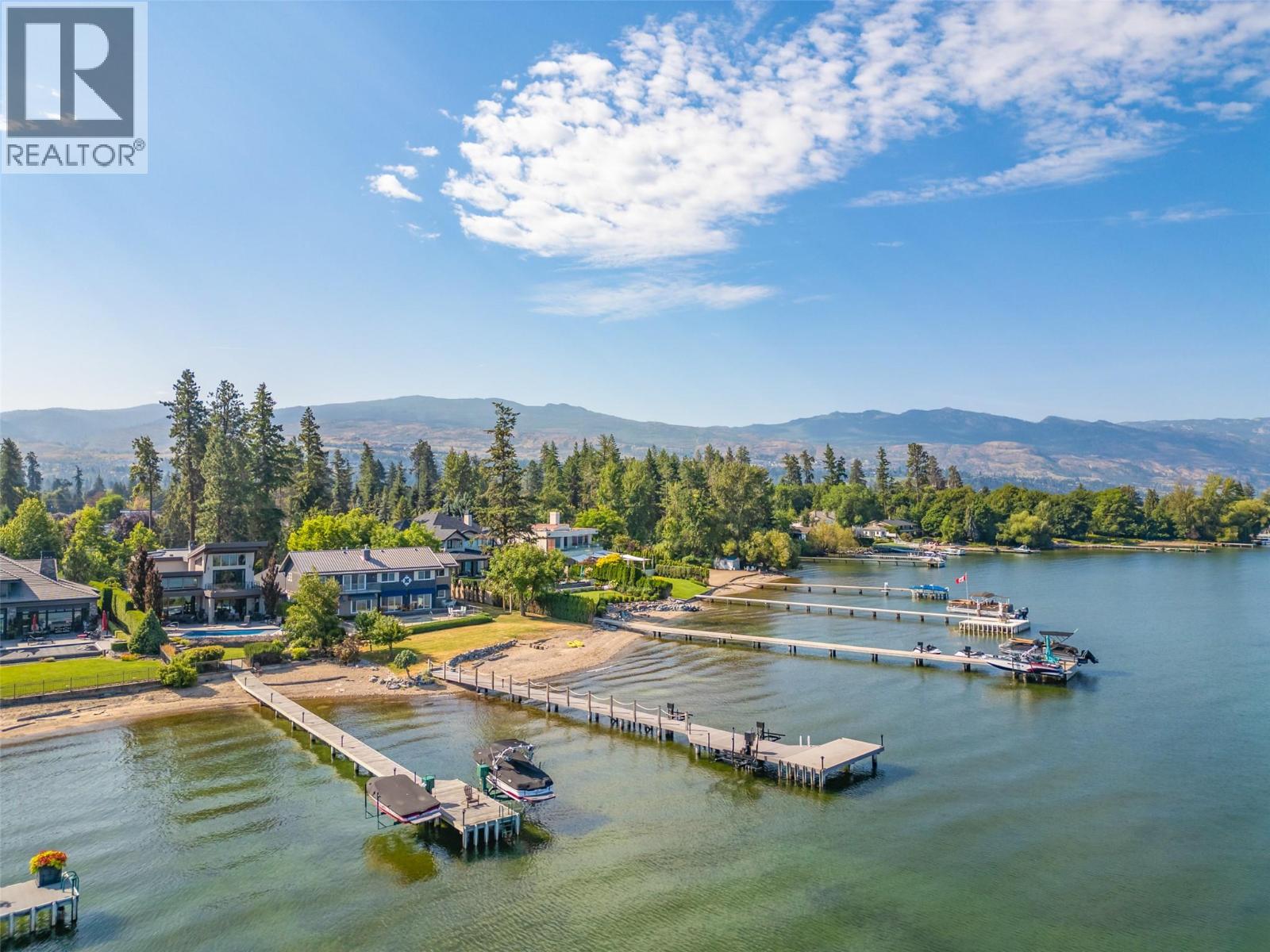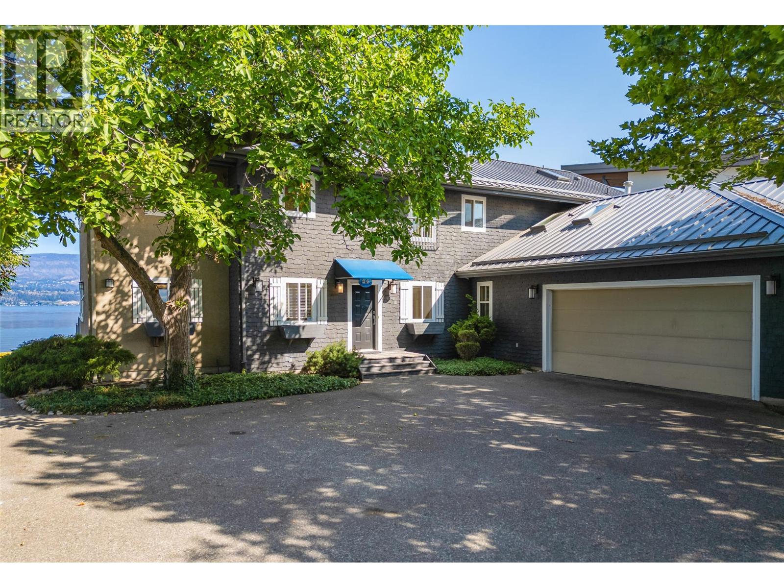 GORGEOUS .79 ACRE HOBSON ROAD LAKESHORE OFFERING! Situated on one of the most Prestigious streets in Kelowna offering a private .79 acre setting & featuring 120 ft. of Gorgeous Sandy lakefront on an almost peninsula shaped lot stretching out into the beautiful Okanagan Lake. Enjoy an unobstructed sandy Beach and Lake setting! Gated access welcomes you in with a Meandering Driveway, Stately Old growth trees, tons of parking, and covered parking for up to 6 cars total. This Executive Old English Cottage Style styled two story home offers a 6 bedroom, 5 bathroom home, Wood shake siding and low maintenance aluminum roof. Attached 1 Bedroom coach house with separate garage for Inlaws, gardener or mortgage helper. Expansive grounds for your enjoyment. Concrete In-ground Pool and Patio enjoys the private and expansive lake views, and direct access to the wide beach. Long and Large 2019 rebuilt pile driven deep water Dock with 2 electric jet ski lifts, and boat lift with Trex boards. Spacious 1998 Built Home offers a Maple Kitchen, Oak hardwood floors, 6 bedroom home, 5 bathrooms. Primary bedroom suites up and down. Tons of wall to wall windows and glass sliding doors to bring outdoors in. Expansive King-sized primary up with Gas FP, lounge area, luxurious ensuite. Double Attached Garage plus Detached Triple Garage. Located on one of Kelowna's most Exclusive High End Lakeshore Streets offering Privacy, Peace, Park like grounds, and Prestige! (id:62999)