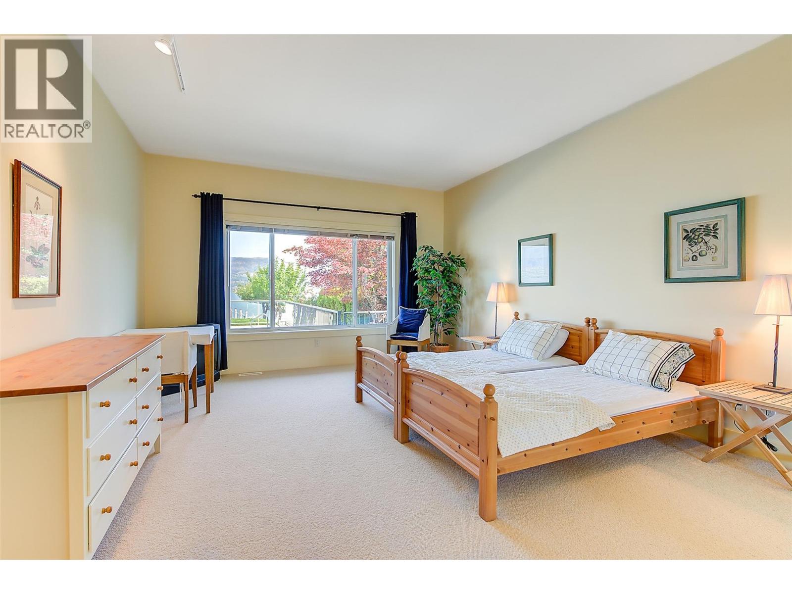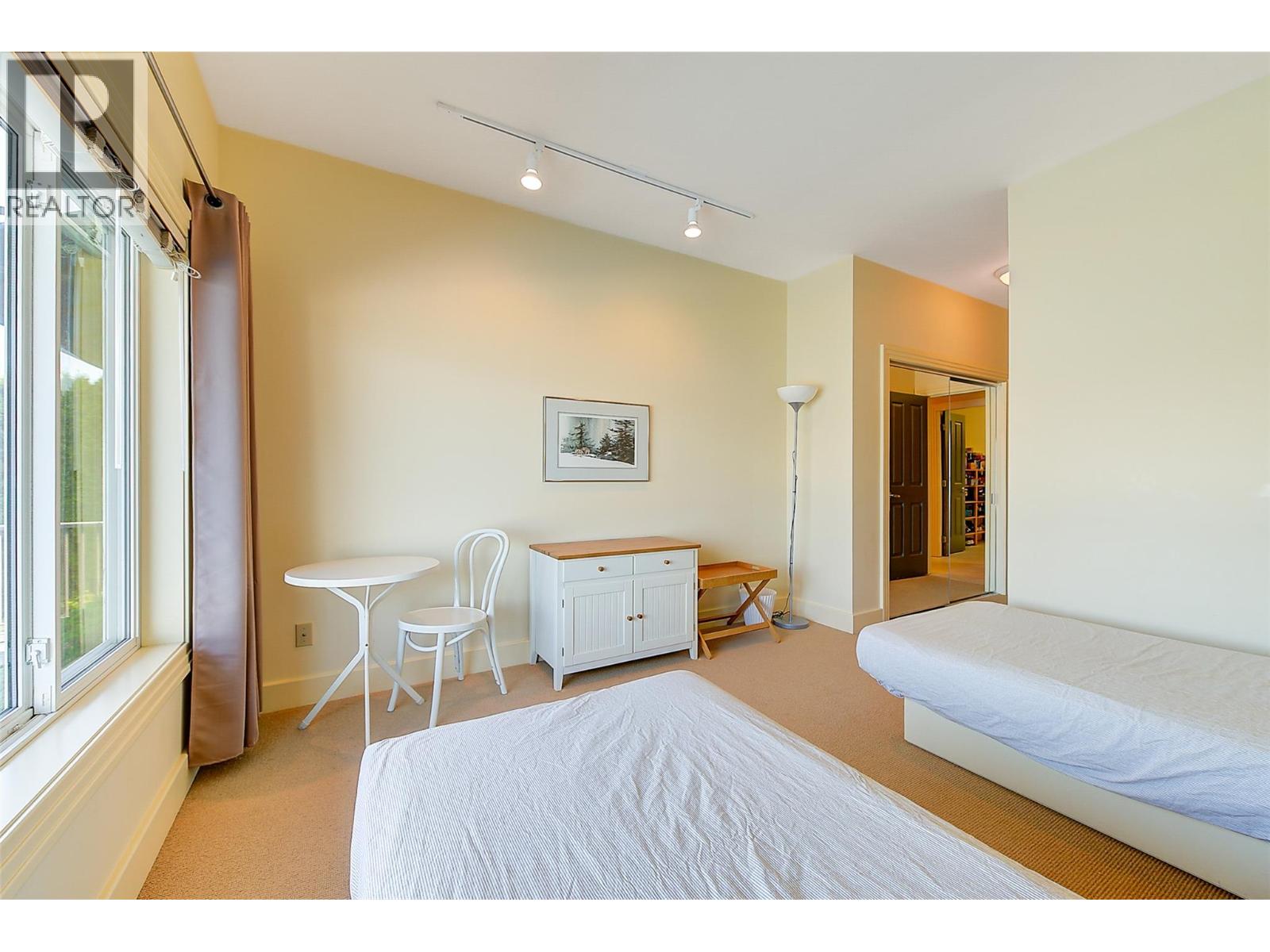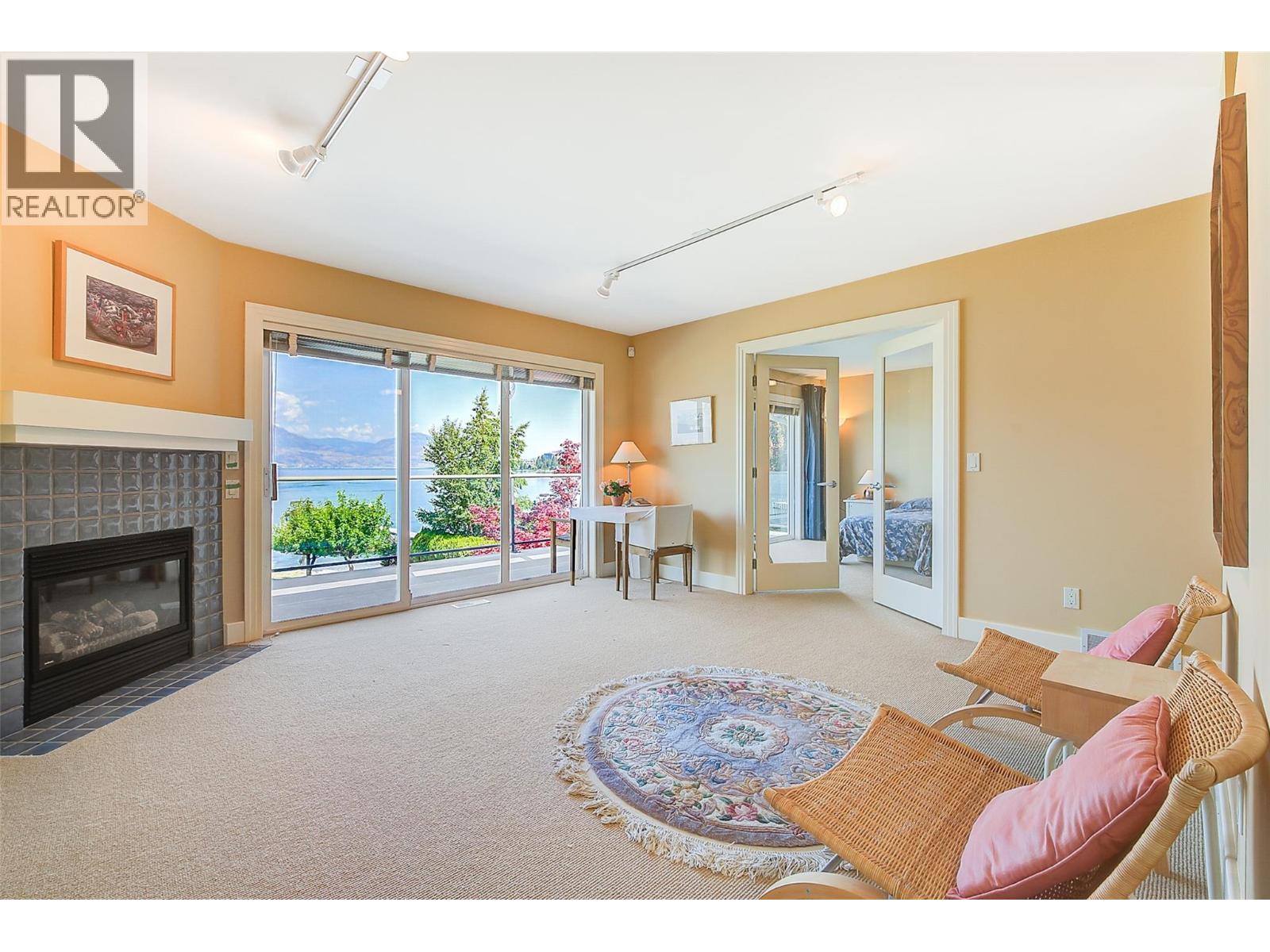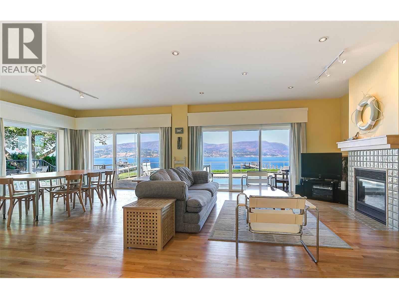 GORGEOUS .79 ACRE HOBSON ROAD LAKESHORE OFFERING! Situated on one of the most Prestigious streets in Kelowna offering a private .79 acre setting & featuring 120 ft. of Gorgeous Sandy lakefront on an almost peninsula shaped lot stretching out into the beautiful Okanagan Lake. Enjoy an unobstructed sandy Beach and Lake setting! Gated access welcomes you in with a Meandering Driveway, Stately Old growth trees, tons of parking, and covered parking for up to 6 cars total. This Executive Old English Cottage Style styled two story home offers a 6 bedroom, 5 bathroom home, Wood shake siding and low maintenance aluminum roof. Attached 1 Bedroom coach house with separate garage for Inlaws, gardener or mortgage helper. Expansive grounds for your enjoyment. Concrete In-ground Pool and Patio enjoys the private and expansive lake views, and direct access to the wide beach. Long and Large 2019 rebuilt pile driven deep water Dock with 2 electric jet ski lifts, and boat lift with Trex boards. Spacious 1998 Built Home offers a Maple Kitchen, Oak hardwood floors, 6 bedroom home, 5 bathrooms. Primary bedroom suites up and down. Tons of wall to wall windows and glass sliding doors to bring outdoors in. Expansive King-sized primary up with Gas FP, lounge area, luxurious ensuite. Double Attached Garage plus Detached Triple Garage. Located on one of Kelowna's most Exclusive High End Lakeshore Streets offering Privacy, Peace, Park like grounds, and Prestige! (id:62999)