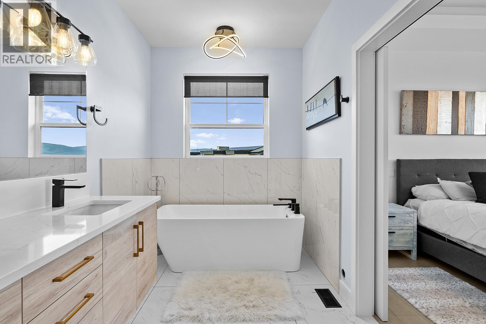 Welcome to this custom single-family lake view home in the heart of Kettle Valley, offering a blend of elegance and functionality. Boasting 4 bedrooms and 4 bathrooms, this newer home is designed for modern living and entertaining. Step inside the open-concept floor plan showcasing a chef’s kitchen outfitted with stainless steel appliances, sleek finishes, and ample space for hosting gatherings. The primary suite is a retreat, with a walk-in closet and spa-inspired ensuite with dual sinks, a makeup vanity, soaker tub, and steam shower. Enjoy lake and city views from the expansive front-facing deck, ideal for sunset entertaining. Or unwind in your landscaped backyard complete with a private hot tub, fit pit, hammock swings, and cook space, perfect for Okanagan summers. This home also features a legal 1 bedroom suite with a separate entrance and laundry, offering flexibility for extended family or passive income. A double attached garage and generous driveway provide ample parking options. Located in park heaven, you’ll find 4 parks and 5 trails within easy walking distance. Families will appreciate the top-tier school catchment: Chute Lake Elementary, Canyon Falls Middle School, and Okanagan Mission Secondary, with a full K–12 French Immersion option only 10 mins away. Conveniently close to transit, local amenities, and the region’s most iconic attractions like Summerhill Winery, this home offers the complete Okanagan lifestyle. Simply move in, and enjoy Kelowna Life. (id:62999)