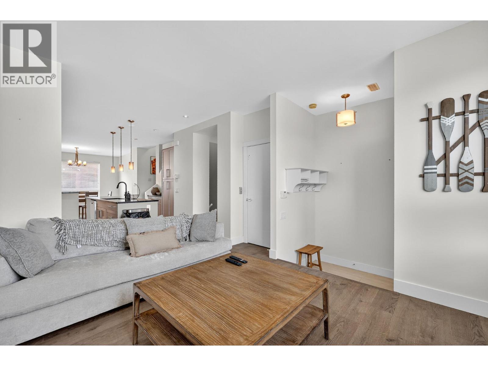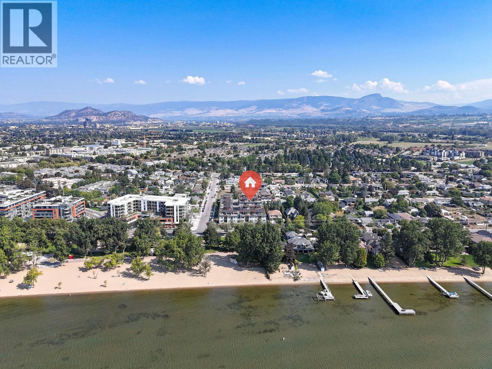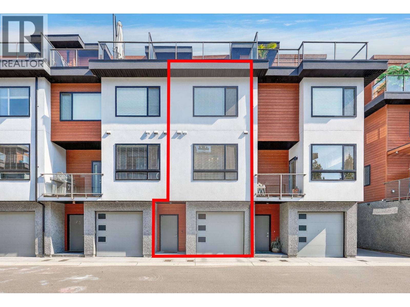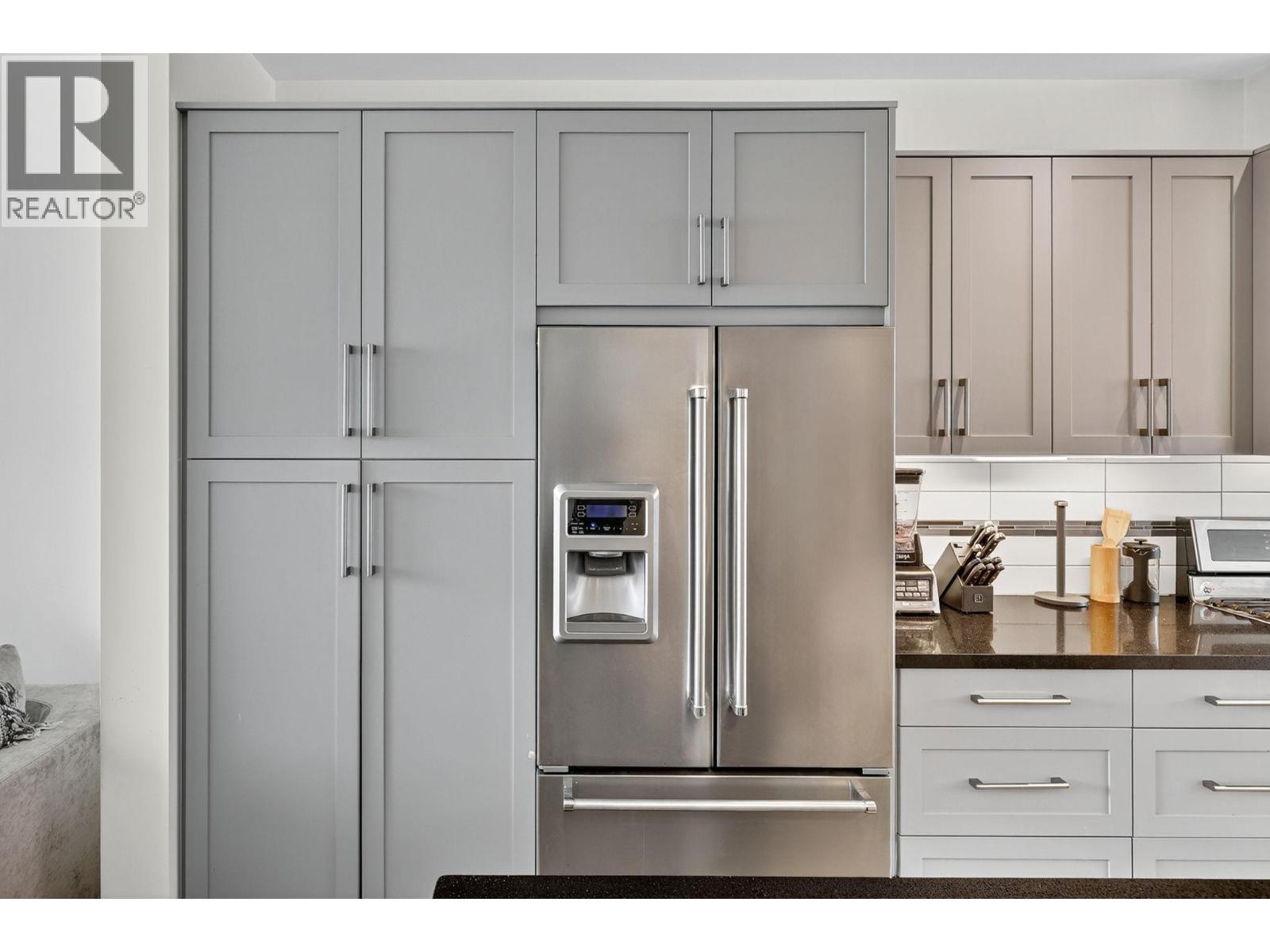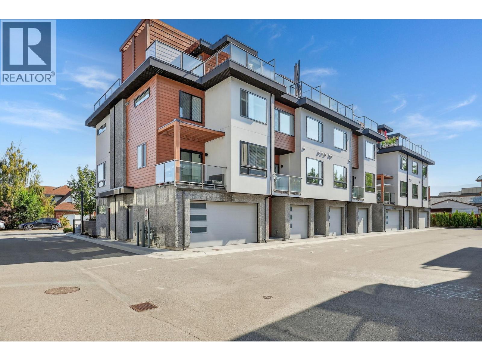 Welcome to luxury living in one of the most walkable neighbourhoods, just steps from Gyro Beach, Okanagan Lake, shopping, and dining. This stunning 2-bedroom, 2-bath townhouse offers nearly 1,500 sq. ft. of intelligently designed space, complete with a private in-unit elevator. The highlight is a rare 600 sq. ft. rooftop patio—perfect for entertaining or unwinding with unbeatable views. Inside, you’ll find an open-concept kitchen with a large island with built-in sink, quartz counters, soft-close cabinetry, stainless steel appliances, and a gas range. The bright living space is located on the quiet side of the building, offering both privacy and comfort. The second bedroom includes a convenient Murphy bed, maximizing versatility. The attached double garage provides secure parking and excellent storage with a ceiling/wall storage system, while additional street parking is right outside your door. Extras include a built-in vacuum, heated ensuite floors, forced air heat, central air conditioning and modern finishes throughout. Rooftop patios like this rarely come to market—especially this close to the water. Bring you pets as you can have one dog or one cat and there is no size restriction on dogs! Don’t miss your chance to own a true gem in the heart of the Okanagan. (id:62999)