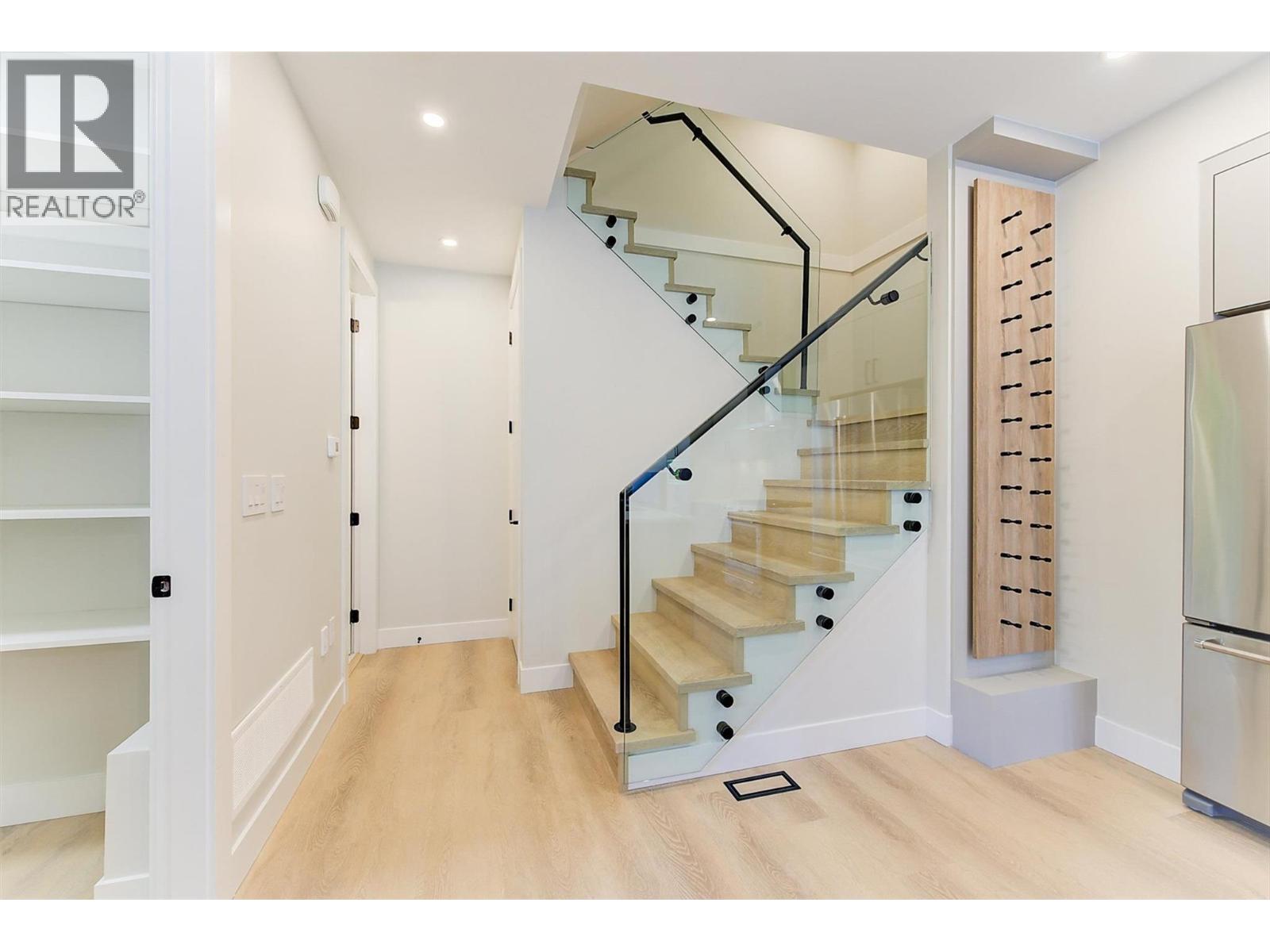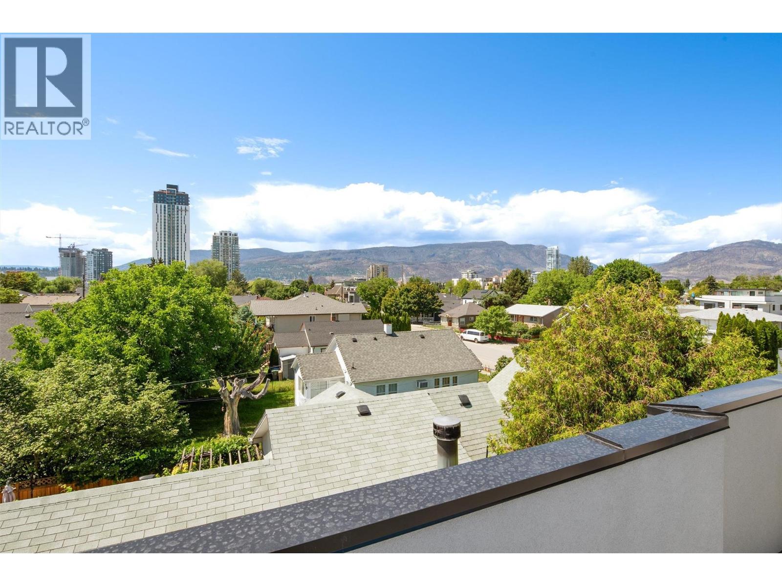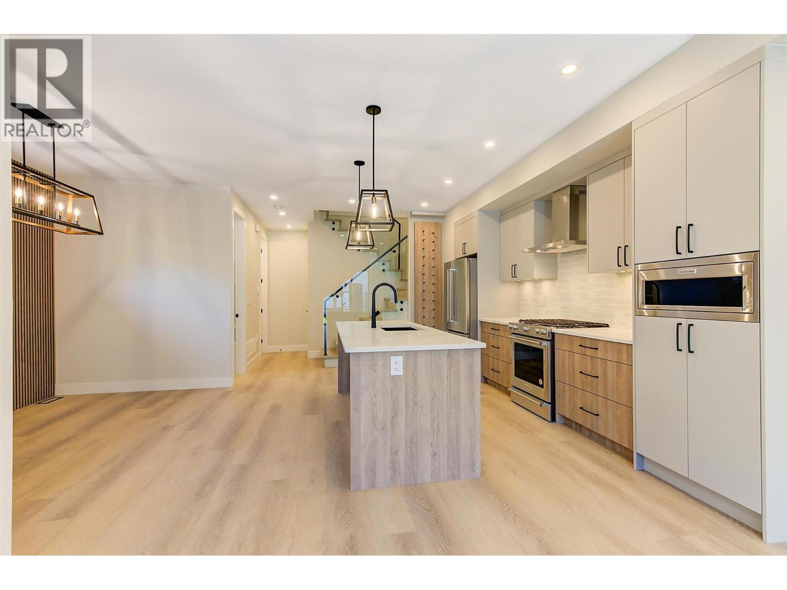 **Discover Luxury Downtown Living** Step into this custom-built, North-facing townhome, offering 3 bedrooms, 2.5 bathrooms, and two stories of exquisite design. Topped with a rooftop patio prepped for a hot tub, this home invites you to embrace the Okanagan’s signature outdoor lifestyle. Every detail has been carefully curated to exude sophistication. Expansive windows fill the space with natural light, complementing the modern exterior of concrete and wood finishes. Inside, the chef-inspired kitchen stands out with a large island, stainless steel appliances, quartz countertops, and a custom backsplash framing the gas stove and 28-inch hood range fan. Throughout the home, premium flooring, a built-in fireplace, and contemporary light fixtures enhance the luxurious ambiance. The primary suite features a spa-like ensuite with a double vanity and a sleek walk-in shower. A large crawl space on the main floor offers ample storage, while the private yard with a covered patio creates your personal oasis. Completing the home is a covered single-car garage with rough-in for an EV charging station, blending convenience with modern living. This townhome isn’t just a residence—it’s a statement of style, comfort, and urban sophistication. Make it yours and elevate your lifestyle today. (id:62999)