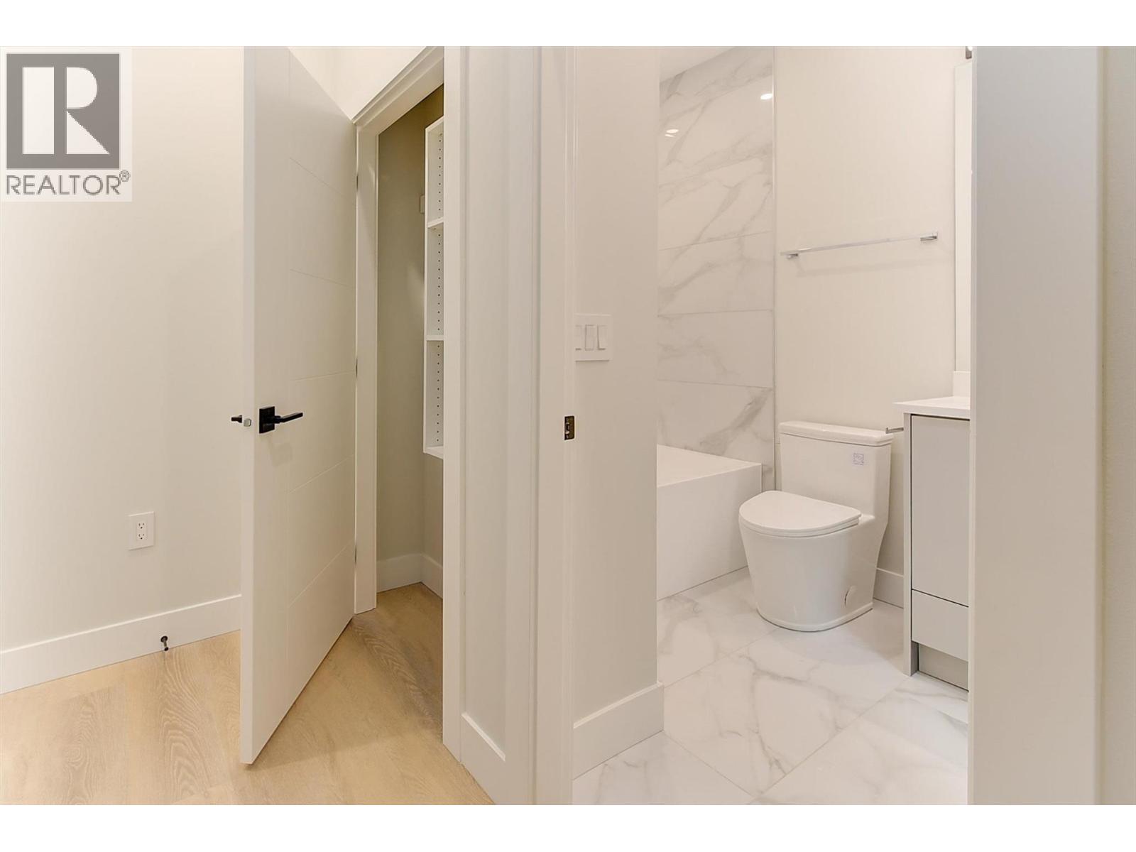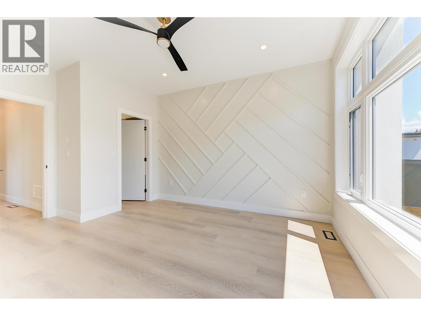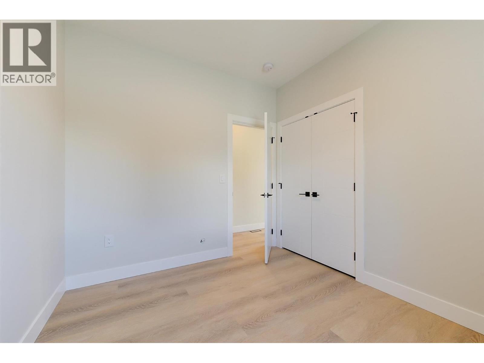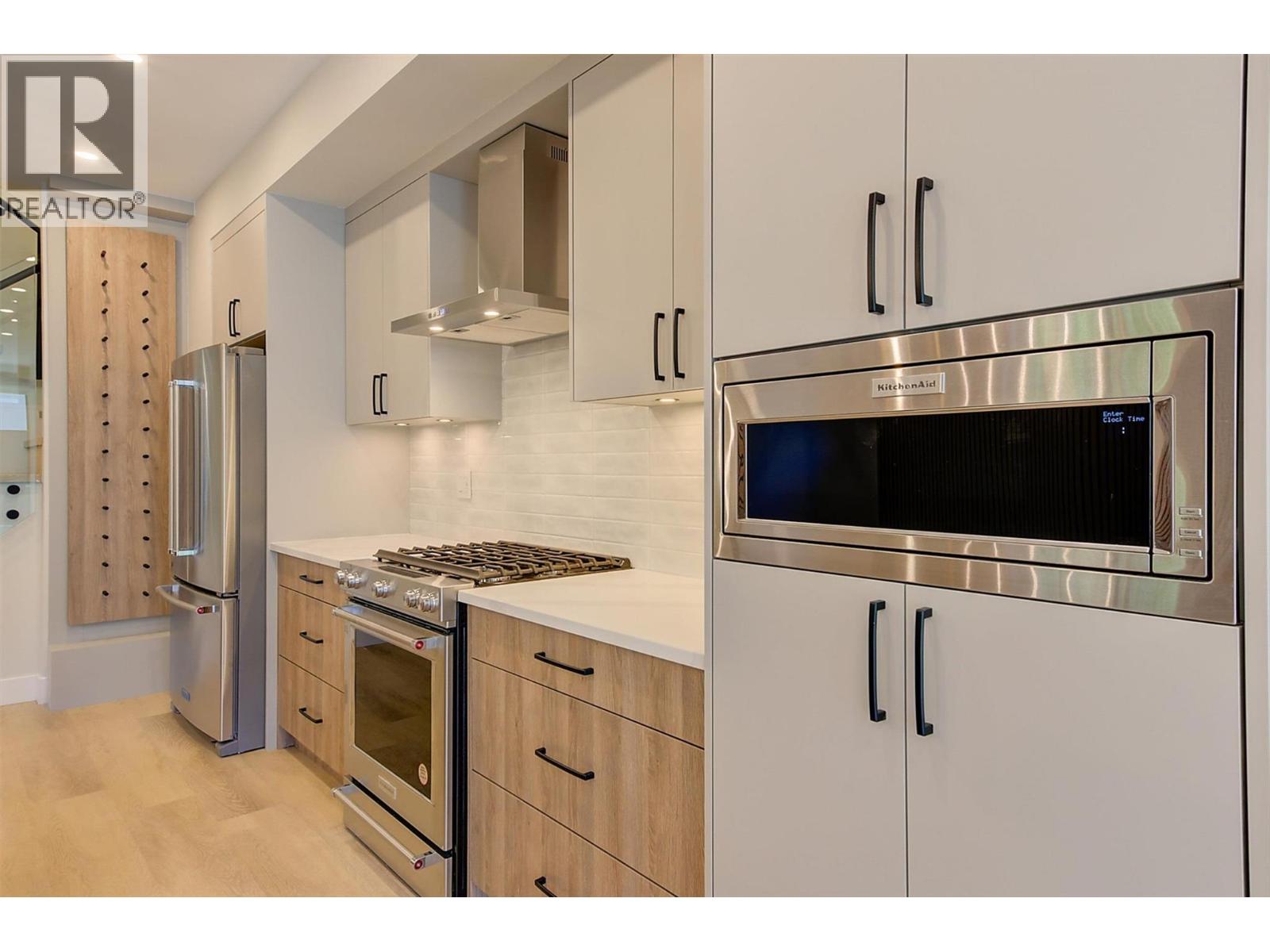 **Discover Luxury Downtown Living** Step into this custom-built, North-facing townhome, offering 3 bedrooms, 2.5 bathrooms, and two stories of exquisite design. Topped with a rooftop patio prepped for a hot tub, this home invites you to embrace the Okanagan’s signature outdoor lifestyle. Every detail has been carefully curated to exude sophistication. Expansive windows fill the space with natural light, complementing the modern exterior of concrete and wood finishes. Inside, the chef-inspired kitchen stands out with a large island, stainless steel appliances, quartz countertops, and a custom backsplash framing the gas stove and 28-inch hood range fan. Throughout the home, premium flooring, a built-in fireplace, and contemporary light fixtures enhance the luxurious ambiance. The primary suite features a spa-like ensuite with a double vanity and a sleek walk-in shower. A large crawl space on the main floor offers ample storage, while the private yard with a covered patio creates your personal oasis. Completing the home is a covered single-car garage with rough-in for an EV charging station, blending convenience with modern living. This townhome isn’t just a residence—it’s a statement of style, comfort, and urban sophistication. Make it yours and elevate your lifestyle today. (id:62999)