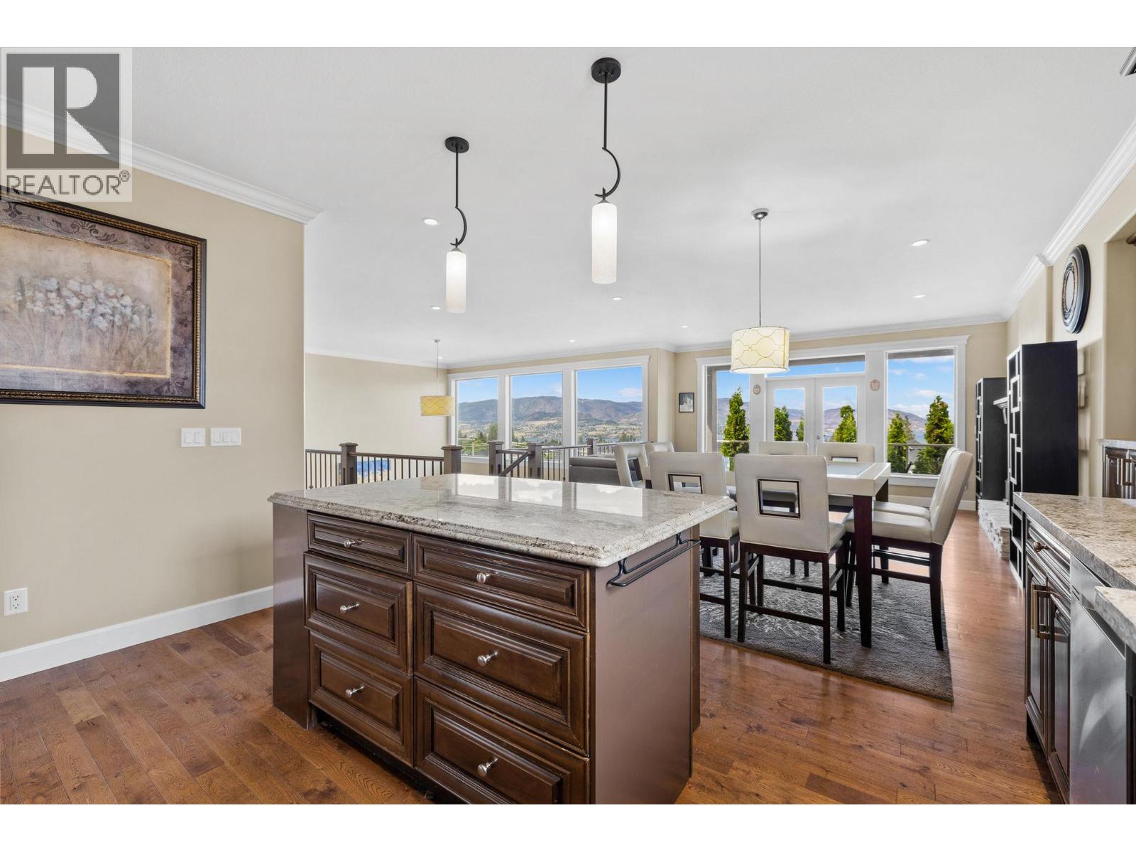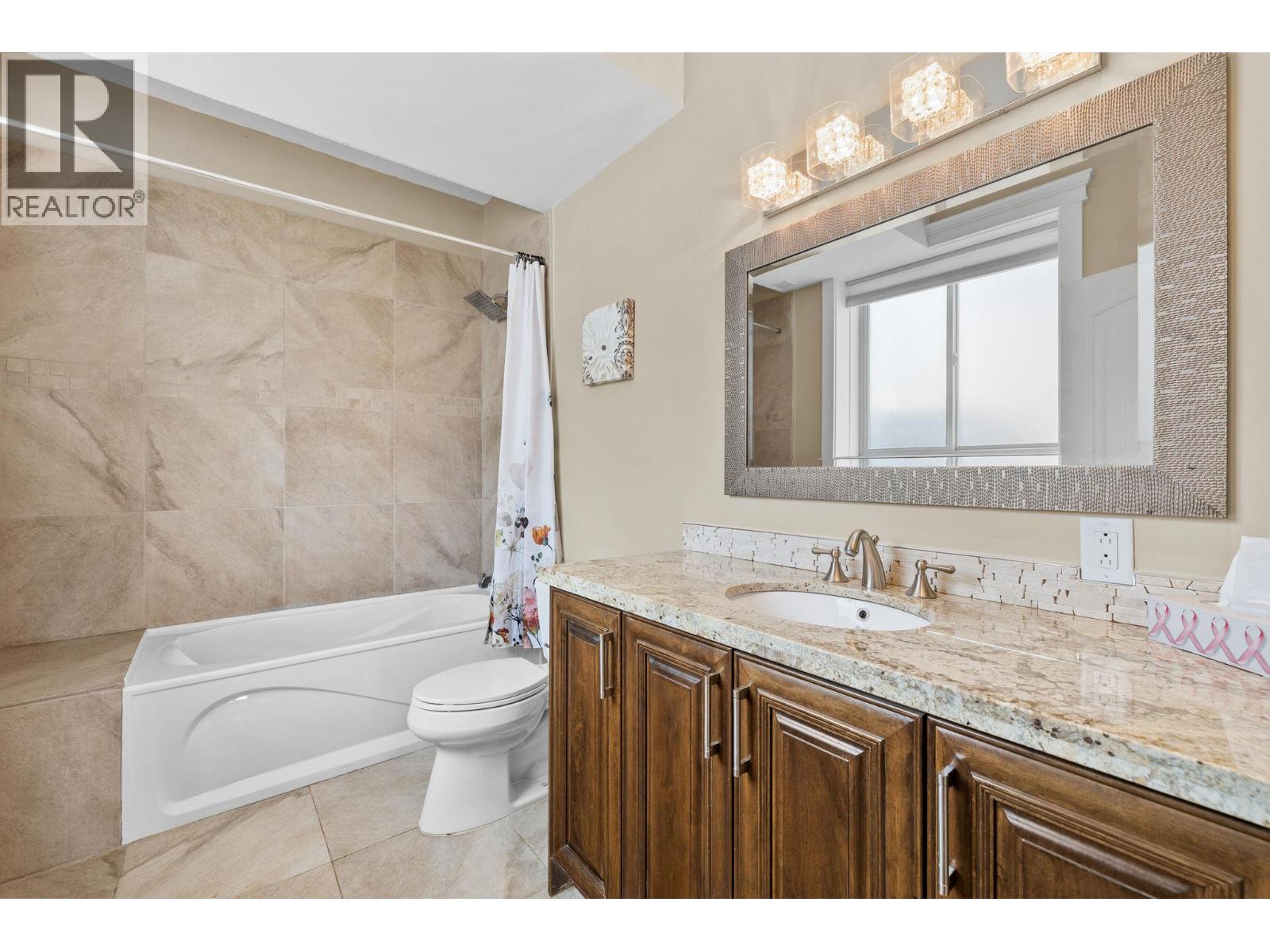 Priced to sell. This beautiful 4-bed, 3.5-bath home with an office and newly added theatre room is priced as one of the lowest in the area offering incredible value, it showcases breathtaking views of the Okanagan’s cityscape, mountains, and lake. Designed for both comfort and style, the modern kitchen features granite countertops, stainless steel appliances, and a large island perfect for gatherings. The open-concept layout flows seamlessly through the dining area to a covered patio—ideal for year-round entertaining. The spacious primary master retreat includes a private deck, walk-through closet, and luxurious ensuite with steam shower and jetted tub. The lower level adds versatility with three bedrooms, including a private guest suite with its own ensuite and separate entrance—providing excellent suite potential for extended family or rental income. The theatre room offers even more flexibility for entertainment, a gym, or office space. Pride of ownership is evident throughout, with the hot water tank, furnace, and yard all professionally maintained. Outside, enjoy two decks, a pergola-covered patio, and meticulously landscaped gardens. A rare combination of location, condition, and unmatched value—this home truly won’t last. (id:62999)