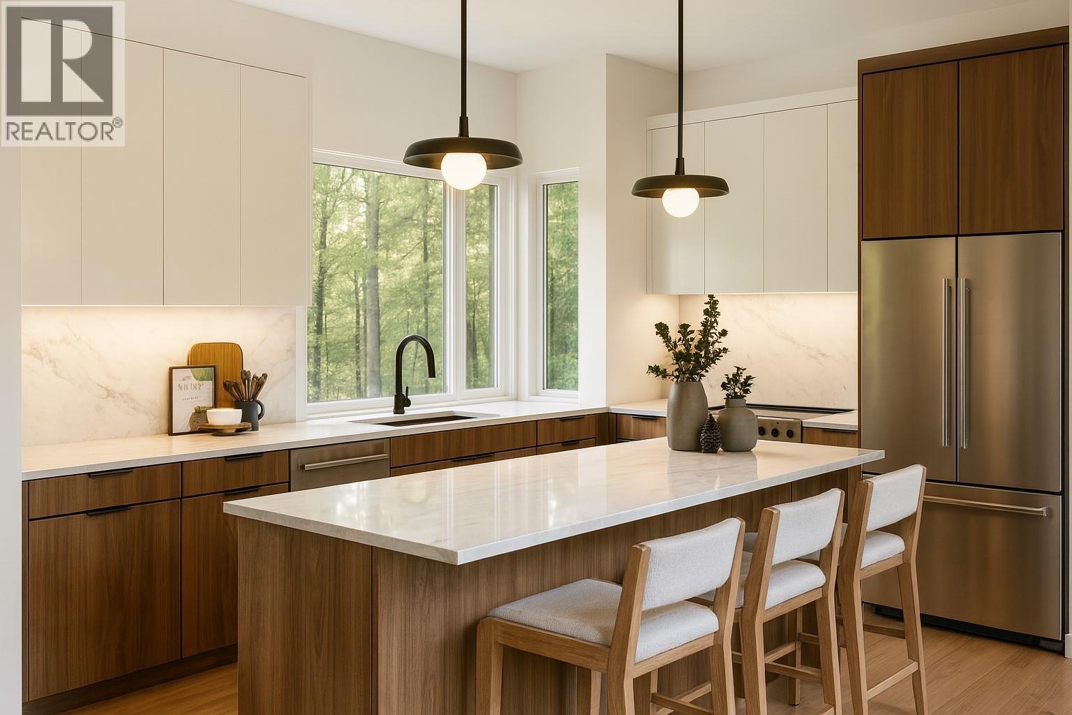 Welcome to Juniper Grove at McKinley Beach, single-family homes surrounding Arrowroot Pond in the Hilltown neighborhood. Lot 9 is a thoughtfully designed 3-bedroom plus den, 4-bath residence highlighted by two primary bedrooms, each with its own ensuite, creating an ideal layout for multi-generational living, hosting guests, or offering additional privacy and flexibility for today’s lifestyle. The open-concept design features a modern kitchen, a welcoming fireplace, and a wrap-around deck with views of the natural surroundings. With ample parking and stylish mid-century modern finishes, the home combines everyday functionality with contemporary elegance. Juniper Grove offers the best of the McKinley Beach lifestyle, with easy access to trails, playgrounds, and the beach, along with the nearby amenity centre featuring a pool, hot tub, gym, and yoga room. The neighborhood is connected, family-friendly, and designed for both relaxation and recreation, while still being just minutes from Kelowna International Airport, UBCO, and downtown Kelowna. Move-in is scheduled for January/February 2026, making this an exceptional opportunity to own in one of Kelowna’s most sought-after lakefront communities. (id:62999)
