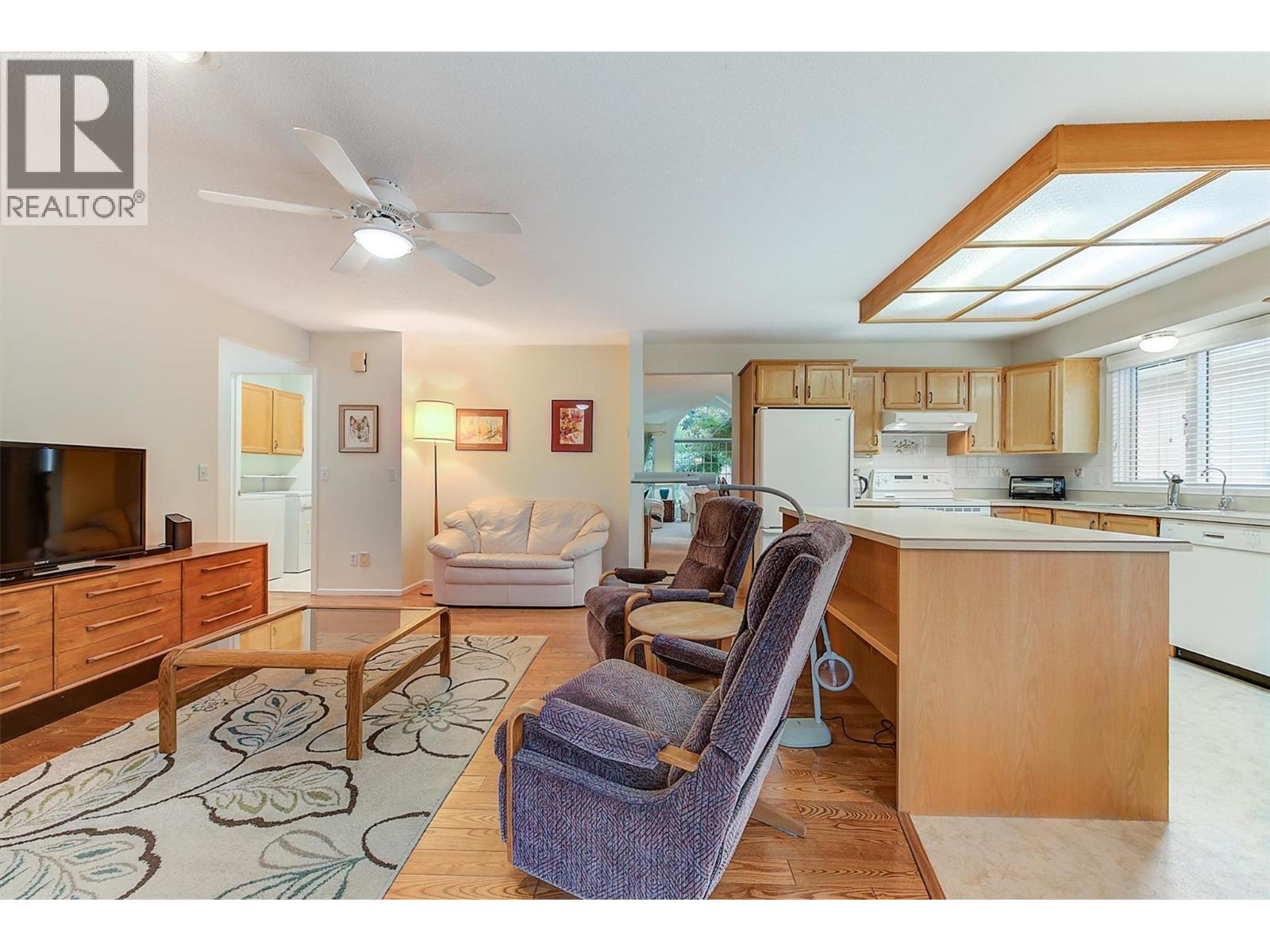 Welcome to Sandstone, one of Kelowna’s most sought-after 55+ gated communities. Ideally located close to shopping, parks and downtown Kelowna, Sandstone is known for its beautifully maintained grounds and outstanding amenities, including both an indoor and outdoor pool, hot tub, fitness room and clubhouse. This detached townhome offers over 1,500 sq. ft. of single level living with 2 bedrooms and 2 bathrooms. The spacious island kitchen opens to a cozy family room. As an added space to enjoy, the fully enclosed patio overlooks a serene waterscape with lush landscaping—one of the most desirable settings in the community. Important updates provide added peace of mind: the furnace was replaced in 2016, Poly-B plumbing has been upgraded to PEX, the hot water tank was replaced in 2022. Enjoy comfort, convenience, and an active lifestyle in this welcoming community. A rare opportunity to own a detached home in Sandstone—move in and enjoy everything this premier location has to offer. (id:62999)
