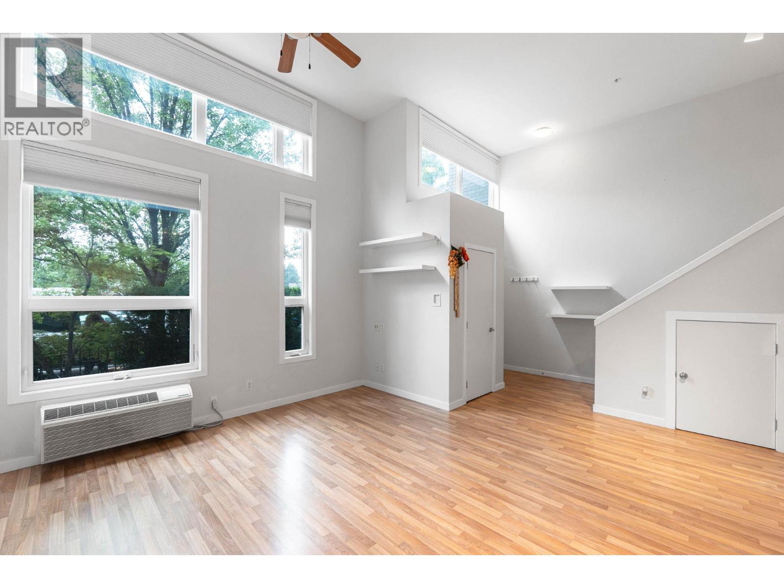 Loft-Style Living ( 1 BED PLUS DEN WITH MURPHY BED ) in the Heart of the Landmark District! Rarely available, this unique 2-storey loft at The Mode offers a blend of urban style and modern comfort—complete with a HUGE gated patio for outdoor living or a private street-level entrance. Inside, you'll find soaring ceilings in the main living area, an open-concept layout, and oversized windows that flood the space with natural light. The upper level features a spacious primary suite, a private den with built-in Murphy bed (ideal for guests or a home office), and a loft area perfect for a TV room, office nook, or cozy family space. Enjoy dual access via your private patio or the building's interior second-floor entrance (with elevator). This energy-efficient building features thermal heat pumps, solar-powered hot water, and low-E windows for year-round comfort and savings. Located in Kelowna’s vibrant Landmark District—just steps to restaurants, cafes, shops, the Farmer’s Market, and the Landmark tech towers. Only minutes to downtown Kelowna! (id:62999)