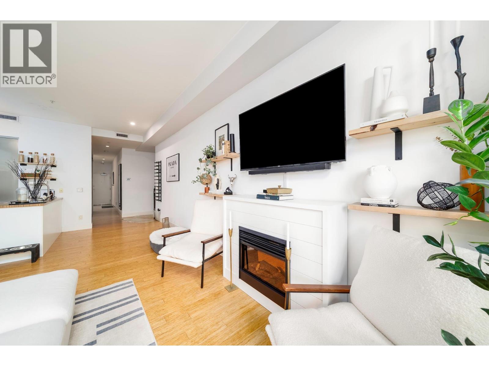 Located in the heart of Kelowna’s Cultural District, this 1-bedroom plus den home at Cannery Lofts combines modern design with exceptional outdoor space. The open layout features 9’ ceilings, light bamboo floors, and floor-to-ceiling windows that fill the space with natural light. A full glass wall opens to a private 18’x16’ deck—ideal for morning coffee or shaded evening gatherings. Contemporary finishes and a cozy fireplace add warmth and style, while residents can also enjoy the rooftop patio with lake views. From the beach to Prospera Place and Kelowna’s best dining, everything downtown offers is just steps away. Available for quick possession. Telus fibre optic installed. Parking stall #35. Square footage is taken from the strata plan. Pets allowed with Restrictions: 1 dog (Breed Restrictions) 30"" at shoulder or 2 cats, or 2 dogs with a combined shoulder height of 30"". Updated furnace in the last 3-4 years. (id:62999)