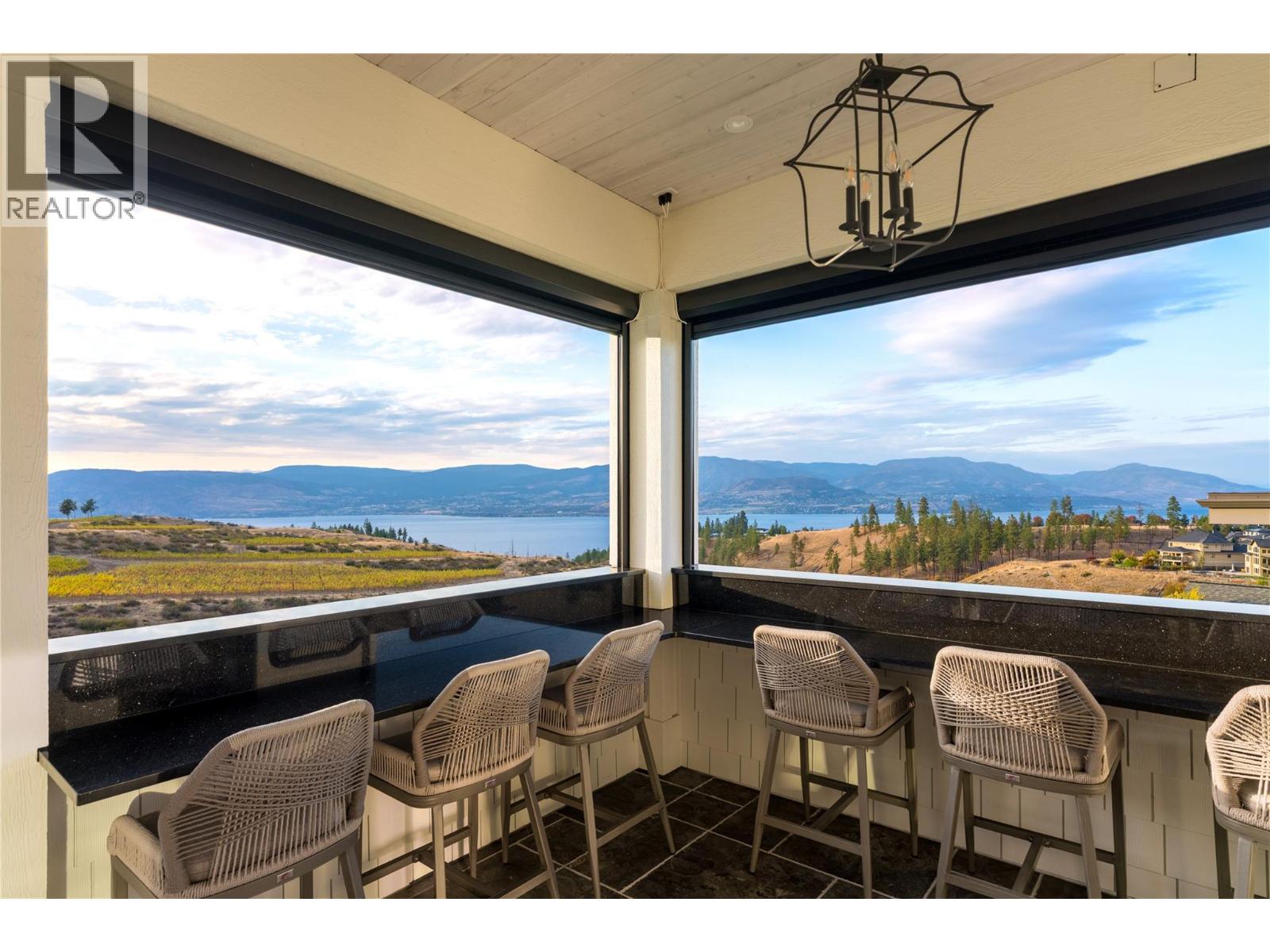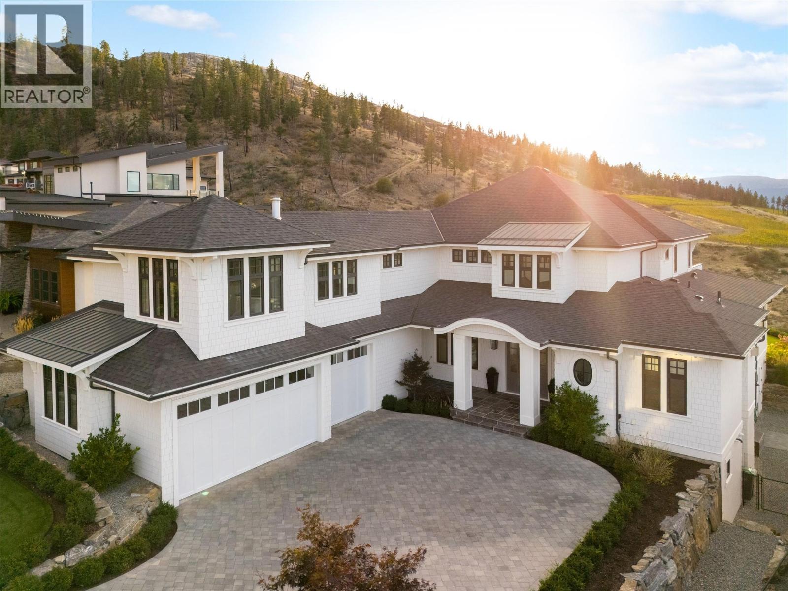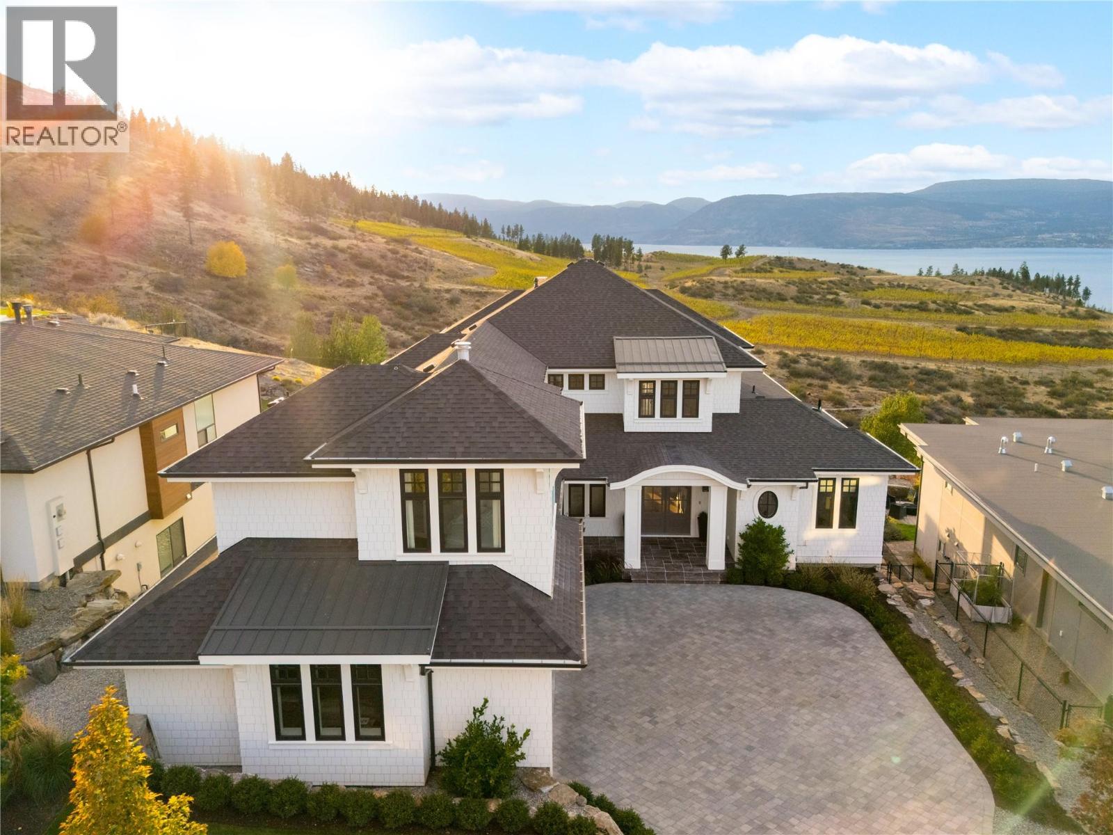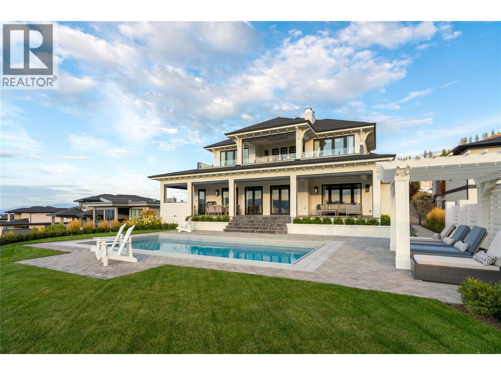 Where timeless Cape Cod character meets Tuscan warmth. This remarkable Kettle Valley family estate blends architectural elegance with exceptional comfort. Every element has been thoughtfully designed—Hardie shingle exterior, whitewashed soffits, stone patios, and manicured landscaping that frames a 16’x32’ resort-style saltwater pool with electronic retractable cover. Inside, nearly 6,500 sq. ft. of refined living space flows across three levels, each crafted to capture natural light and panoramic lake, mountain, and vineyard views. Wide-plank hardwood, shiplap detailing, and architectural beams create an inviting, coastal-inspired atmosphere. The kitchen is a centerpiece for gathering, featuring a Wolf range, Sub-Zero fridge/freezer, Broan hood fan, Miele appliances, and a spacious butler’s pantry with built-in coffee station. The great room opens seamlessly to the covered patio with Phantom screens, heaters, and multiple entertaining zones. The breathtaking primary suite offers a spa-like ensuite and private sanctuary featuring incredible lakeviews. Upstairs, two additional bedrooms connected by a Jack & Jill bath provide comfort and connection for family or guests. A private, self-contained guest or in-law suite provides flexibility for extended family. The lower level adds a home theatre, recreation and fitness room, a pool change area & a dedicated space ideal for a future sauna—combining thoughtful design and craftsmanship for a truly special place to call home. (id:62999)