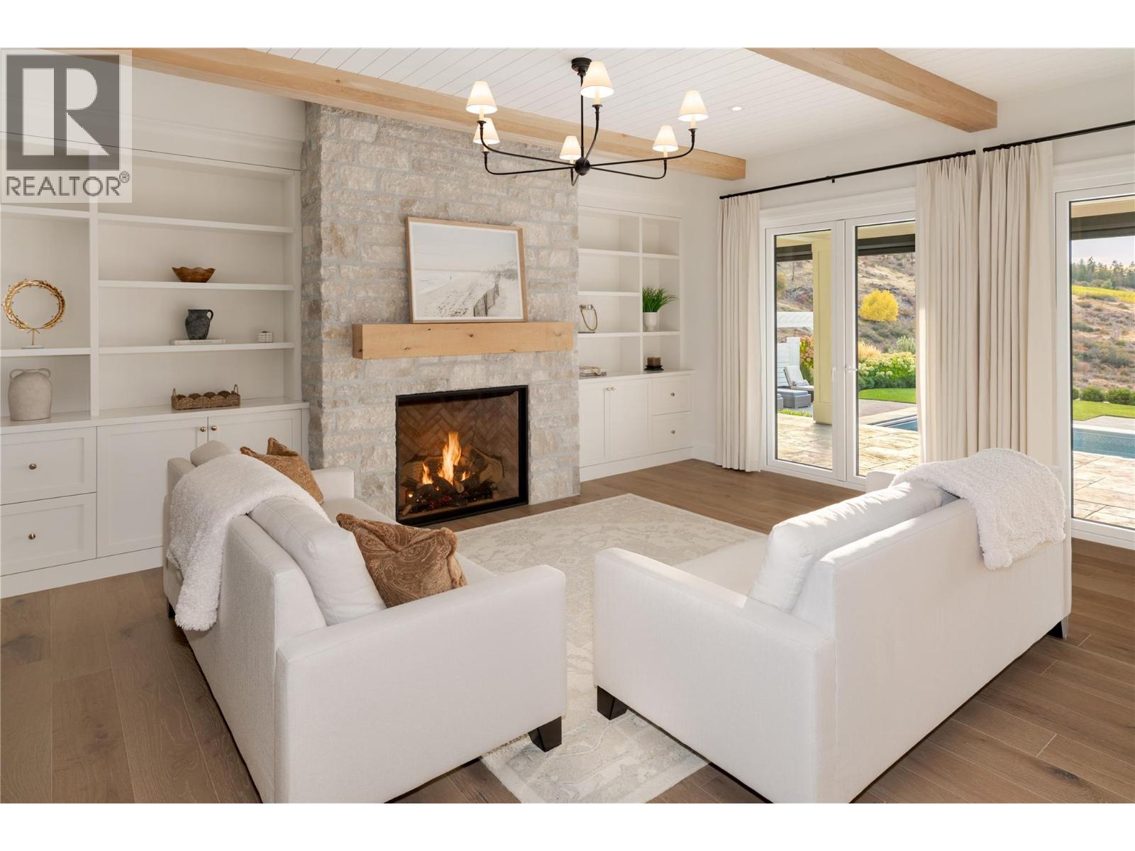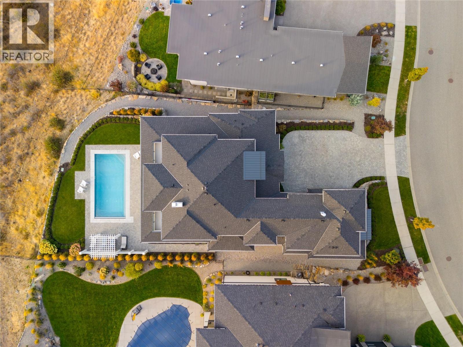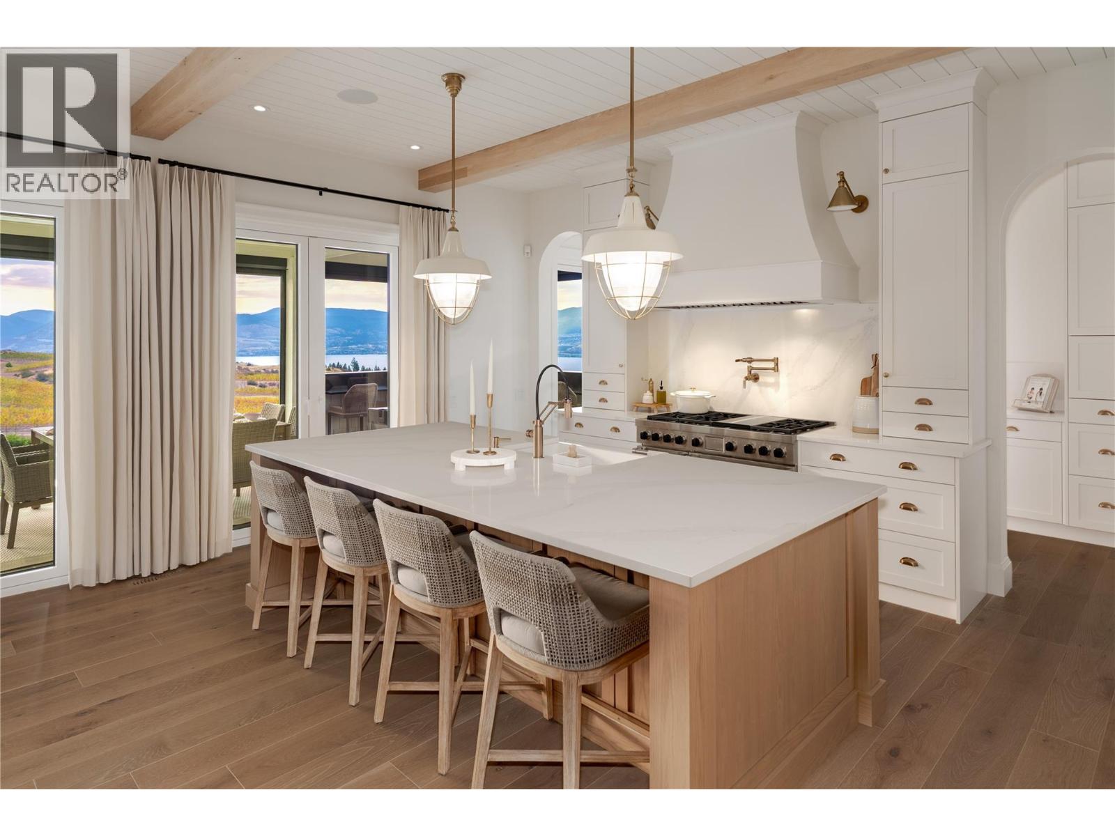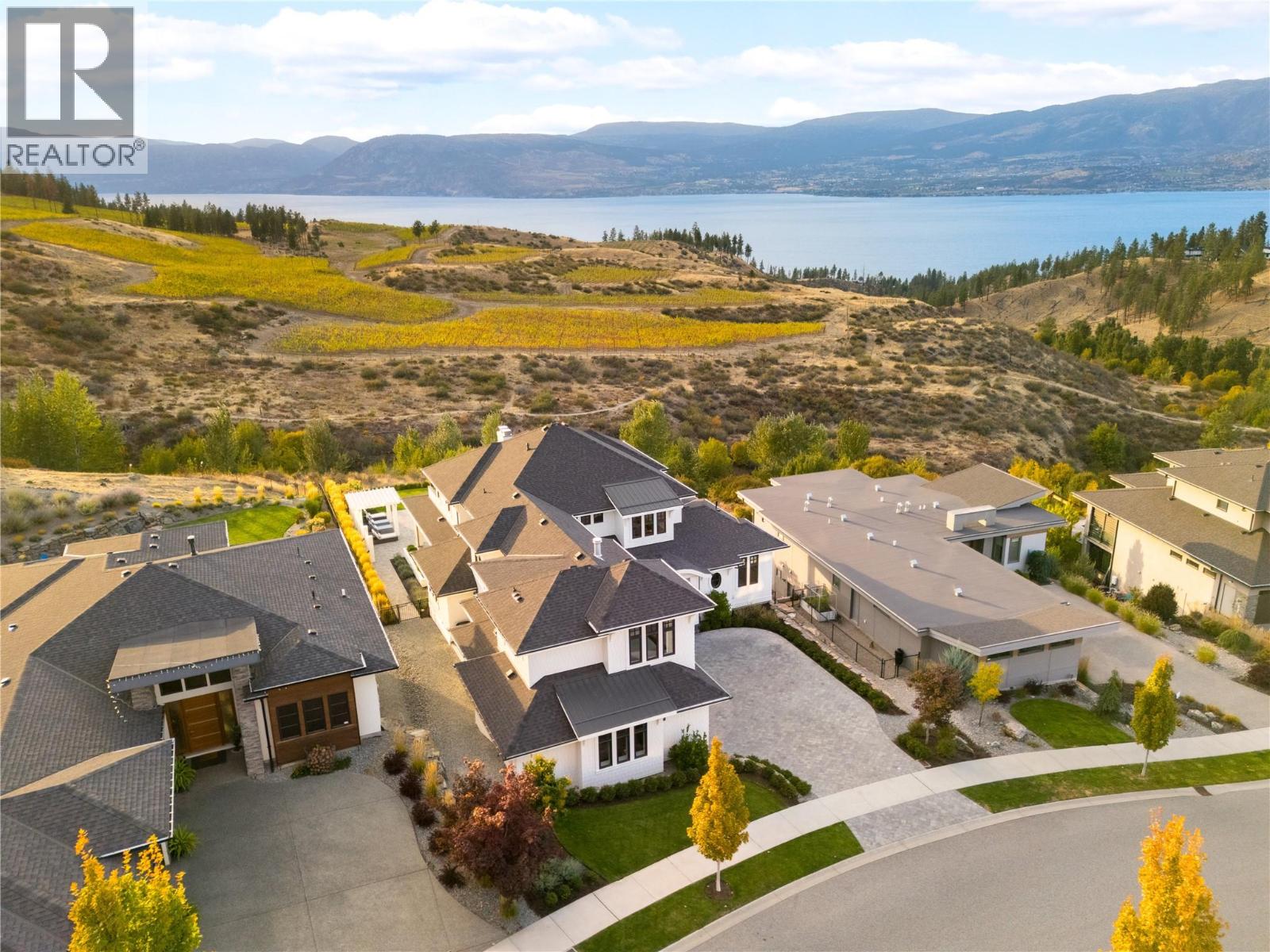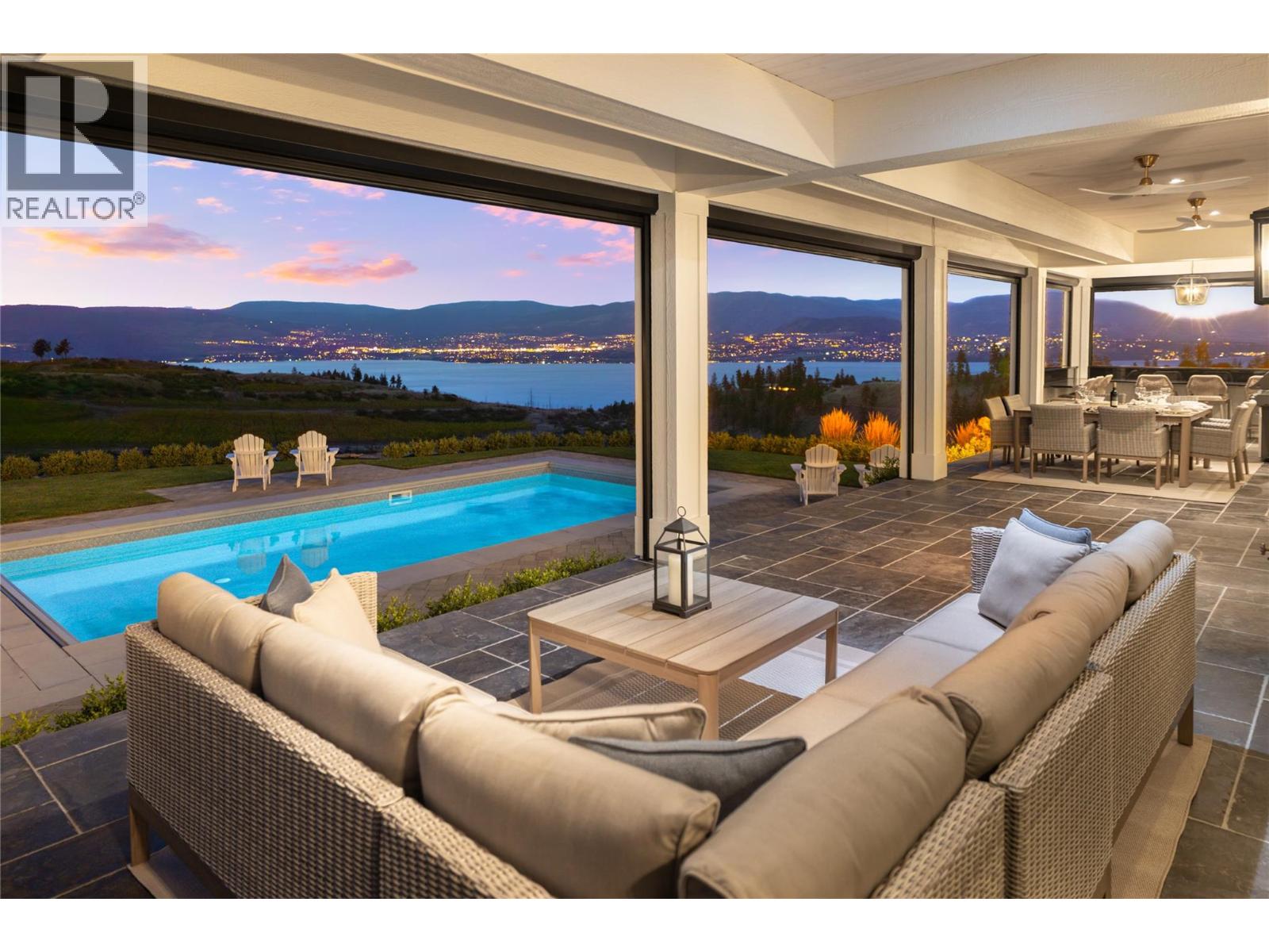 Where timeless Cape Cod character meets Tuscan warmth. This remarkable Kettle Valley family estate blends architectural elegance with exceptional comfort. Every element has been thoughtfully designed—Hardie shingle exterior, whitewashed soffits, stone patios, and manicured landscaping that frames a 16’x32’ resort-style saltwater pool with electronic retractable cover. Inside, nearly 6,500 sq. ft. of refined living space flows across three levels, each crafted to capture natural light and panoramic lake, mountain, and vineyard views. Wide-plank hardwood, shiplap detailing, and architectural beams create an inviting, coastal-inspired atmosphere. The kitchen is a centerpiece for gathering, featuring a Wolf range, Sub-Zero fridge/freezer, Broan hood fan, Miele appliances, and a spacious butler’s pantry with built-in coffee station. The great room opens seamlessly to the covered patio with Phantom screens, heaters, and multiple entertaining zones. The breathtaking primary suite offers a spa-like ensuite and private sanctuary featuring incredible lakeviews. Upstairs, two additional bedrooms connected by a Jack & Jill bath provide comfort and connection for family or guests. A private, self-contained guest or in-law suite provides flexibility for extended family. The lower level adds a home theatre, recreation and fitness room, a pool change area & a dedicated space ideal for a future sauna—combining thoughtful design and craftsmanship for a truly special place to call home. (id:62999)