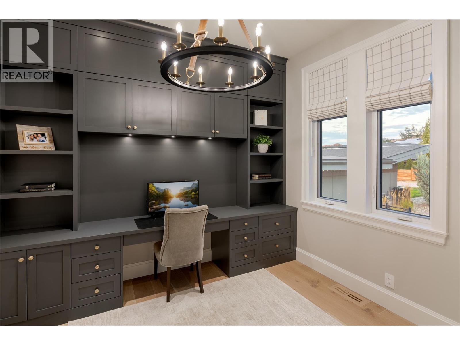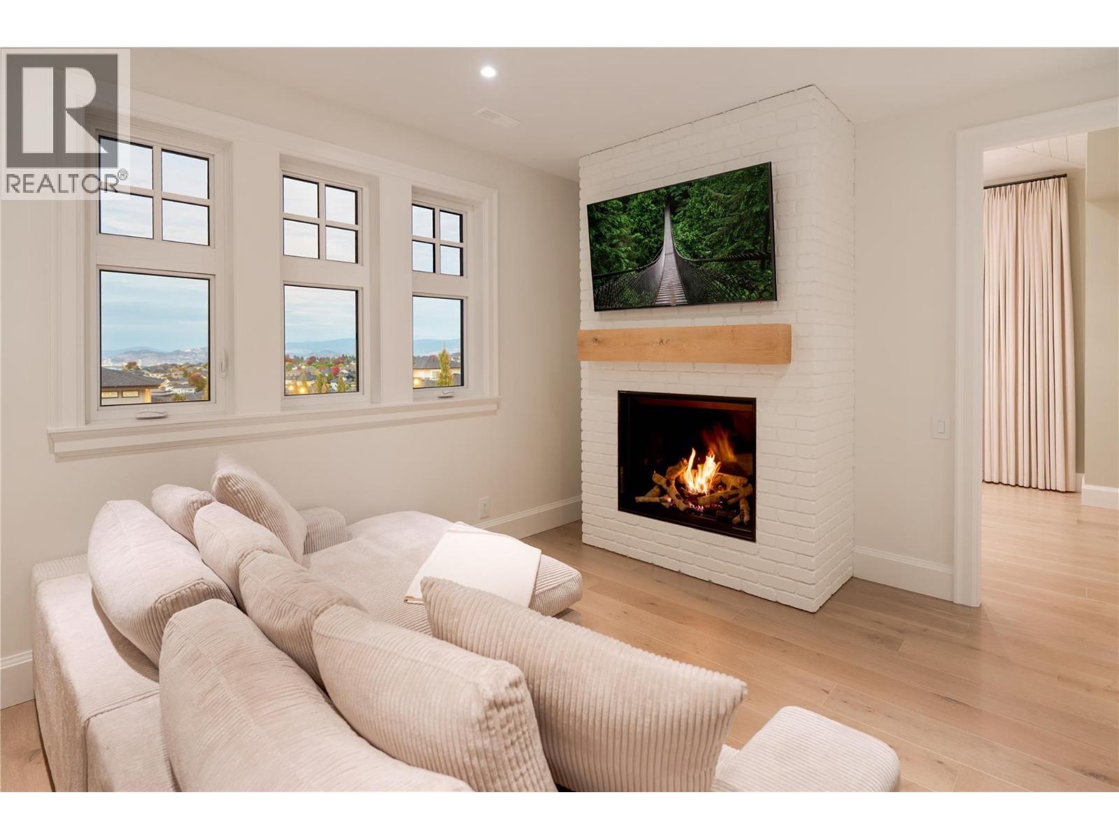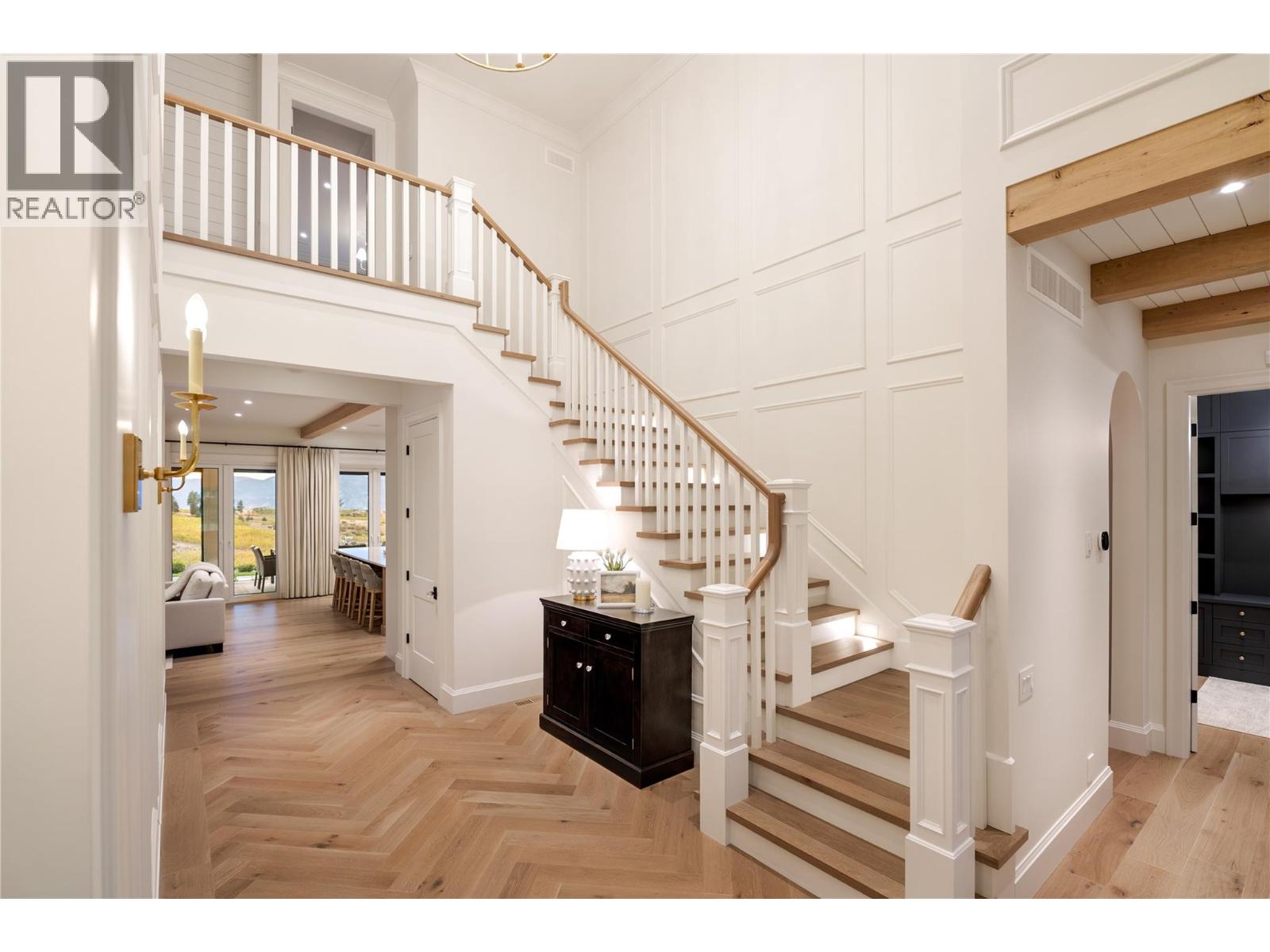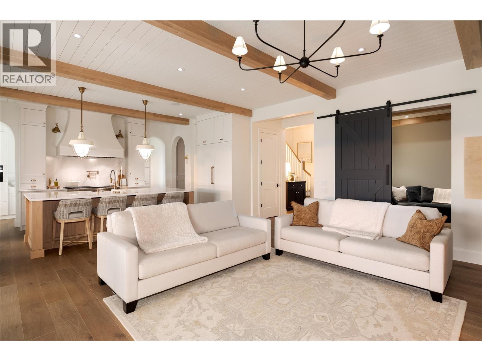 Where timeless Cape Cod character meets Tuscan warmth. This remarkable Kettle Valley family estate blends architectural elegance with exceptional comfort. Every element has been thoughtfully designed—Hardie shingle exterior, whitewashed soffits, stone patios, and manicured landscaping that frames a 16’x32’ resort-style saltwater pool with electronic retractable cover. Inside, nearly 6,500 sq. ft. of refined living space flows across three levels, each crafted to capture natural light and panoramic lake, mountain, and vineyard views. Wide-plank hardwood, shiplap detailing, and architectural beams create an inviting, coastal-inspired atmosphere. The kitchen is a centerpiece for gathering, featuring a Wolf range, Sub-Zero fridge/freezer, Broan hood fan, Miele appliances, and a spacious butler’s pantry with built-in coffee station. The great room opens seamlessly to the covered patio with Phantom screens, heaters, and multiple entertaining zones. The breathtaking primary suite offers a spa-like ensuite and private sanctuary featuring incredible lakeviews. Upstairs, two additional bedrooms connected by a Jack & Jill bath provide comfort and connection for family or guests. A private, self-contained guest or in-law suite provides flexibility for extended family. The lower level adds a home theatre, recreation and fitness room, a pool change area & a dedicated space ideal for a future sauna—combining thoughtful design and craftsmanship for a truly special place to call home. (id:62999)
