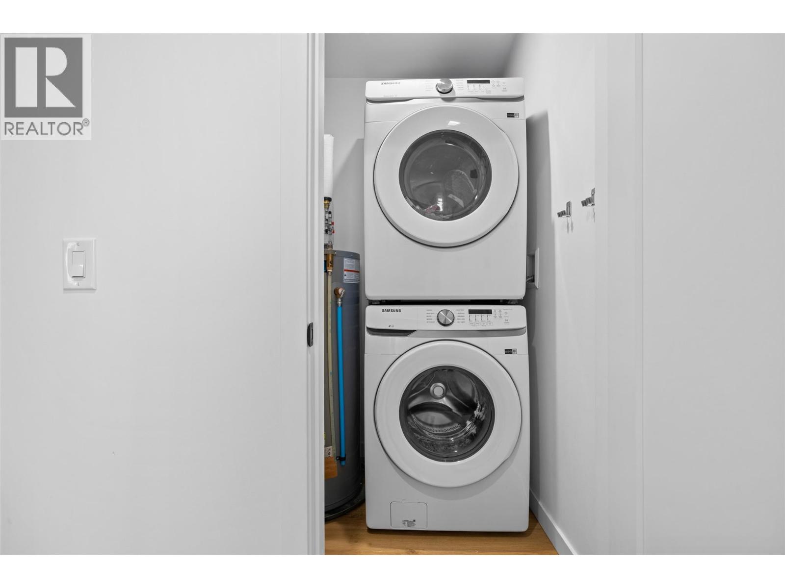 Modern Downtown Living with Views, Parking, and Smart Home Comfort. Welcome to Unit 405 at 660 Cawston Avenue, a bright and contemporary 1-bedroom, 1-bath condo offering 655 sq. ft. of stylish interior space and a 113 sq. ft. south-facing balcony with sweeping mountain views. Built in 2022, this 4th-floor home blends modern design with quality finishes throughout - from quartz countertops and hardwood-style flooring to stainless steel appliances and 9-foot ceilings that enhance the open, airy feel. The sleek kitchen features a large island that flows effortlessly into the living area - perfect for entertaining or unwinding at the end of the day. Enjoy year-round comfort with smart home climate control and in-suite laundry for everyday convenience. Included are secure underground parking, a private storage locker, and access to visitor parking for guests. Ideally located in the heart of downtown Kelowna, you’re just steps from the waterfront, Knox Mountain, cafés, restaurants, and the vibrant cultural district. Whether you’re a homeowner looking for a low-maintenance urban lifestyle or an investor seeking a desirable rental property, this home delivers the best of modern downtown living. (id:62999)