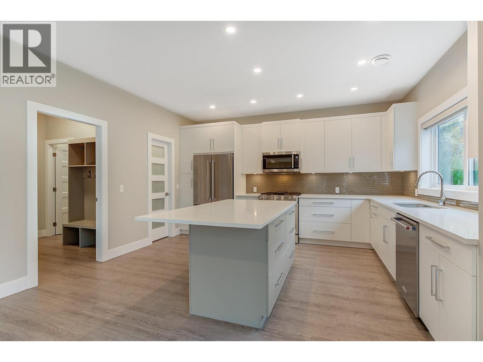 This stunning 2-storey, grade-level entry home is in the highly desirable University Heights community. Just a 10-minute walk to Aberdeen Hall and 15 minutes to UBC Okanagan, it offers the perfect balance of proximity to educational institutions and easy access to the airport. Ideal for professionals or families, this home combines luxury, comfort, and convenience. The main floor features a custom-designed kitchen with a large central island, abundant cabinets, and a spacious walk-in pantry. The adjoining dining area comfortably accommodates a full-size table, perfect for gatherings. The elegant living room boasts a floor-to-ceiling fireplace, adding warmth and charm to the open-concept design. A mudroom off the oversized double garage includes a walk-in closet and built-in storage. A versatile flex room, ideal as an office or guest room, and a full bathroom complete the main level. Upstairs, you will find three generously sized bedrooms and a well-appointed laundry room. The primary suite is a luxurious retreat, with a spa-like ensuite featuring a soaker tub, dual vanity, and walk-in tiled shower. A cozy sitting room off the primary bedroom is the perfect spot to relax and enjoy beautiful valley views. Custom finishes, including quartz countertops, vinyl plank flooring with cork backing, tile accents, and KitchenAid appliances, make this home truly exceptional. With its prime location and exquisite design, this is the perfect place to call home. (id:62999)