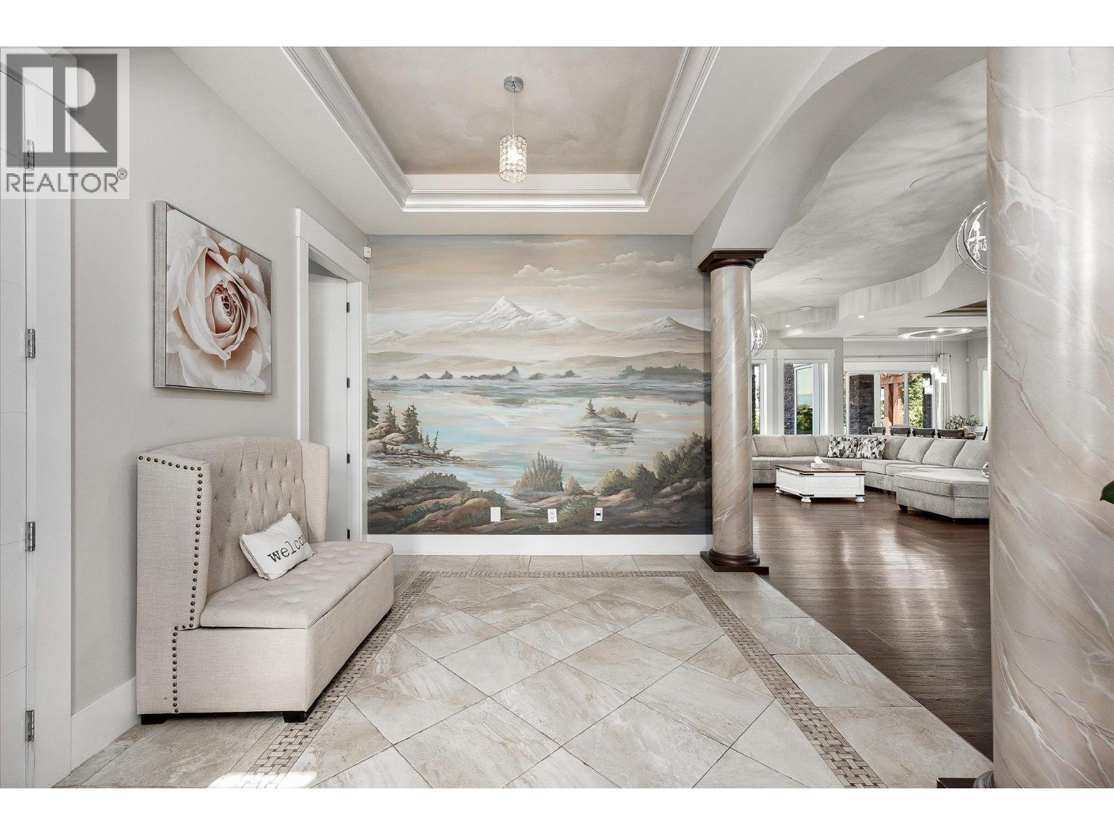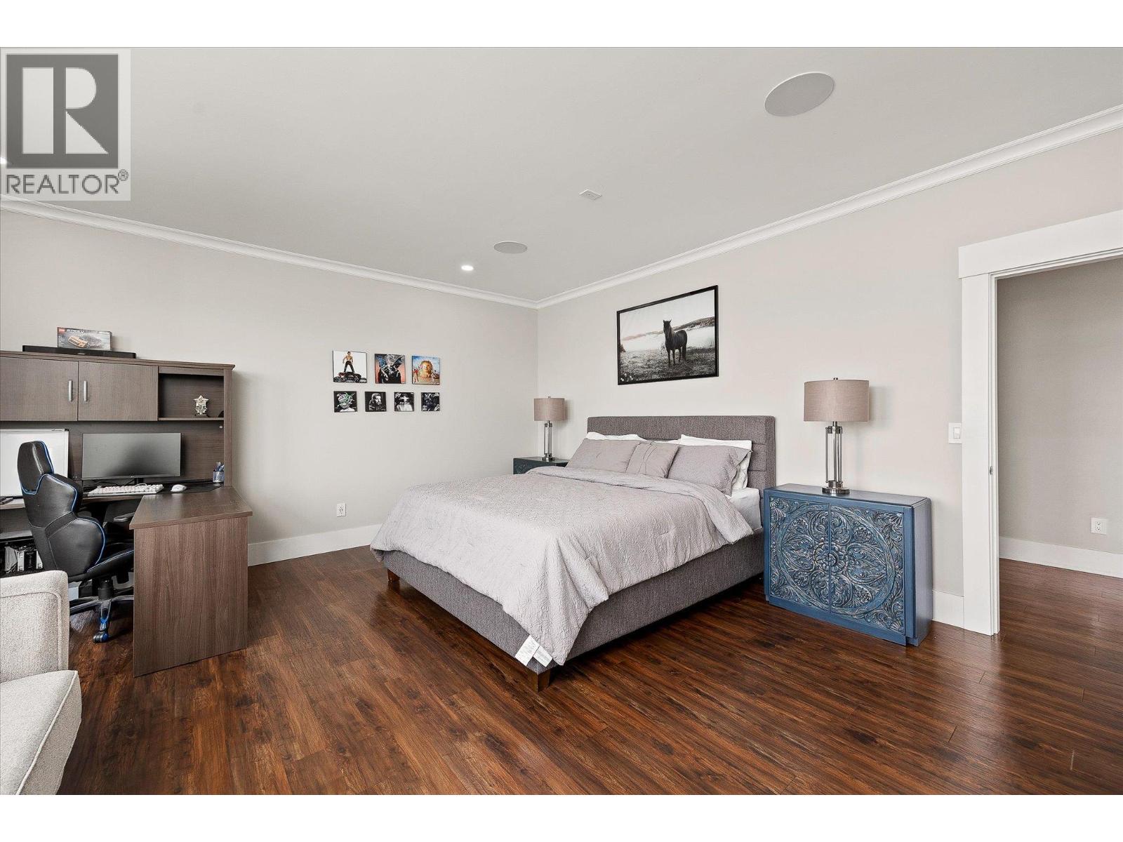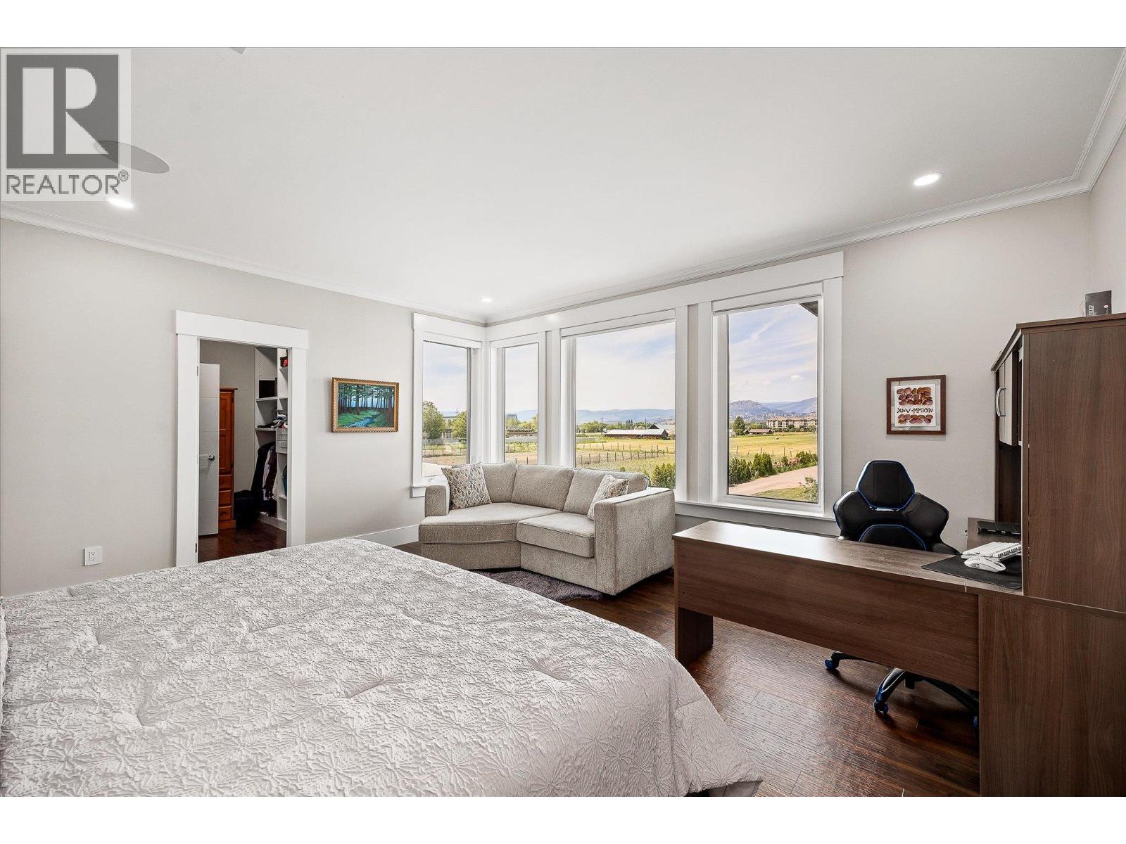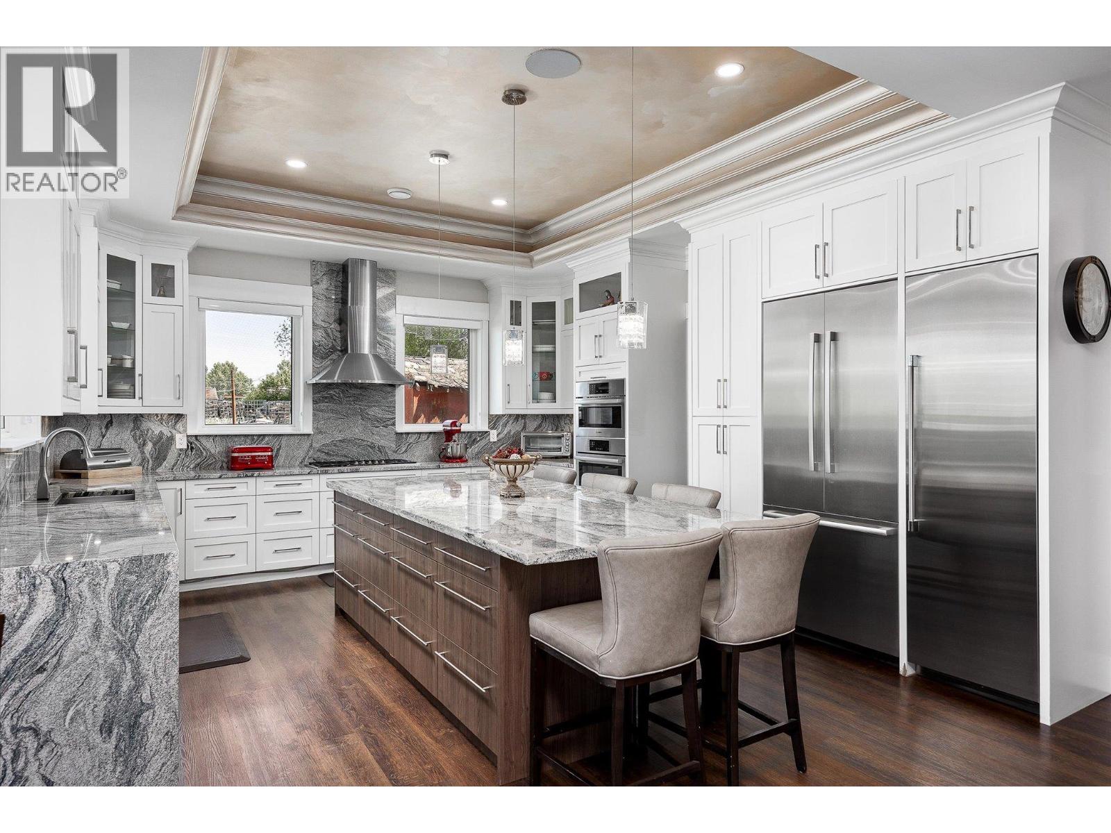 5,900 square foot 2017-built residence in Central Kelowna, offering nine bedrooms and an office/den, nine bathrooms, a three bedroom suite, and 0.95 acres of completely flat and usable land. The residence itself offers six bedrooms for the primary living space, and the three bedroom suite is rented, offering stable income towards your mortgage, or would be perfect for family, friends, or guests. There is a master on the main, as well as the layout upstairs lending itself perfectly to a large family, offering five distinct bedrooms serviced by four bathrooms. The oversized four car garage has recently been upgraded with epoxy floors. The finishes on this home are superb, with attention to detail throughout. The extensive archways, ceiling details, pillars, cabinetry, and layout all show the substantial investment that went into curating this residence. The kitchen was renovated, with the unique granite wrapping up the walls to create a fluid backsplash, and stainless steel appliances. Upstairs, the luxurious master suite features a substantial walk-in closet and a five-piece ensuite that includes extensive tile work and a raised free-standing tub. The grounds include plenty of yard space, garden space, and nearly unlimited parking for your toys, equipment, and more, and are complemented by a fire pit, gazebo area, and a large detached shed area (currently tenanted). In this location, you are minutes from Pandosy, the Lower Mission, South East Kelowna, Landmark, and more, making this a private and functional estate. (id:62999)