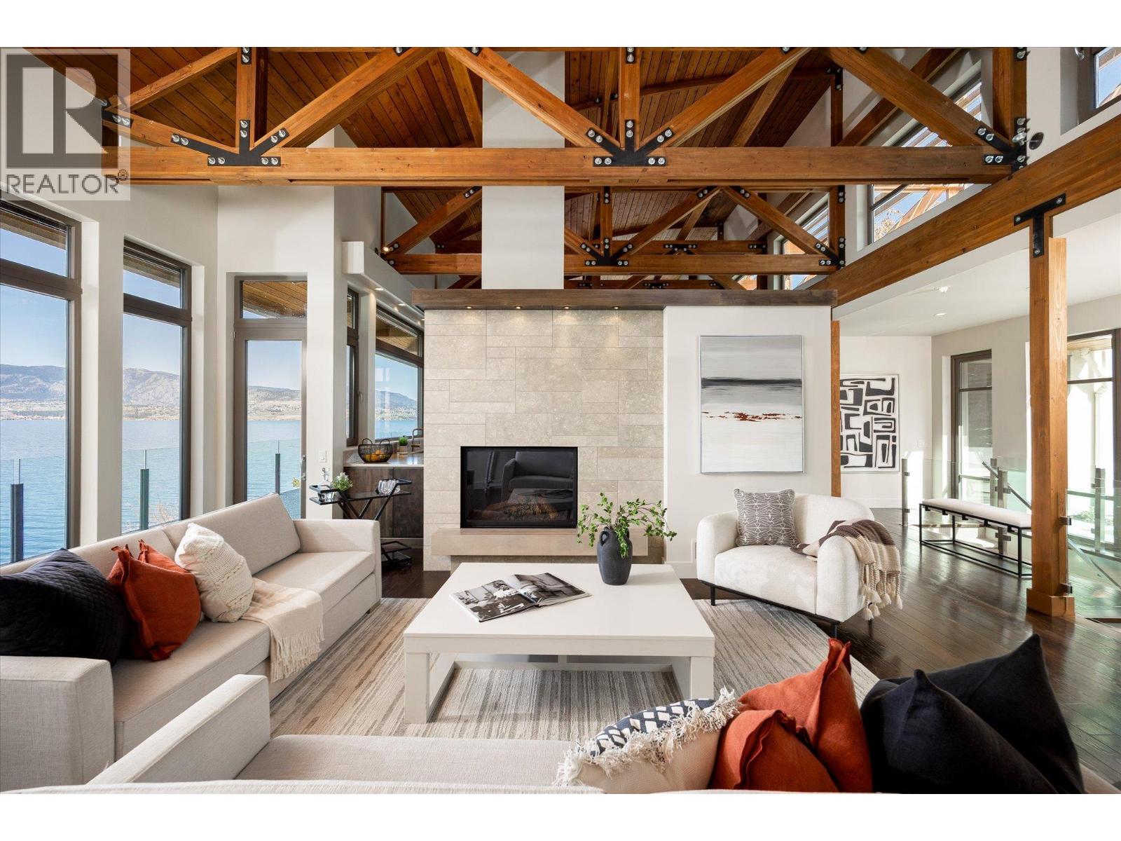 Known as Asparagus Bay, this home is built to celebrate Okanagan life. Its 1.297 acres - nurtured into an award-winning water-wise garden - offer a 5000 plus square foot house designed by Architect Robert Turik to create ideal views, a roofline that honors the surrounding hillsides, access to outdoor living spaces, sunlight exposure, & privacy. Six bedrooms & four bathrooms total! Inside, the ceiling follows curved trusses varying from 12.5 feet to 20 feet high; the main south-facing windows ensure year-round sun; European tilt windows allow for extra airflow and cross breezes; & a bank of upper windows draw in the morning light. Upstairs, the kitchen is book-ended by living spaces, the master & ensuite both provide lake views, and a one bedroom suite offers privacy to guests. Every room provides seamless access to outside, including 1100+ square feet of patio space w/ stairs to another deck below. Downstairs offers two bedrooms and one bathroom, a kitchenette, access to outdoors, storage, and another roughed-in suite with kitchen and bathroom plumbing. Outside, walk down an accessible path (the old orchard-donkey path!) to 219 feet of lakeshore frontage with beach-entrance swimming and a private 130 foot dock built in 2018, and featuring both a three tonne hoist and parking for guests. The lot is bisected by Lakeshore Road, so landscaped uplands offer additional parking, a deer-fenced garden with fruit trees and berries, space for a workshop, and long-term development/subdivision potential. Walking distance to Cedar Creek Winery, Martin's Lane, waterfront parks, & more. (id:62999)