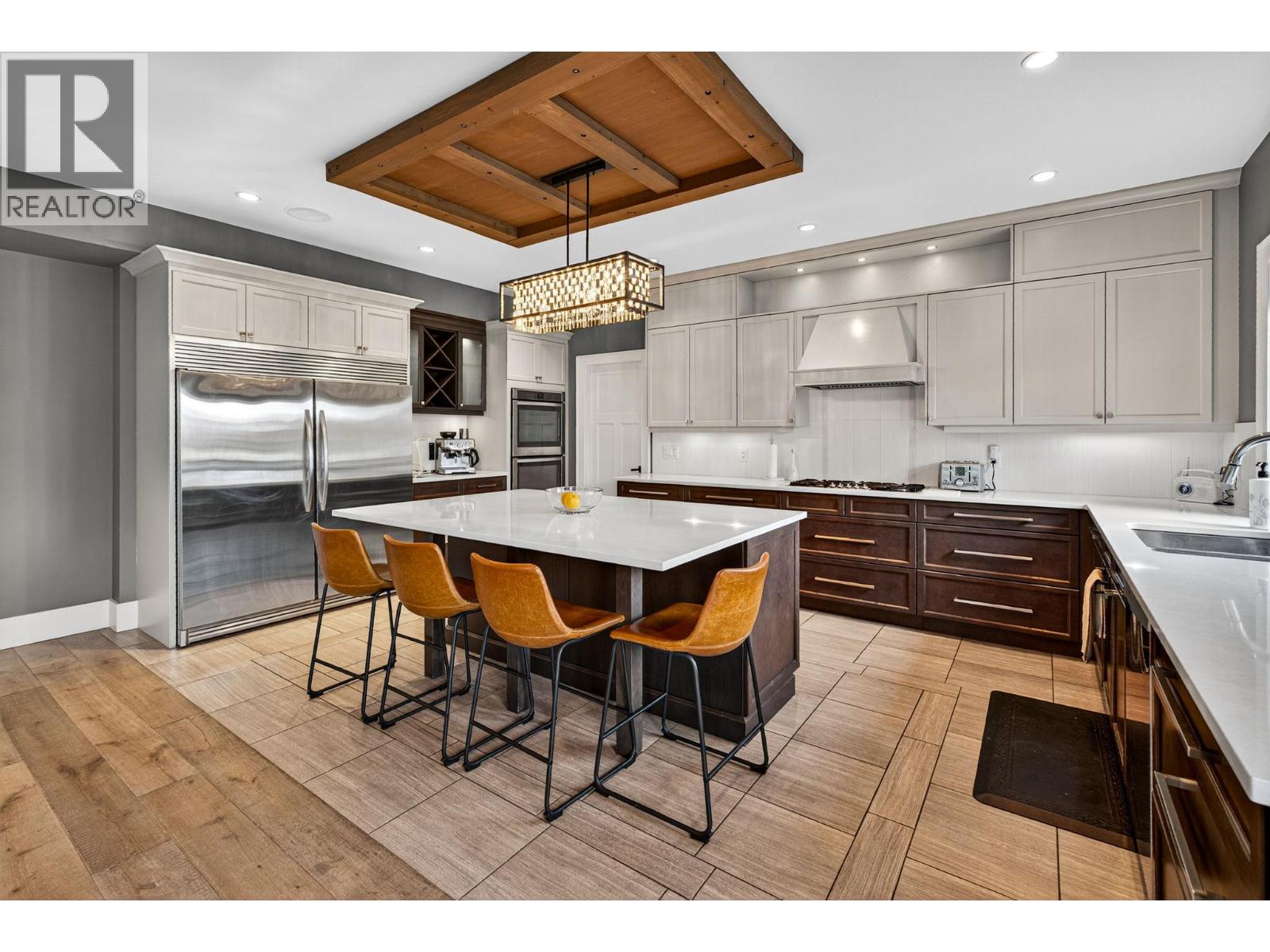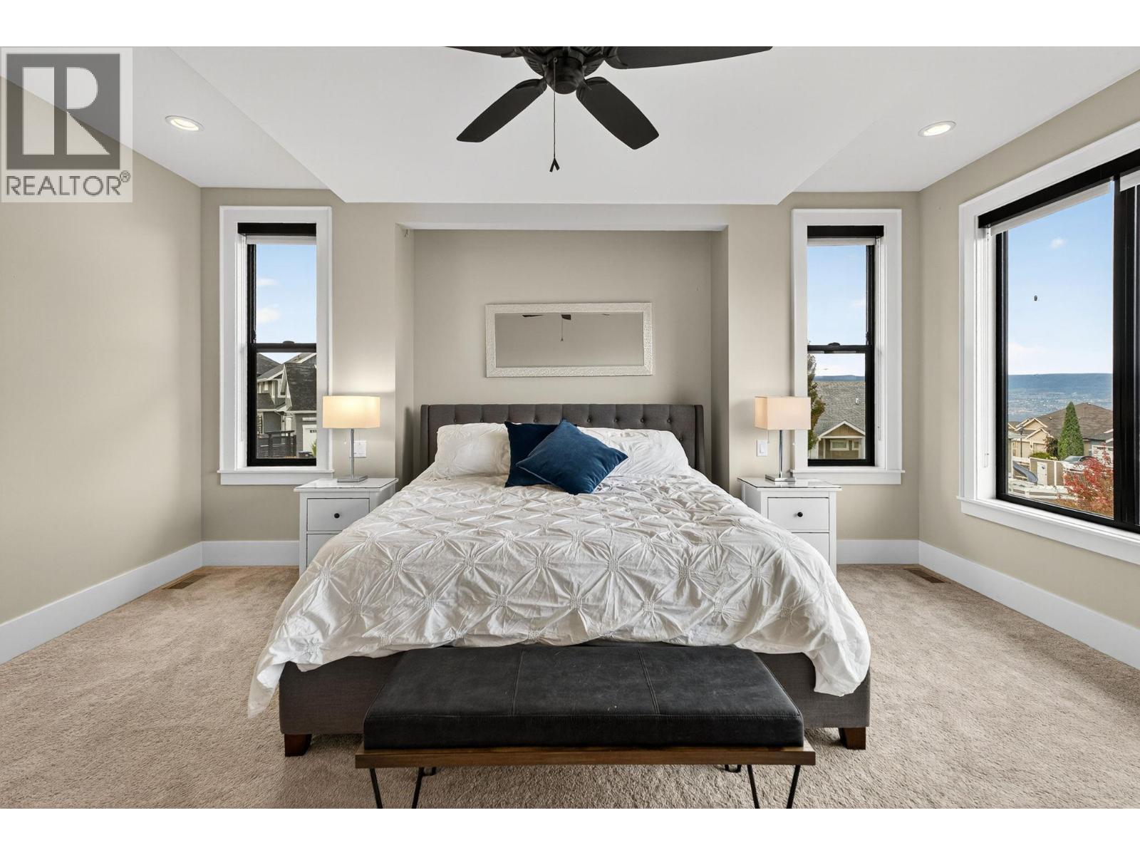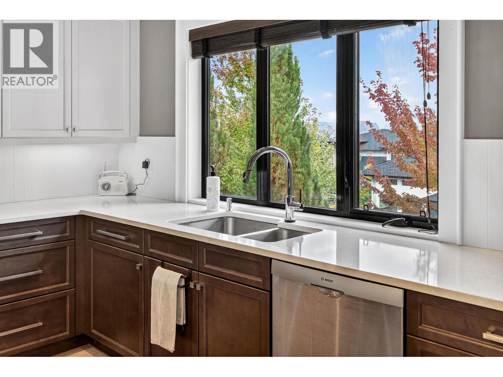 Ideally situated on a quiet, dead-end street in one of Kettle Valley’s most sought-after neighbourhoods, this exceptional residence exemplifies premium family living. Occupying a landscaped corner lot, the property features expansive lake and mountain views and is conveniently located across from walking and hiking trails. The interior offers both functionality and elegance, with a double-sided fireplace that unites the main floor living and dining areas in a welcoming atmosphere. Hardwood flooring extends throughout the main level, complemented by plush carpeting in the bedrooms. The contemporary two-tone kitchen is equipped with stainless steel appliances, a spacious walk-in pantry, and modern cabinetry for optimal utility and style. A dedicated office with a private entrance provides an opportunity for a home-based business. All measurements are approximate. The upper level boasts three well-designed bedrooms, including a primary suite with impressive lake views, a walk-in closet, and a spa-inspired ensuite. Everyday convenience is enhanced by a walk-through laundry room connected directly to the primary suite. On the lower level, a self-contained in-law suite offers versatile accommodations suitable for extended family members, older children, or guests. The heated four-car garage includes an RV hookup and ample space for a large RV or boat, catering to outdoor enthusiasts. This residence is positioned just minutes from schools, parks, shopping, and biking trails. (id:62999)