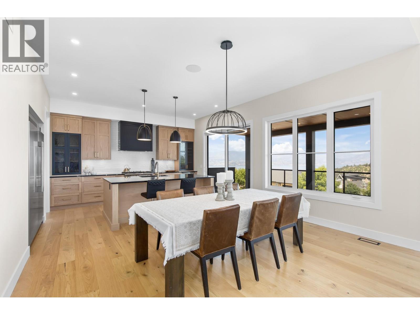 Welcome to this brand-new Scandinavian-inspired contemporary home in the Upper Mission, blending modern design with breathtaking lake, city, mountain, and valley views. Spanning 3,443 sq. ft. over three levels, this 4-bedroom, 3.5-bath residence offers a bright, open-concept layout ideal for families or entertaining. The main floor features a spacious living and dining area framed by triple-pane windows, a sleek kitchen with premium appliances, red oak cabinetry, and a walk-through pantry and laundry with direct garage access. Upstairs, the luxurious primary suite showcases stunning views, a spa-inspired 5-piece ensuite with heated floors, soaker tub, glass shower, dual vanities, and an expansive walk-in closet plumbed for a future washer and dryer. A secondary bedroom with its own ensuite and a loft-style flex space add versatility. The walk-out lower level includes two additional bedrooms, a full bath with backyard access, a large rec room with wet bar and dishwasher, and ample storage. Professionally landscaped and wired for a pool and hot tub, the backyard provides a private retreat. Additional features include triple-pane windows, solid-core doors, three-zone HVAC with Nest thermostats, and on-demand hot water. Ideally located near Canyon Falls Middle School, Starbucks, Save On Foods, Shoppers Drug Mart, hiking trails, parks, and many more Upper Mission amenities. (id:62999)