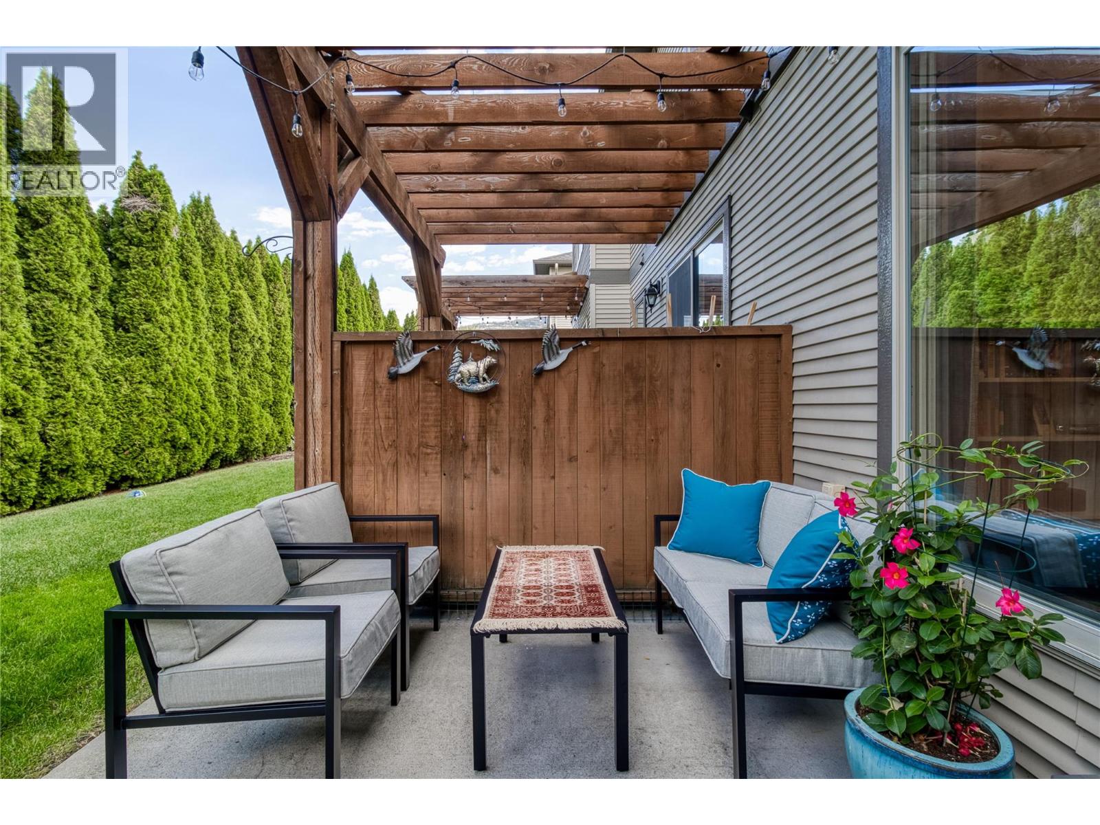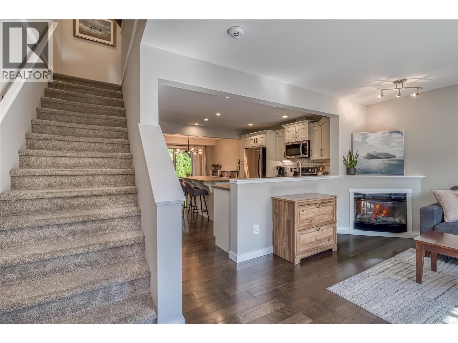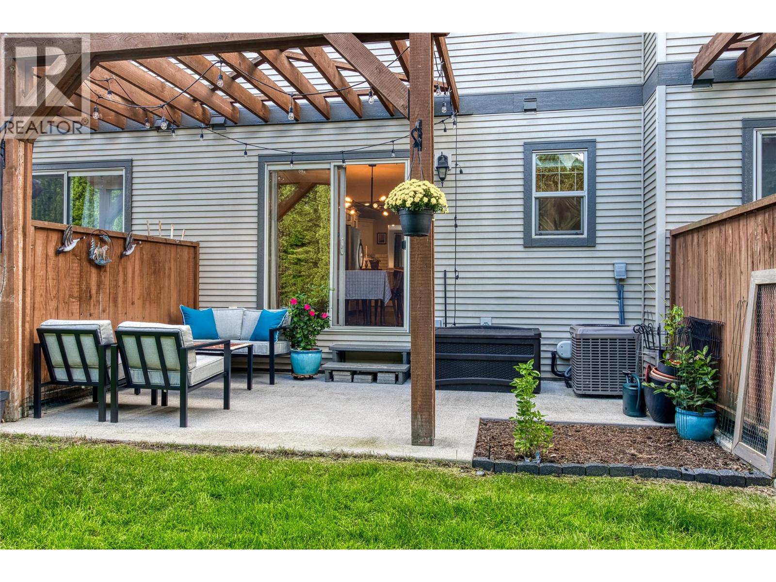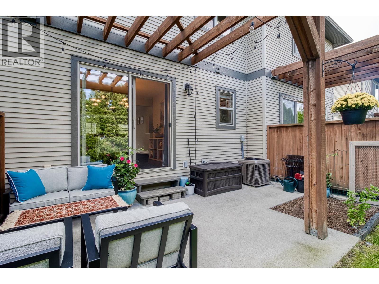 Discover modern comfort and unbeatable convenience in this stylish 3bed, 2.5bath townhome tucked away on the quiet side of the Capstone Lane community. Thoughtfully designed for today’s lifestyle, this home features an open concept main level with a bright white kitchen showcasing SS appliances including a new stove and microwave (2024), subway tile backsplash, and a large island perfect for casual dining and entertaining family and friends. The freshly painted interior feels bright and inviting, while the cozy fireplace adds warmth and ambiance to the living area. Step directly from the kitchen to your private backyard retreat, complete with a patio and pergola. Ideal for outdoor dining or enjoying sunny afternoons. Upstairs, a well-planned layout for families, with a primary suite featuring an ensuite, two additional bedrooms, plus convenient upper level laundry and a full main bathroom. The tandem garage offers parking for two vehicles, with an additional space on the driveway. Furnace replaced in 2023 for added peace of mind. Capstone Lane is a family-friendly, pet-friendly community featuring its own playground. Located just across the street from the YMCA pool and gym, Rutland Arena, and the expansive Rutland Rec Park with sports fields, pickleball and tennis courts, community gardens, and off-leash dog parks. Close to schools, public transit, shopping, and UBCO. This home combines peace, style, and convenience for the ideal Okanagan lifestyle. (id:62999)