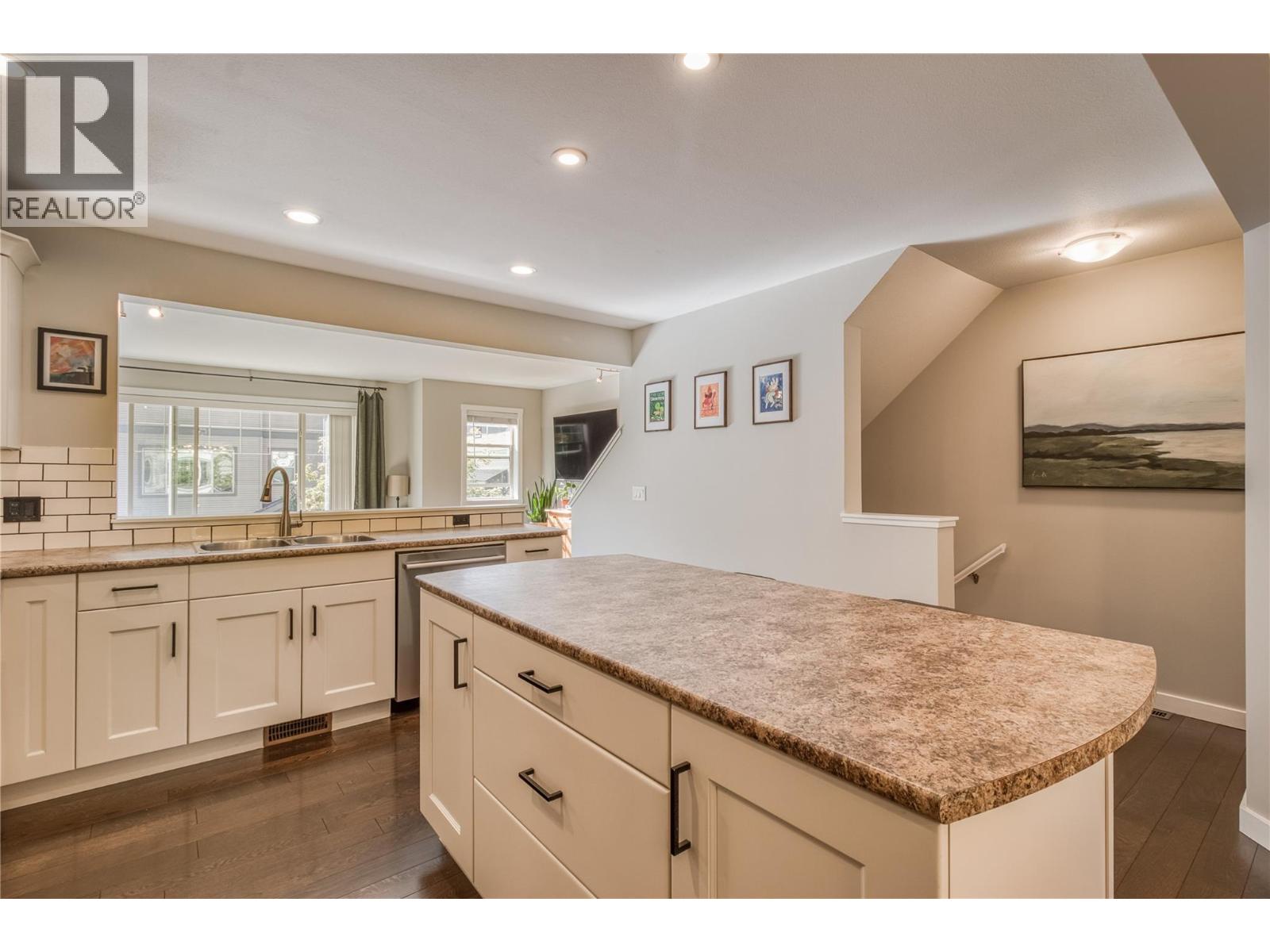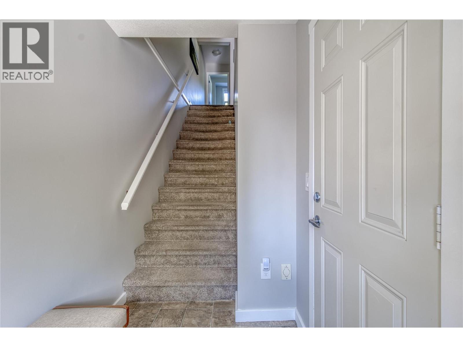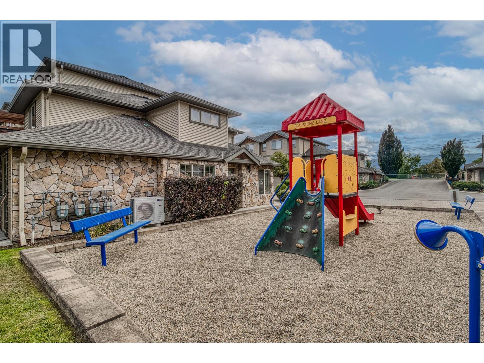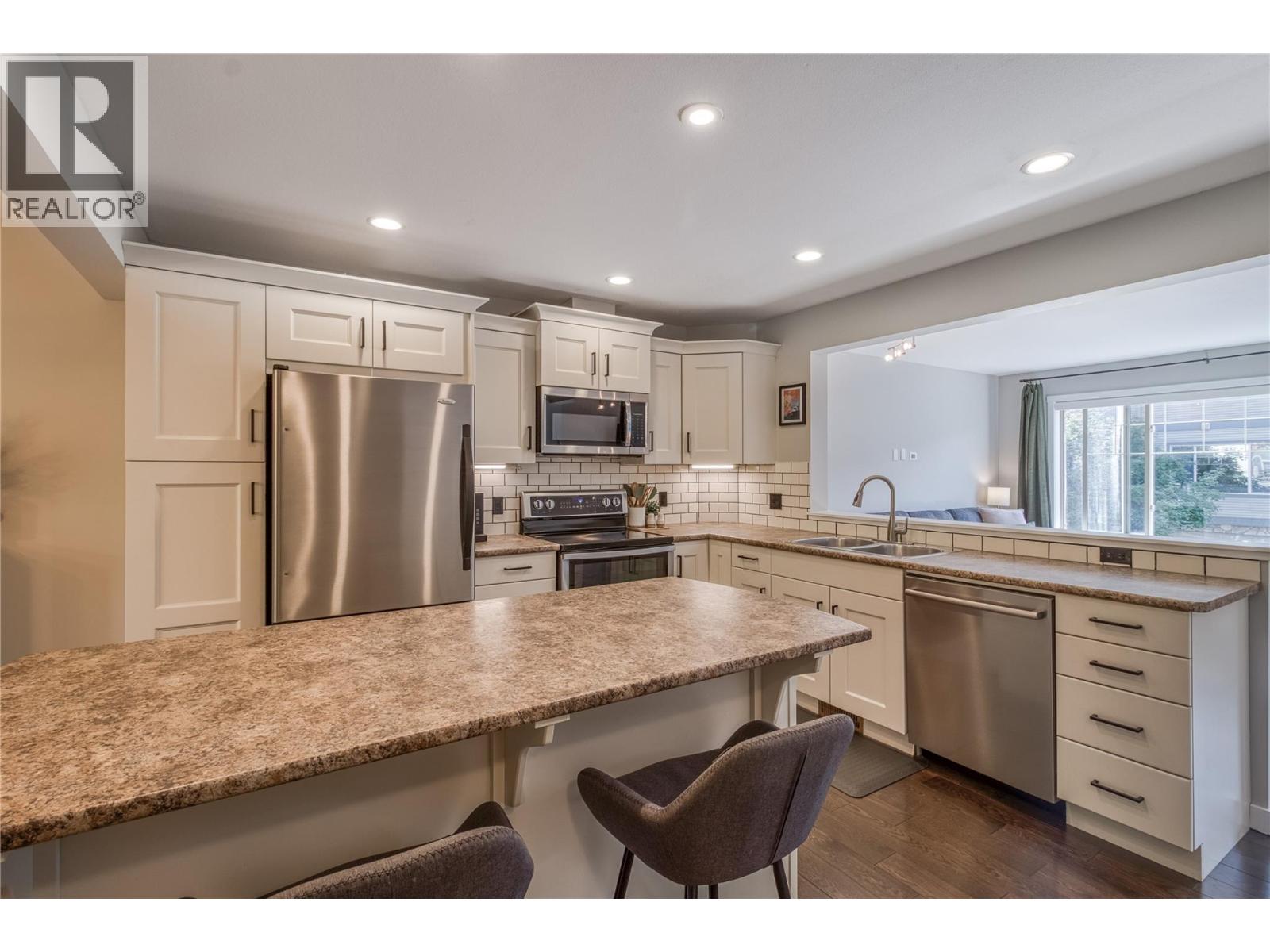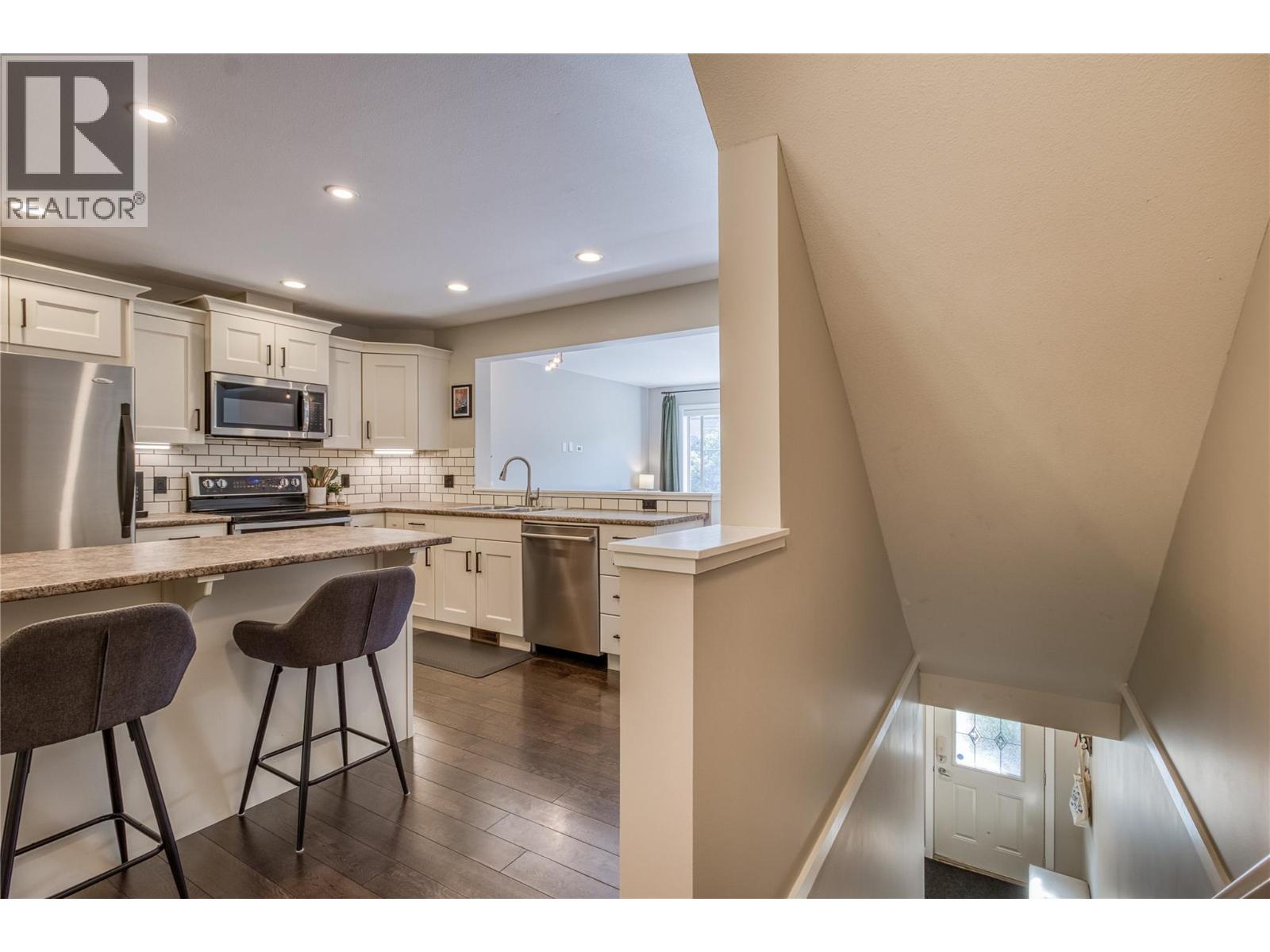 Discover modern comfort and unbeatable convenience in this stylish 3bed, 2.5bath townhome tucked away on the quiet side of the Capstone Lane community. Thoughtfully designed for today’s lifestyle, this home features an open concept main level with a bright white kitchen showcasing SS appliances including a new stove and microwave (2024), subway tile backsplash, and a large island perfect for casual dining and entertaining family and friends. The freshly painted interior feels bright and inviting, while the cozy fireplace adds warmth and ambiance to the living area. Step directly from the kitchen to your private backyard retreat, complete with a patio and pergola. Ideal for outdoor dining or enjoying sunny afternoons. Upstairs, a well-planned layout for families, with a primary suite featuring an ensuite, two additional bedrooms, plus convenient upper level laundry and a full main bathroom. The tandem garage offers parking for two vehicles, with an additional space on the driveway. Furnace replaced in 2023 for added peace of mind. Capstone Lane is a family-friendly, pet-friendly community featuring its own playground. Located just across the street from the YMCA pool and gym, Rutland Arena, and the expansive Rutland Rec Park with sports fields, pickleball and tennis courts, community gardens, and off-leash dog parks. Close to schools, public transit, shopping, and UBCO. This home combines peace, style, and convenience for the ideal Okanagan lifestyle. (id:62999)