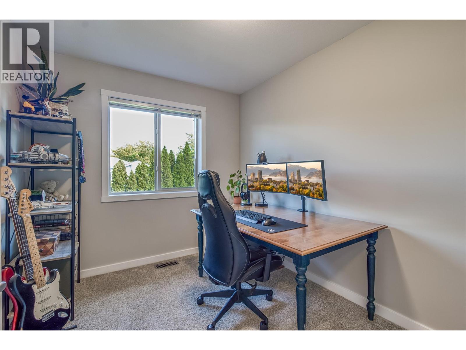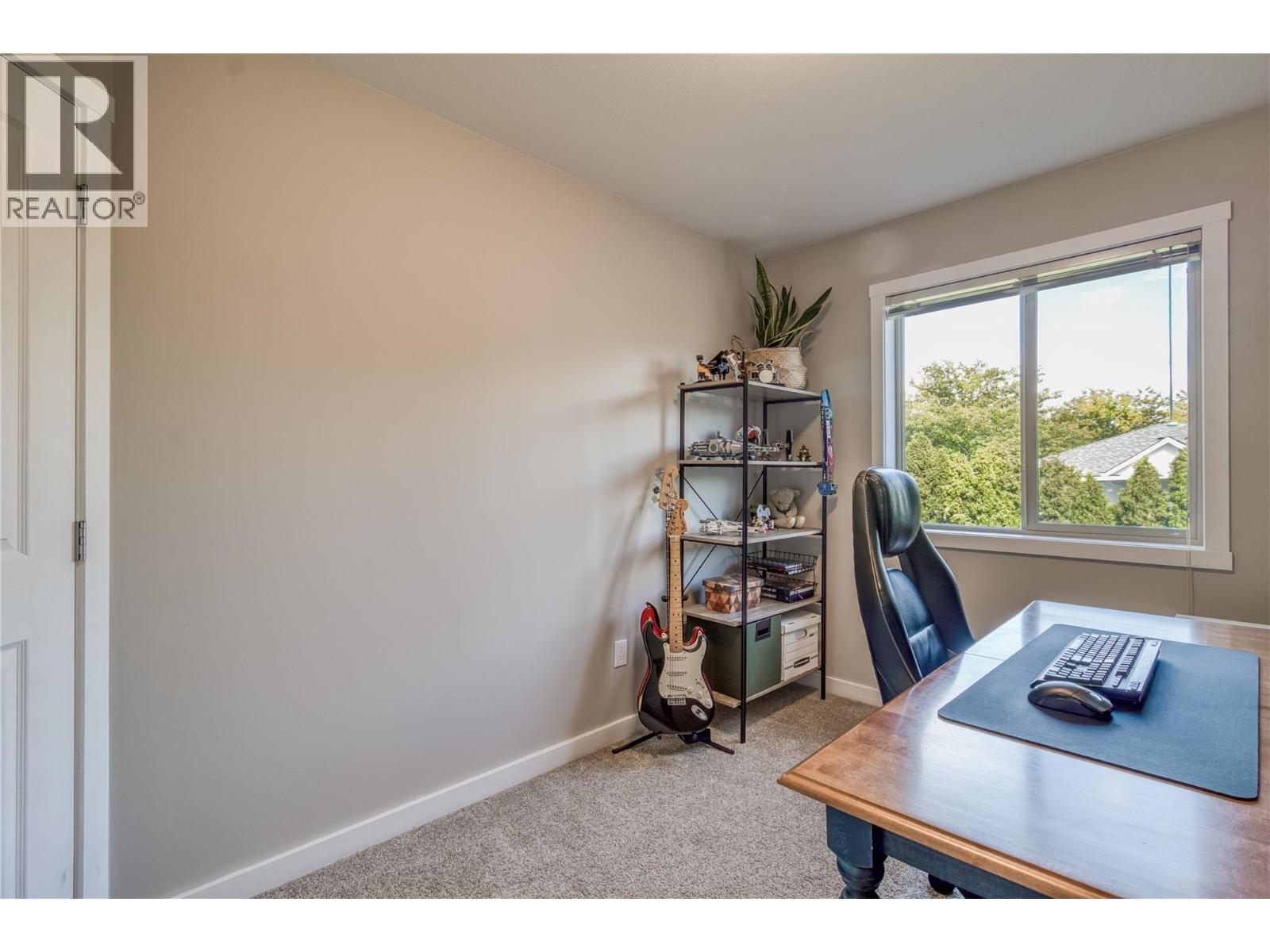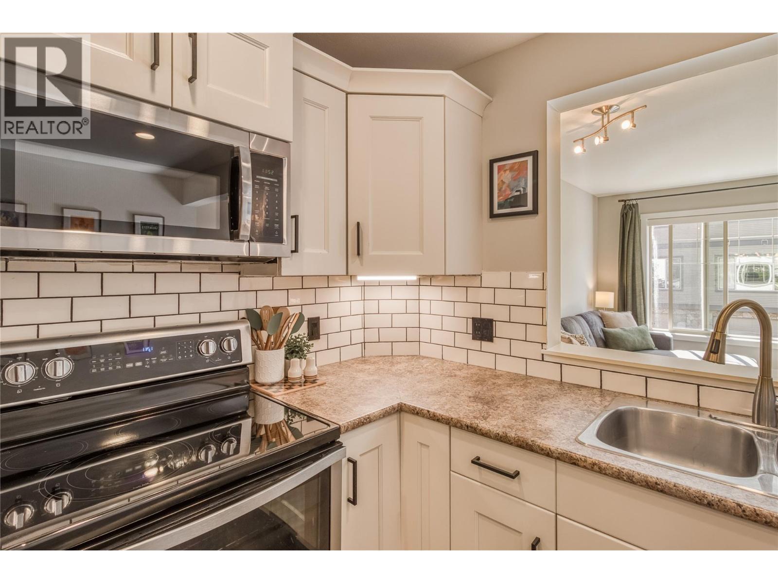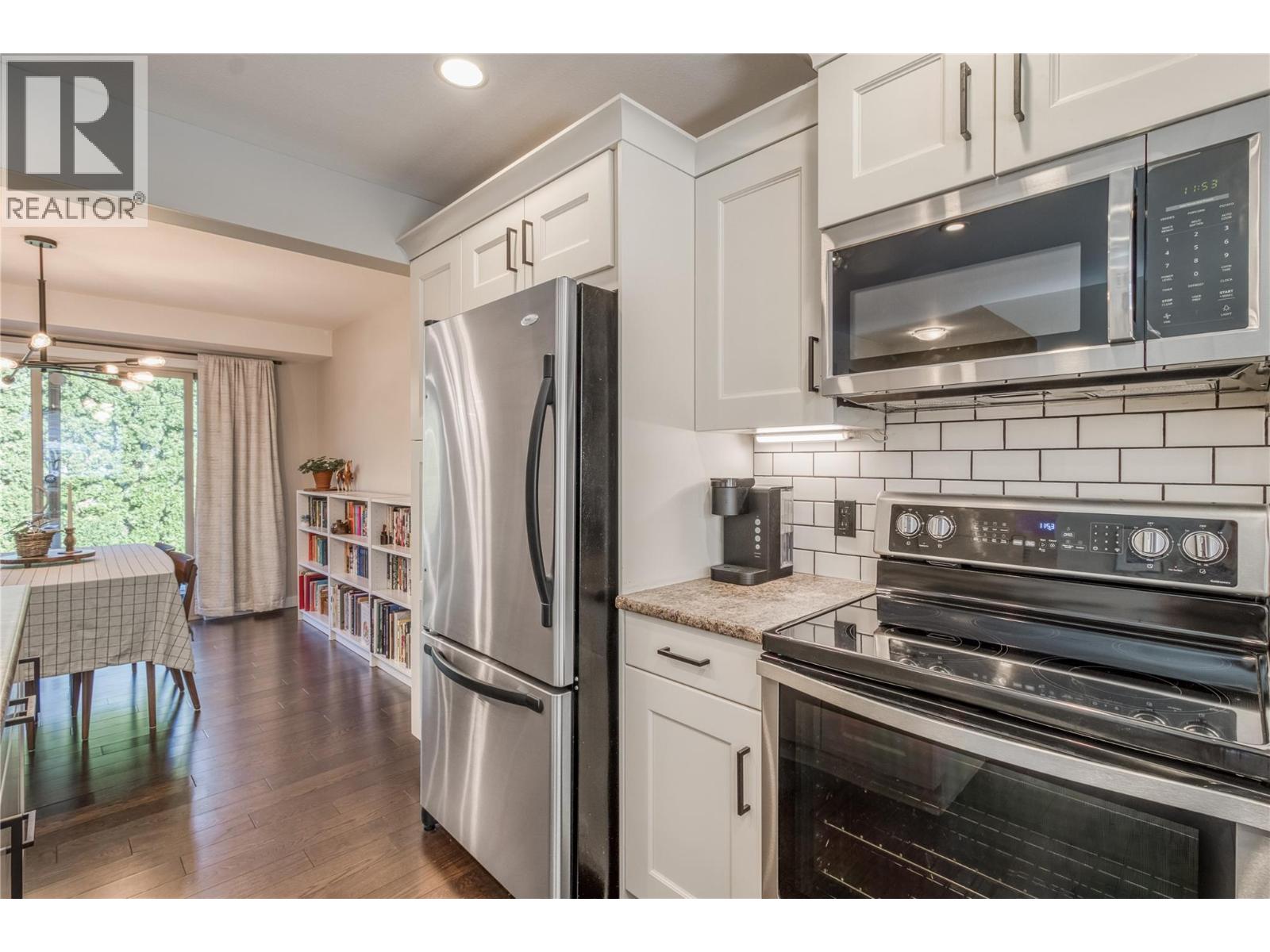 Discover modern comfort and unbeatable convenience in this stylish 3bed, 2.5bath townhome tucked away on the quiet side of the Capstone Lane community. Thoughtfully designed for today’s lifestyle, this home features an open concept main level with a bright white kitchen showcasing SS appliances including a new stove and microwave (2024), subway tile backsplash, and a large island perfect for casual dining and entertaining family and friends. The freshly painted interior feels bright and inviting, while the cozy fireplace adds warmth and ambiance to the living area. Step directly from the kitchen to your private backyard retreat, complete with a patio and pergola. Ideal for outdoor dining or enjoying sunny afternoons. Upstairs, a well-planned layout for families, with a primary suite featuring an ensuite, two additional bedrooms, plus convenient upper level laundry and a full main bathroom. The tandem garage offers parking for two vehicles, with an additional space on the driveway. Furnace replaced in 2023 for added peace of mind. Capstone Lane is a family-friendly, pet-friendly community featuring its own playground. Located just across the street from the YMCA pool and gym, Rutland Arena, and the expansive Rutland Rec Park with sports fields, pickleball and tennis courts, community gardens, and off-leash dog parks. Close to schools, public transit, shopping, and UBCO. This home combines peace, style, and convenience for the ideal Okanagan lifestyle. (id:62999)