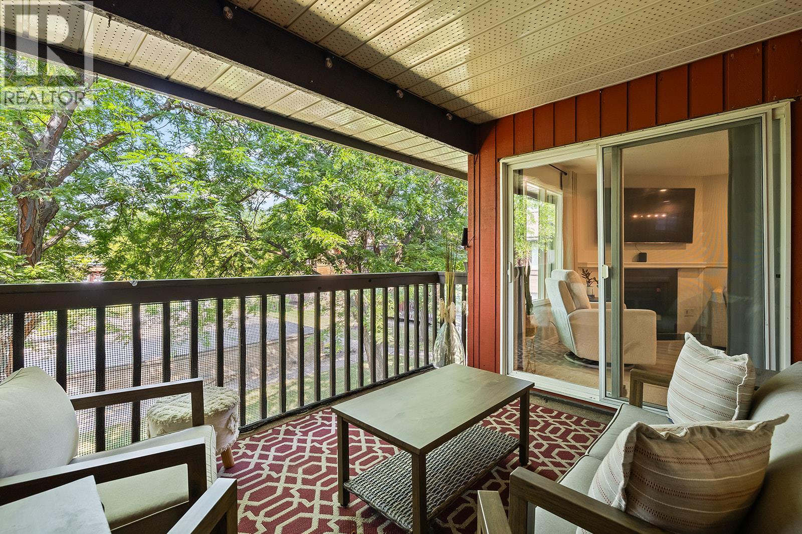 Welcome to Courtside Manor – a beautifully updated top-floor townhome in the heart of Kelowna! Perfectly positioned just steps from the Parkinson Recreation Centre and within walking distance of the lively Landmark District, this 2-bedroom, 2-bathroom stacked townhome combines comfort, convenience, and excellent value. Inside, you’ll immediately notice the warm, welcoming atmosphere and thoughtful upgrades completed in January 2023—including new flooring, paint, lighting, modernized wiring, and hardwired smoke detectors. The spacious primary suite features a 3-piece ensuite with a walk-in shower, while the second bedroom and full bath provide great versatility for guests, family, or a home office. Enjoy year-round comfort with an updated forced-air heating and cooling system, and relax outdoors on your private patio—BBQs welcome! The quiet, well-maintained building is both pet-friendly (up to two pets, 14” at the shoulder) and free of age restrictions. Additional highlights include a large private storage locker (8’ x 5’ x 6'8”), newer energy-efficient windows in the primary bedroom and kitchen, exterior motion sensor lighting, and a location just steps from major transit routes. Move-in ready and centrally located, this home offers a low-maintenance lifestyle in one of Kelowna’s most convenient neighbourhoods—a perfect place to call home! (id:62999)