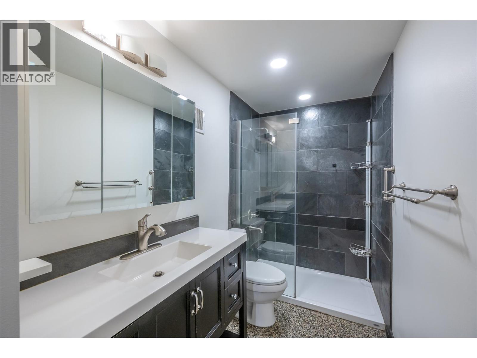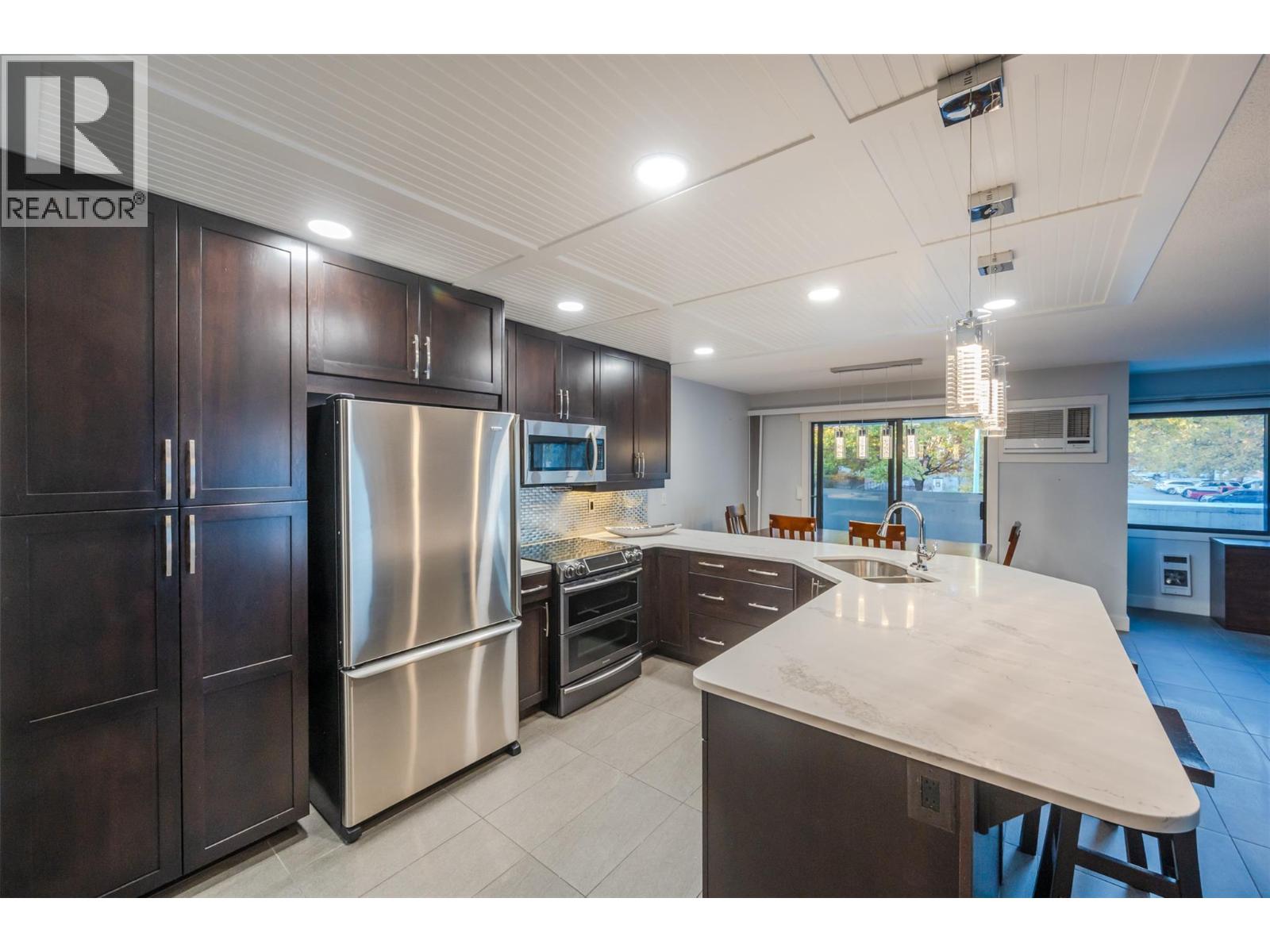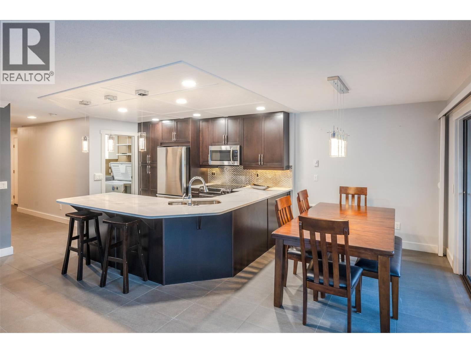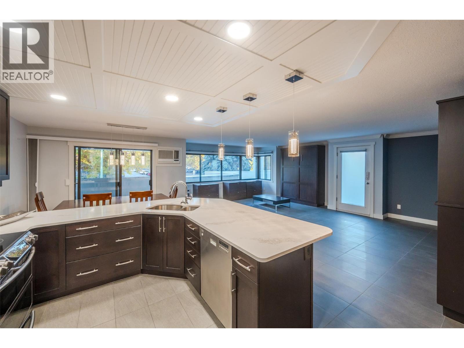 Experience downtown Kelowna living at its finest in this fully renovated 2-bedroom, 2-bath condo featuring an impressive 800 sq ft of private patio space. The open-concept layout offers a bright and stylish living area with an electric fireplace, a covered deck off the dining room, and patio access from both the living room and primary suite. The primary bedroom boasts heated floors and a 3pc ensuite, while the spacious 4pc main bath and laundry room with extra storage add everyday convenience. Enjoy top-notch building amenities including an outdoor pool, party room, exercise room, bike storage, and storage lockers—plus two underground parking spaces. All this just steps from the shops, restaurants, and entertainment of vibrant downtown Kelowna. Contact the listing agent to view! (id:62999)