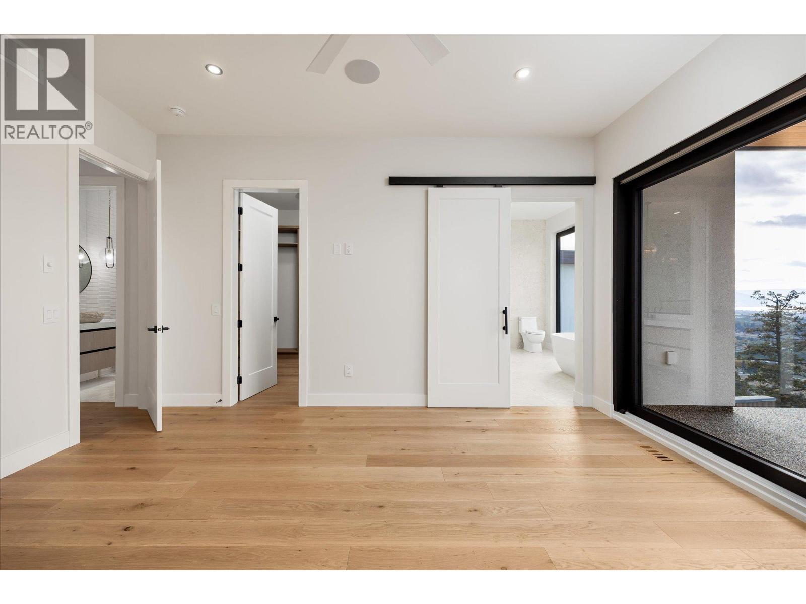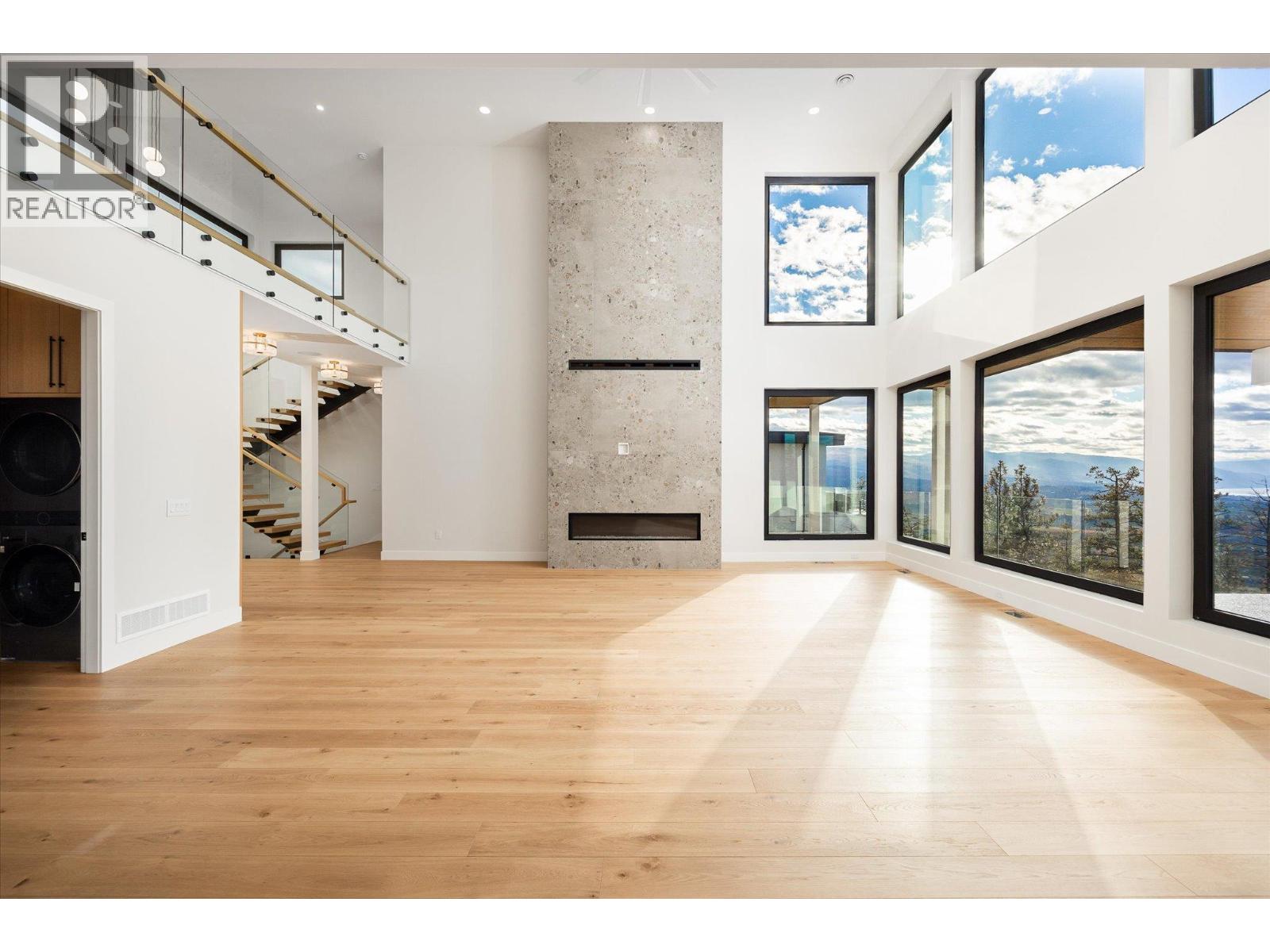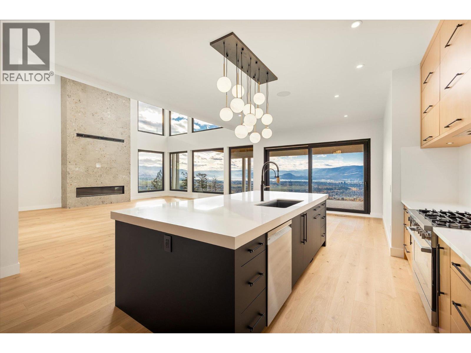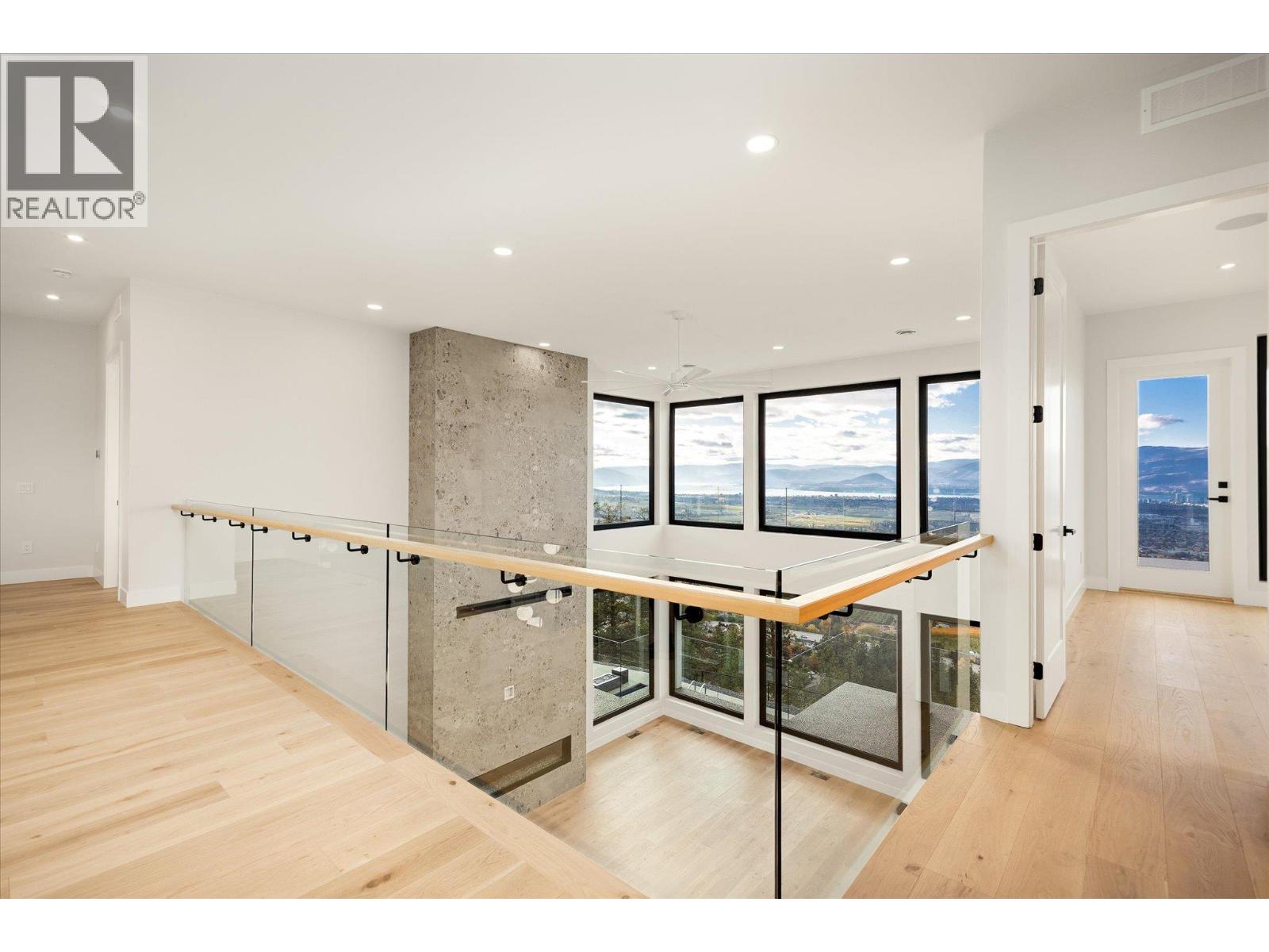 Another quality build by Owl’s Nest View Homes and TSS Pro Homes! Welcome to this stunning modern residence in Kelowna’s prestigious Black Mountain area, where sophisticated design meets breathtaking panoramic views of the lake, city, valley, and surrounding mountains. Perfectly positioned on a quiet cul-de-sac, this home offers refined living space with seamless indoor-outdoor flow and luxury finishes throughout. The main level features expansive open-concept living with panoramic windows, flooding the home with natural light and framing the spectacular views beyond. The chef’s kitchen impresses with culinary-grade appliances, a double-wide fridge, oversized island, and quartz countertops, while a full spice kitchen adds functionality for entertaining. Step out onto the covered or uncovered patios to enjoy the Okanagan lifestyle year-round, complete with an in-ground pool and multiple outdoor living areas. The primary suite is a private retreat, featuring its own balcony, large walk-in closet, a free-standing soaker tub, and an oversized shower. Upstairs, there are two additional full master bedrooms. Every level of the home offers inviting spaces, from the main and lower-level fireplaces to the wet bar with wine fridge, sauna, steam shower and walk-out basement that opens to the pool deck. A legal one-bedroom, one-bathroom suite with a private balcony and separate entrance provides excellent income potential or space for extended family. The three-car garage and six-car driveway ensure ample parking for guests. With its flawless design, exceptional craftsmanship, and unmatched views of Kelowna’s natural beauty, this home defines luxury and functionality with the most phenomenal view in Kelowna. GST applicable. (id:62999)