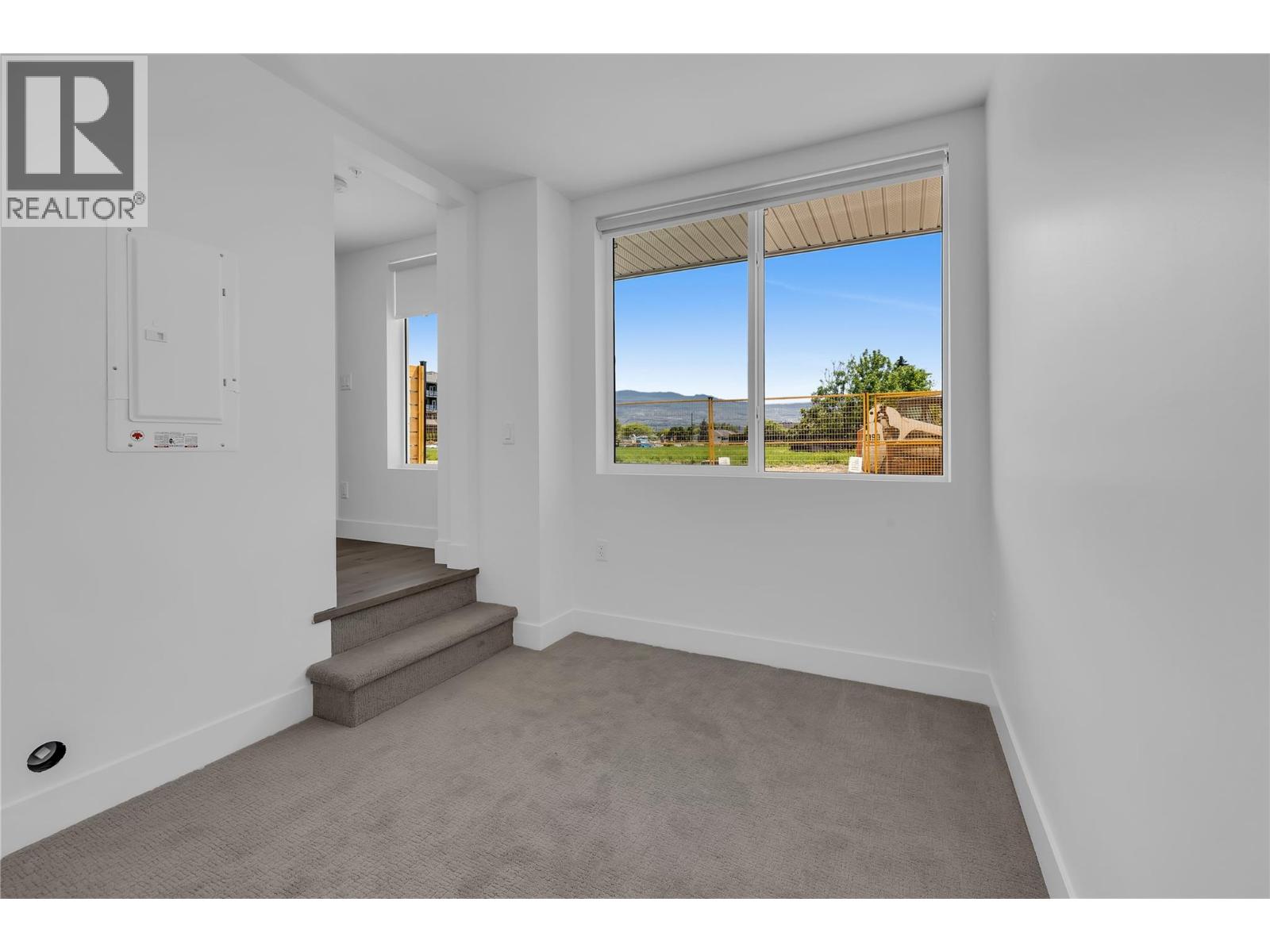DEVELOPER PROMO NO STRATA FEES FOR 3 YEARS!! This brand new home offers 3 bedrooms, 3 bathrooms, and 1445 sq ft of functional space. A park space sits directly in front of the unit, and the lower level includes a den or office suitable for working from home. The open concept main floor connects the living, dining, and kitchen areas. The kitchen is finished with quartz countertops and modern cabinetry, and the adjoining patio includes a natural gas hookup. Large windows bring in plenty of natural light. Durable luxury vinyl flooring runs through the main areas and 9 foot ceilings create a spacious feel. Green Square includes garden plots, a fitness room, rooftop patio, dog wash, and bike storage. Close by are wineries, restaurants, a park, shopping, and Gyro Beach. GST is applicable, with a possible exemption for first time buyers. (id:62999)