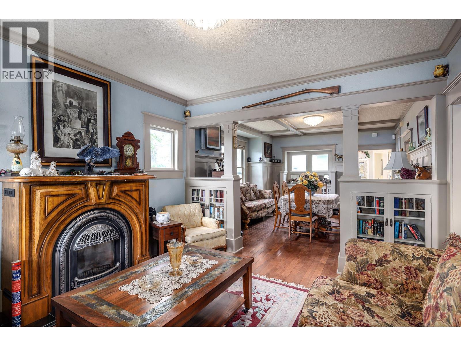 Reduced by $97,000 — Seller Ready to Consider All Serious Offers - Beautifully maintained 1913 Heritage home on a rare 0.3-acre lot in Kelowna, offers both charm and potential development opportunity. This exceptional property blends classic character with thoughtful modern updates. The traditional exterior reflects the home’s early 20th-century heritage, while the interior showcases warm, elegant living spaces. The expansive living and dining area features an ornate fireplace and large windows that fill the room with natural light—creating an inviting setting for everyday living or entertaining. This home provides three well-appointed bedrooms and two updated bathrooms that balance modern convenience with heritage appeal. The beautifully renovated kitchen includes stone countertops, a gas cooktop, upgraded appliances, and carefully preserved vintage details. A separate laundry room adds ease and functionality. Step outside to a stunning, fully landscaped yard highlighted by century-old Walnut and Hazelnut trees, along with many fruit tress and, berry bushes, flowering shrubs, and four raised vegetable beds - an ideal haven for gardeners. Enjoy the private, fully fenced outdoor space with a 6-person hot tub included. Additional features include a large double garage and generous outdoor areas, offering ample room for parking, play, gardening, or future expansion. An extraordinary opportunity to own a piece of Kelowna’s history with significant modern comforts (id:62999)