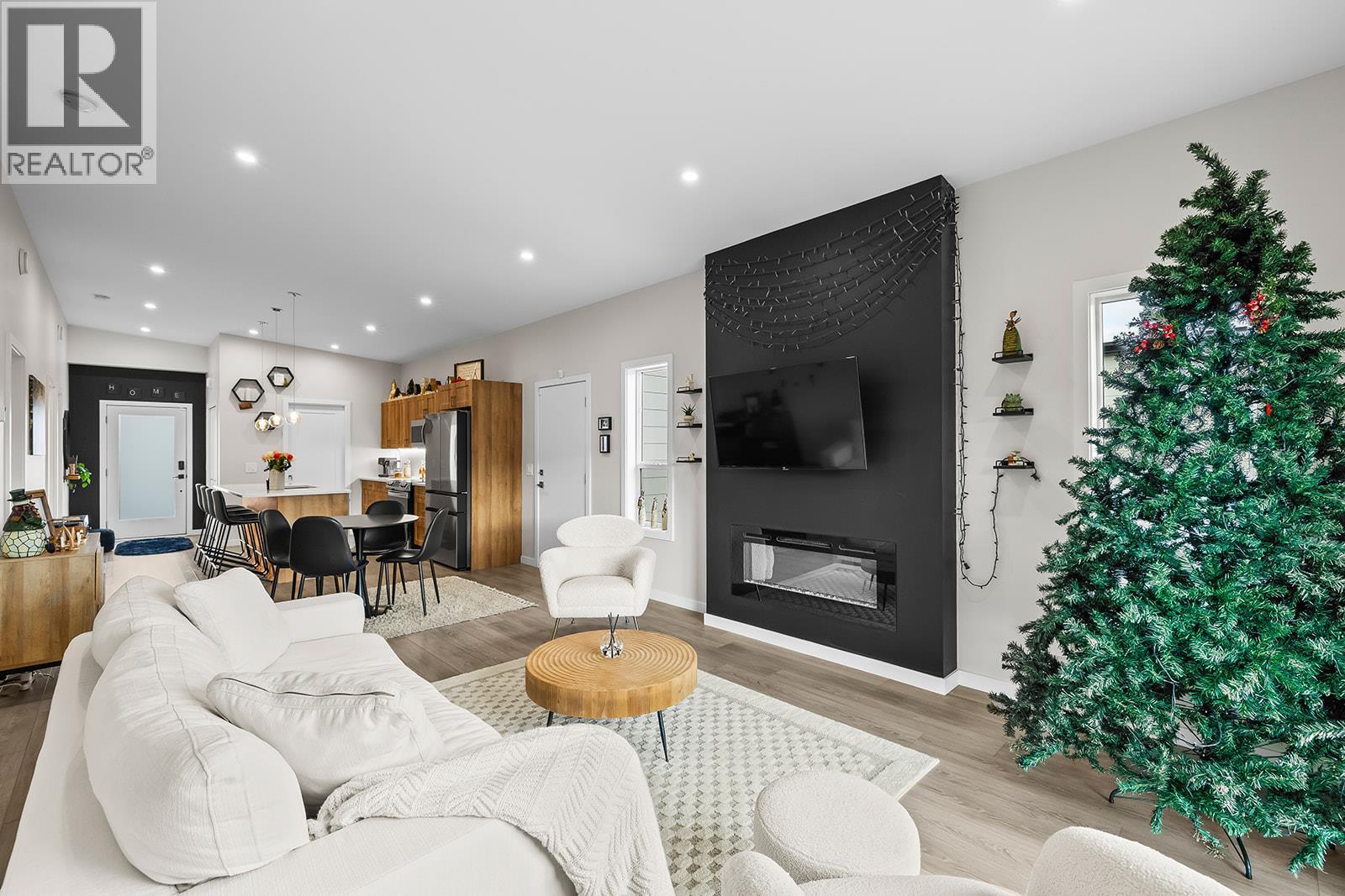 OVER $75,000 IN TOTAL UPGRADES | NO PROPERTY TRANSFER TAX | NO GST | Welcome to one of the most RARE floor plans in the desirable Deer Meadows Estates. This thoughtfully designed 2-bed, 2-bath layout is ideal for those who love the EXTRA spaciousness to unwind & entertain, forgoing the 3rd bedroom option. This results in an open-concept kitchen, dining, and living area that feels both expansive & inviting. The home showcases a full garage addition ($33k), upgraded interior package ($6800) with modern electric fireplace and energy-efficient hot water on demand, and a premium kitchen upgrade ($7350) featuring shaker panel cabinets, quartz countertops with seamless backsplash, undermount Blanco sink, under-cabinet LED lighting, & 9 deep drawers for enhanced storage. As well as a luxury double door fridge ($2500). Enjoy indoor-outdoor living with sliding doors leading to the patio & upgraded brown pressure-treated wood deck ($12,600). Additional outdoor enhancements include a second deck, landscaped backyard with pet-friendly synthetic turf, gazebo & shed, creating a full outdoor retreat ($7500). More Seller-added upgrades include washer and dryer, water softener & blinds. Deer meadows offers a pet friendly, modern, low-maintenance lifestyle with exceptional value & flexibility. Residents enjoy a community pickleball court & the Okanagan Rail Trail. Short-term rentals are permitted, adding excellent investment versatility. This home presents an outstanding opportunity! (id:62999)