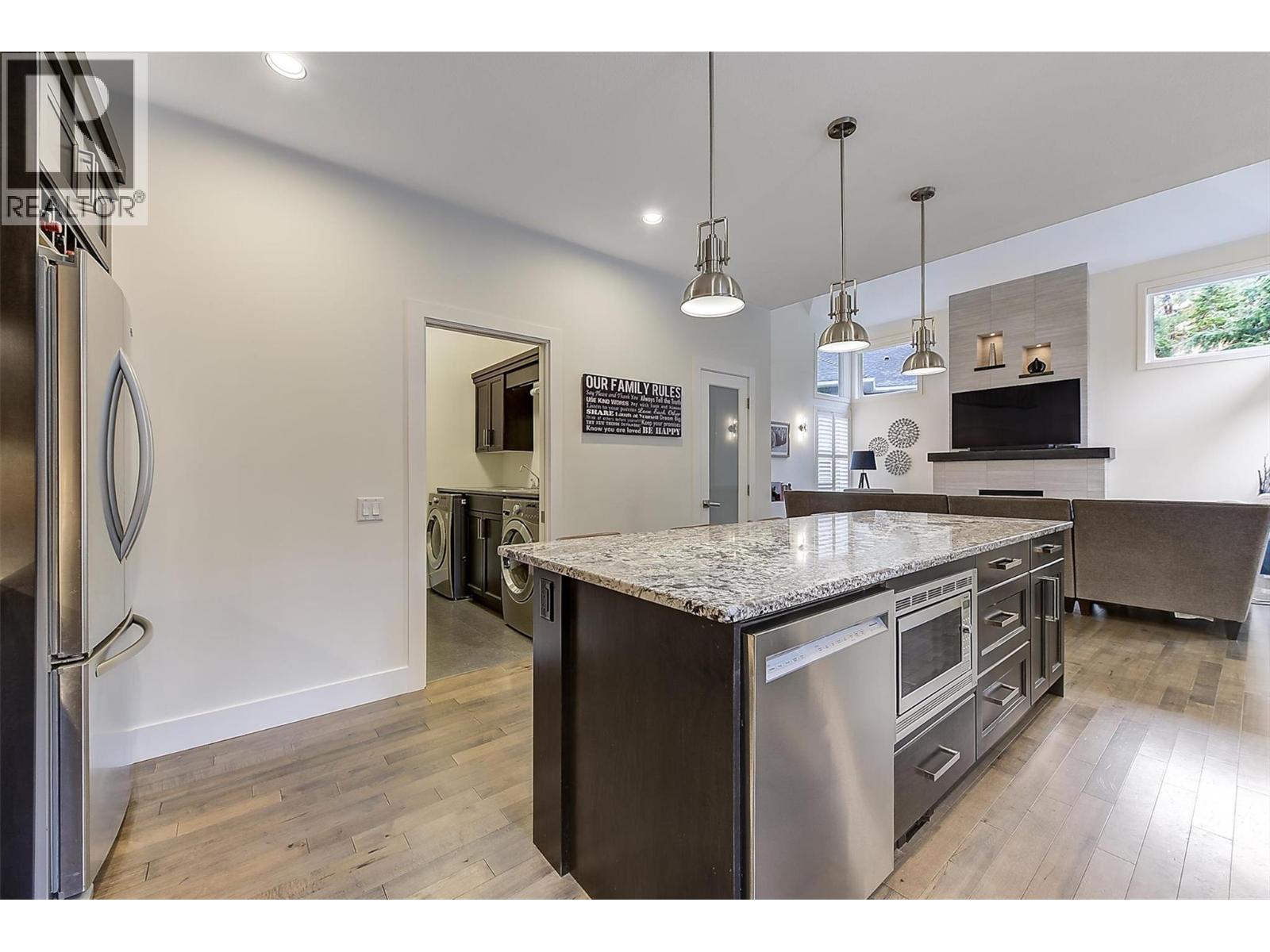 Welcome to this exceptional Rykon-built executive family home, set on one of the largest lots in all of Wilden. Offering over 3,600 sq. ft. of luxury living, this meticulously maintained residence has had only one owner and delivers the perfect blend of elegance, comfort, and functionality. Step inside to discover bright, open-concept living with soaring ceilings, rich hardwood flooring, and expansive windows overlooking the private, resort-style yard. The gourmet kitchen features a 36"" gas range, generous island seating, and seamless flow into the dining and living spaces—ideal for hosting and everyday family life. A dedicated main-floor office is perfect for remote work or study. Upstairs you’ll find three spacious bedrooms, including a serene primary suite with spa-inspired ensuite + w/i closet. The lower level offers an additional bedroom, large rec room, and plenty of space for media, fitness, or guests. The outdoor oasis is truly unmatched. Set on a beautifully landscaped lot with no neighbour behind, this property showcases the largest pool in Wilden—a spectacular 20' x 40' design with a brand-new liner—plus a relaxing hot tub for year-round enjoyment. Expansive patio areas provide endless room for lounging, entertaining, and soaking up the tranquillity. A triple garage (one tandem bay) offers abundant parking and storage for vehicles, toys, and hobbies. Located in one of Kelowna’s most sought-after communities, you’re surrounded by parks, playgrounds, and trails. (id:62999)