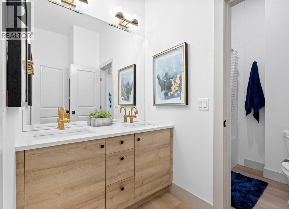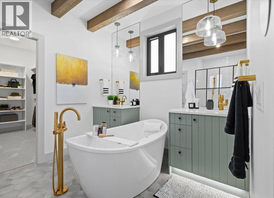 Discover the Bennett showhome by Carrington Homes in Trailhead at The Ponds is now available for purchase! This vibrant home has something for everyone. The main floor shines with an open layout, stylish kitchen, dry bar and a covered deck perfect for a quiet evening or hosting family and friends. The primary bedroom sits just off the great room and features a five-piece retreat-style ensuite, walk-in closet and a stunning valley view framed by mountains. The bright walkout basement adapts to your mood—enjoy movie nights in the cozy family room or have fun in the golf-simulator room tucked under the suspended slab, complete with its own wet bar. Summer days call for the 12x28 saltwater pool with deck jets and auto cover, or relaxing in the shade of the covered patio. Thoughtfully designed for every family member—including your pup—with a dog shower in the mudroom, a built-in pet station in the island and a perfect nook for beds and toys. *****GST applicable***** (id:62999)