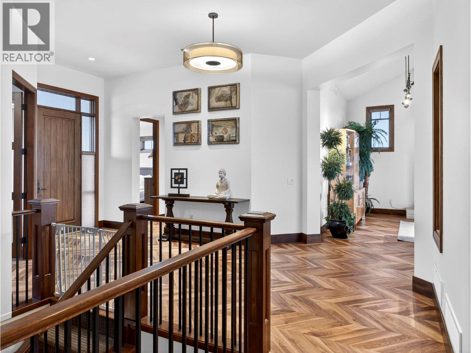 This stunning 4 Bedroom + Den residence blends luxury with timeless modern design and unobstructed panoramic lake views. Gorgeous herringbone hardwood floors, soaring ceilings, and a cozy gas fireplace create an inviting yet elevated atmosphere in the great room, enhanced by expansive windows that frame the surrounding scenery. The open-concept layout flows into a spacious dining area and gourmet kitchen featuring a massive island, high-end Jenn-Air stainless steel appliances, and a fully equipped butler’s pantry. The oversized sundeck - with glass railings - offers breathtaking lake views and effortless indoor/outdoor living. The main level hosts two bedrooms, each with its own ensuite, including the primary retreat with a deluxe 5 piece spa-like ensuite, walk-in closet, and direct sundeck access. A stylish powder room and full laundry room complete the main floor. The fully finished basement adds two additional bedrooms and bathrooms, a large rec room with a wet bar, and 2 large flex spaces (perfect for a home office, crafts, play room, hobby room, gym) and in-floor heat! A Sonos sound system and remote blinds add a nice touch to the finishings. The rec room opens to a covered patio leading to the expansive backyard with an in-ground pool (with waterfall features) and hot tub. A recent landscape refresh made this incredible space even more beautiful. An oversized triple garage provides ample room for vehicles, storage, and toys. This is Okanagan luxury living at its finest! (id:62999)