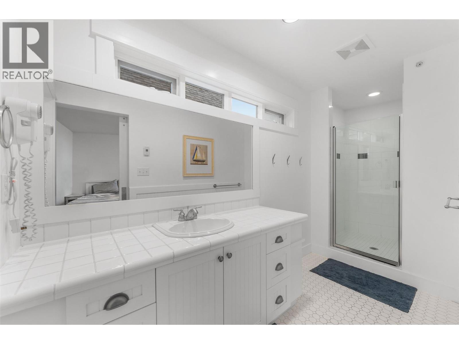 Experience true waterfront living at Mission Shores in this light-filled 3-bedroom, 4-bath townhome set along one of Kelowna’s most sought-after stretches of Lake Okanagan. Blending a refined beach-house feel with front-row views, this spacious residence offers bright, open-concept living and seamless indoor–outdoor flow. The main level features wide-plank hardwood floors, high ceilings, and a kitchen with a large quartz peninsula island, shaker cabinetry, and premium appliances. The dining and living areas open through French doors to a generous lakeview deck with gas BBQ hookup perfect for sunset gatherings. A private main-floor bedroom with ensuite is ideal for guests. Upstairs, the lakeview primary retreat impresses with vaulted ceilings, walk-in closet, 5-piece ensuite, and access to a private deck overlooking the shoreline. A second upper-level bedroom offers vaulted ceilings, walk-in closet, and its own 3-piece ensuite. A bright landing with a large skylight fills the home with natural light. Additional features include two parking spots, two private entrances, one directly from the garage, ample storage, gated courtyard entry, and in-unit laundry. A dedicated 8,000 lb. boat slip (#26) completes this exceptional offering. Residents of Mission Shores enjoy a lakeside pool and hot tub, fitness centre, meeting room, and beautifully landscaped paths just steps to the beach, restaurants, and all Lower Mission amenities. (id:62999)