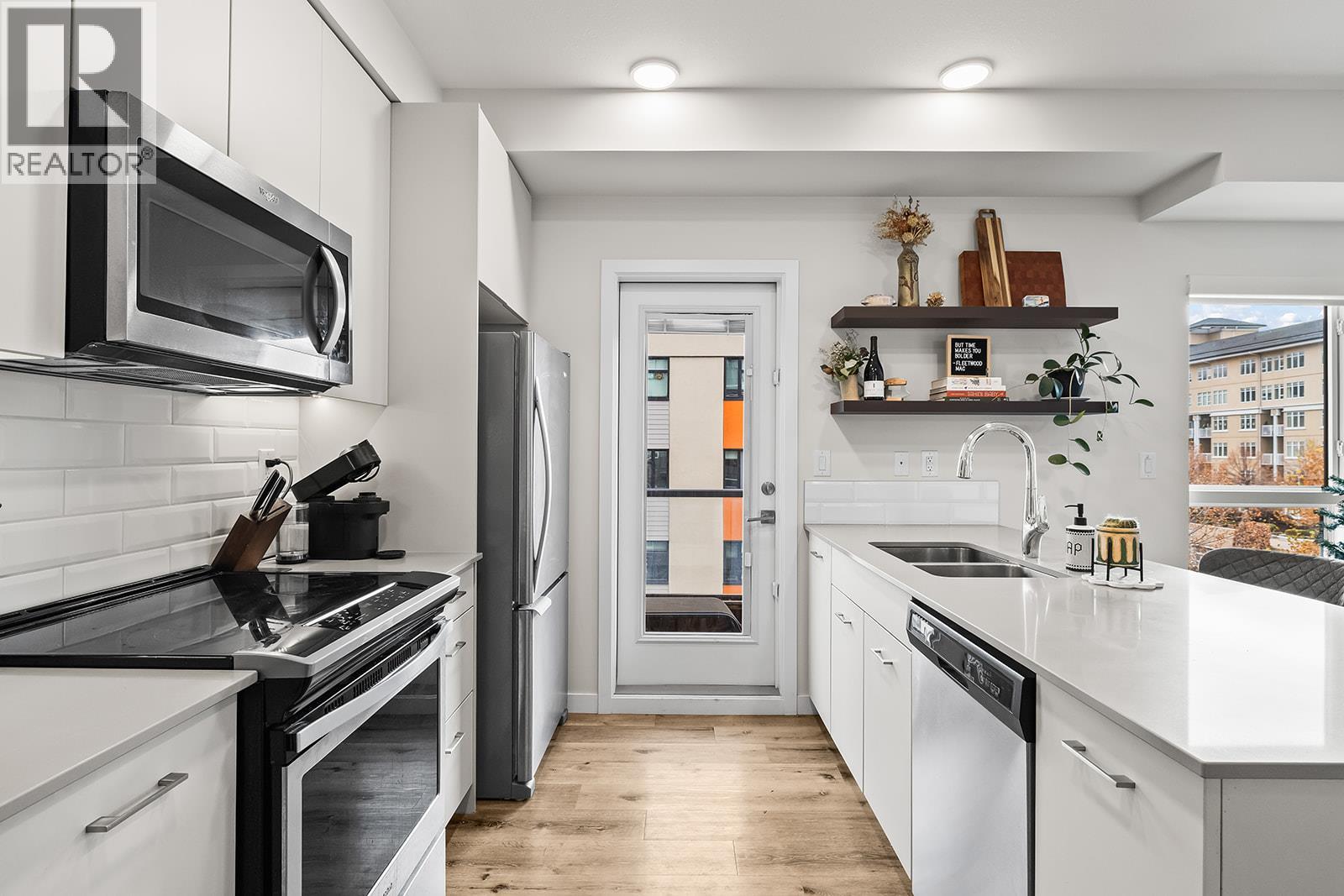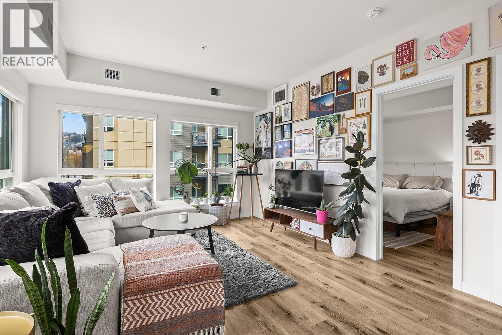 A bright and modern corner unit in the heart of Glenmore, this thoughtfully designed condo offers stylish living in one of Kelowna’s most convenient neighborhoods. This thoughtfully designed home features a sought-after split floorplan, giving each bedroom its own walk through closet and direct access to a full bathroom. Large windows on multiple sides fill the space with natural light, complementing the open concept layout and contemporary kitchen with quartz countertops, stainless steel appliances, and soft-close cabinetry. Enjoy a covered balcony for outdoor relaxation, plus building amenities such as a guest suite, rooftop terrace with BBQ area, bike storage, and a dog wash station. Just minutes to downtown, UBCO, shopping, parks, transit, and all Glenmore conveniences, this is modern living in an unbeatable location. (id:62999)