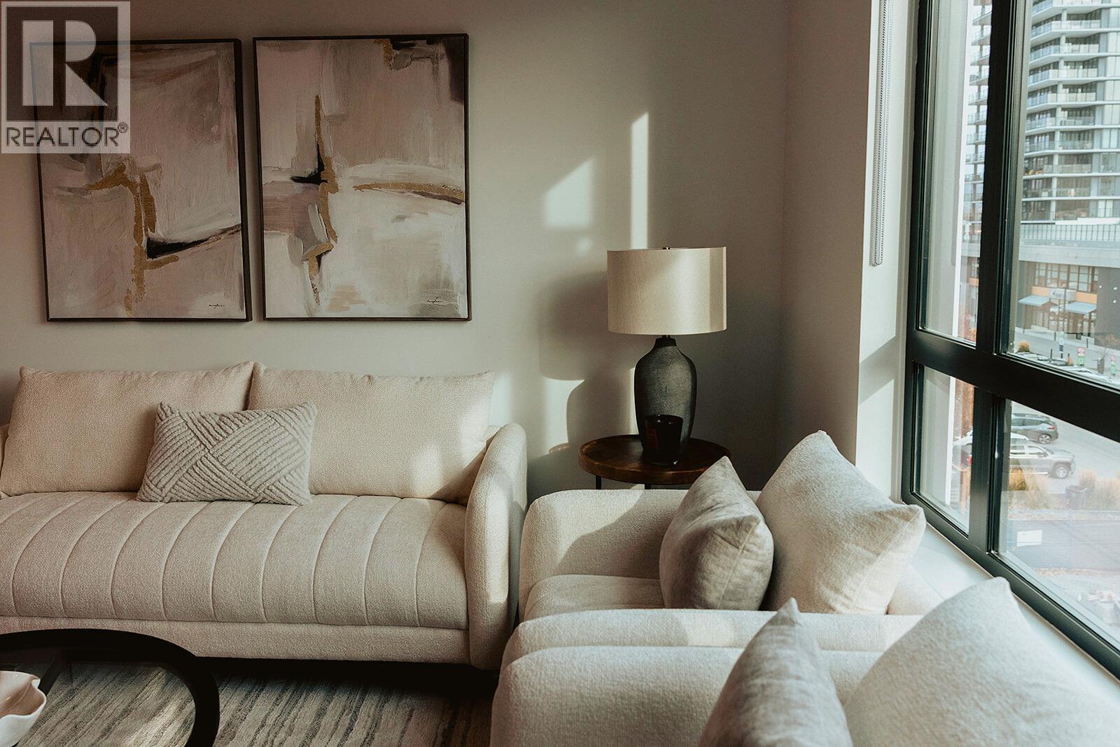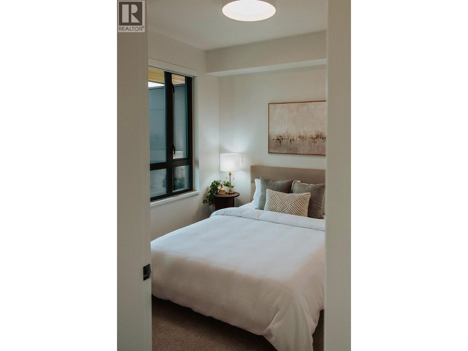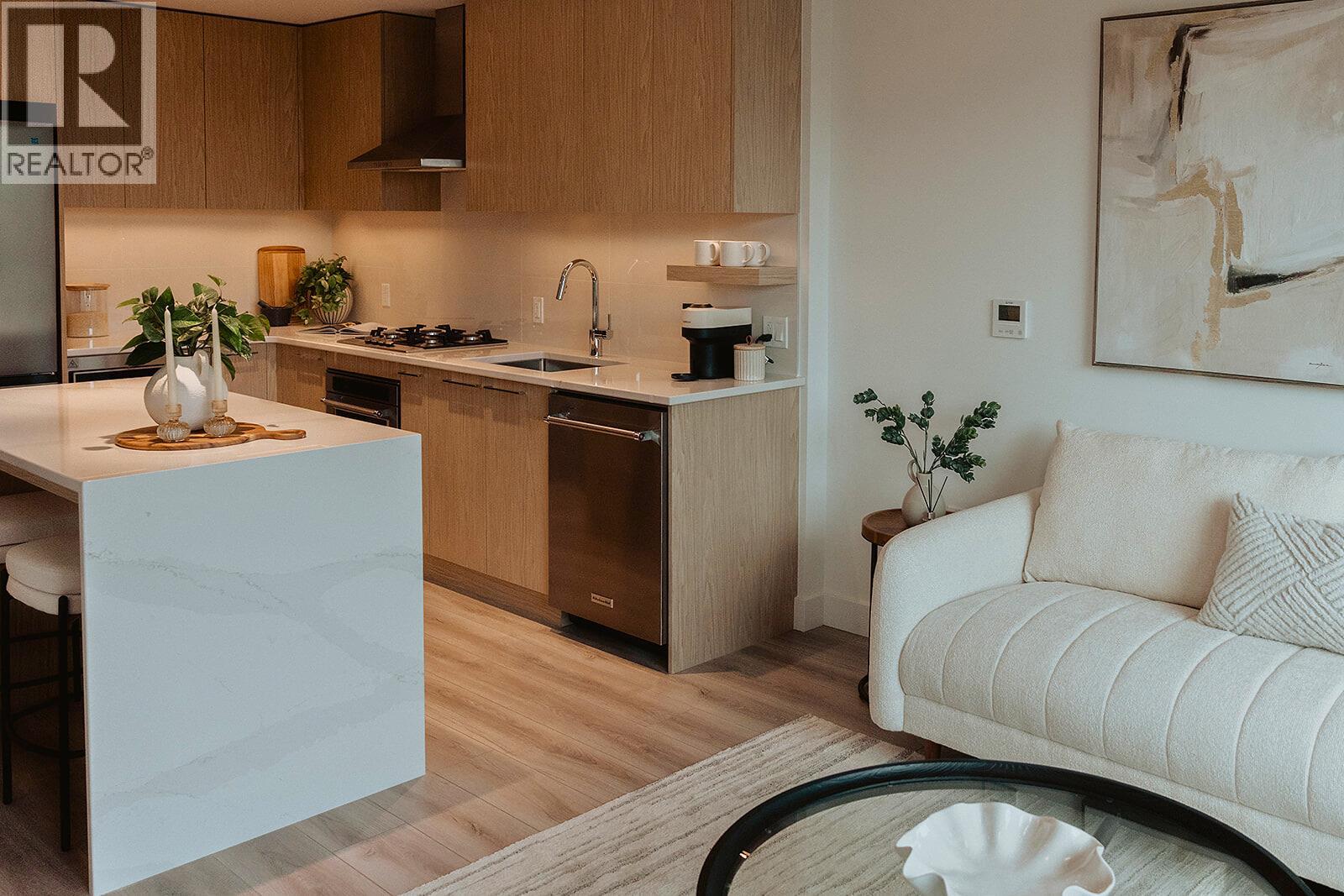 Welcome to ALMA, proudly developed by Mission Group. This bright east-facing 1-bed, 1-bath home offers over 540 sqft of interior space and 100 sqft of exterior space, this home blends thoughtful design with elevated finishes in the heart of the Lower Mission. The modern kitchen showcases flat-panel wood-grain cabinetry, a quartz waterfall dining island and stainless-steel appliances. The open-concept layout is ideal for both daily living and entertaining, highlighted by large windows that invite natural light, durable laminate flooring throughout the main living areas, and woven broadloom carpeting in the bedroom. The primary bedroom features a walk-thru closet, while the spa-inspired ensuite offers large-format tile, a rainfall shower, custom-tiled niche, and soft ambient lighting to create a relaxing, retreat-like atmosphere. Additional features include modern roller shades on every window and individually controlled heating and cooling for comfort in all seasons. Residents can enjoy amenities incl. an 8,000 sqft lakeview terrace w/firepits, BBQs, and community gardens as well as a fully equipped fitness center, dog wash, & bike maintenance station. With a walk score of 93, you’re steps from transit, KGH, shops & restaurants of vibrant Pandosy Village, and beautiful Okanagan Lake. Sqft and room sizes are approximate and may vary. Photos may be of a similar home and layout. This home is newly constructed and move-in ready. Priced well below assessed value of $577,000! (id:62999)
