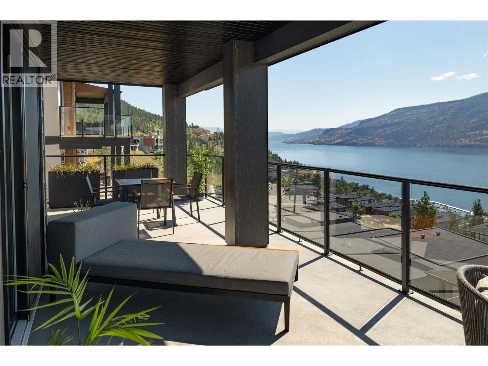 This stunning 6-bedroom, 4-bathroom modern contemporary home in McKinley Beach offers 3,642 SF of thoughtfully designed living space, perfectly positioned to take in the panoramic lake views from both levels. Ideally situated on a dead end street, the home is walking distance to hiking trails, the lake, amenities, & the upcoming Azhadi winery.The main floor features a bright, open-concept layout with expansive windows to take in the incredible views, & a stylish tile fireplace in the great room. The show-stopping kitchen includes a massive quartz island, an induction range, oversized fridge & freezer, and walk-in pantry. 2 large decks finished in Flexstone extend your living space outdoors, with the upper deck featuring power shades to keep you cool on warm summer days.The spacious primary suite offers breathtaking lake views and a spa-like en-suite complete w/ a soaker tub, walk-in glass shower, & heated floors.A 2nd bedroom & full bathroom complete the main level. Downstairs features a rec room with a cozy fireplace, a wet bar & wine fridge, 2 more bedrooms & a full bathroom. The home includes a self-contained 2-bedroom legal suite with a lakeview & its own entrance & laundry.Additional features include an oversized double garage, a spacious driveway, and an electric vehicle plug. McKinley Beach amenities include a private marina with boat, kayak, & paddleboard storage, a gym, indoor pool, hot tub, yoga studio, tennis & pickleball courts, playground & community gardens. (id:62999)